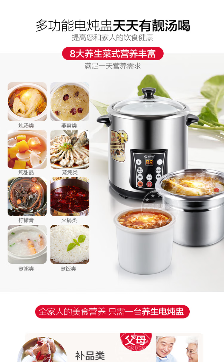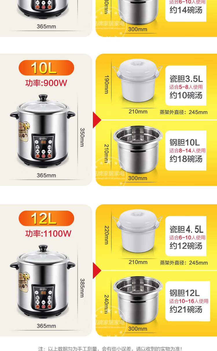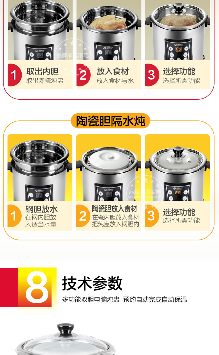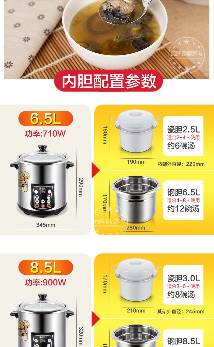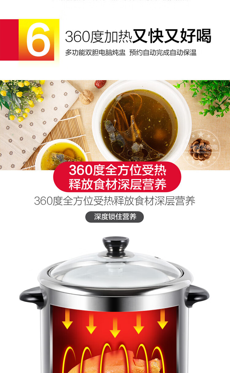 Gemus stainless steel electric stew pot, fully automatic household soup pot, water-proof stew pot, large capacity 10 liters, commercial multi-functional porridge pot, lemon paste stew, scheduled timer, heat preservation and health-preserving soup pot, 6.5L double bladder (2.5L stew pot), household use for 3-5 people, 6.5L