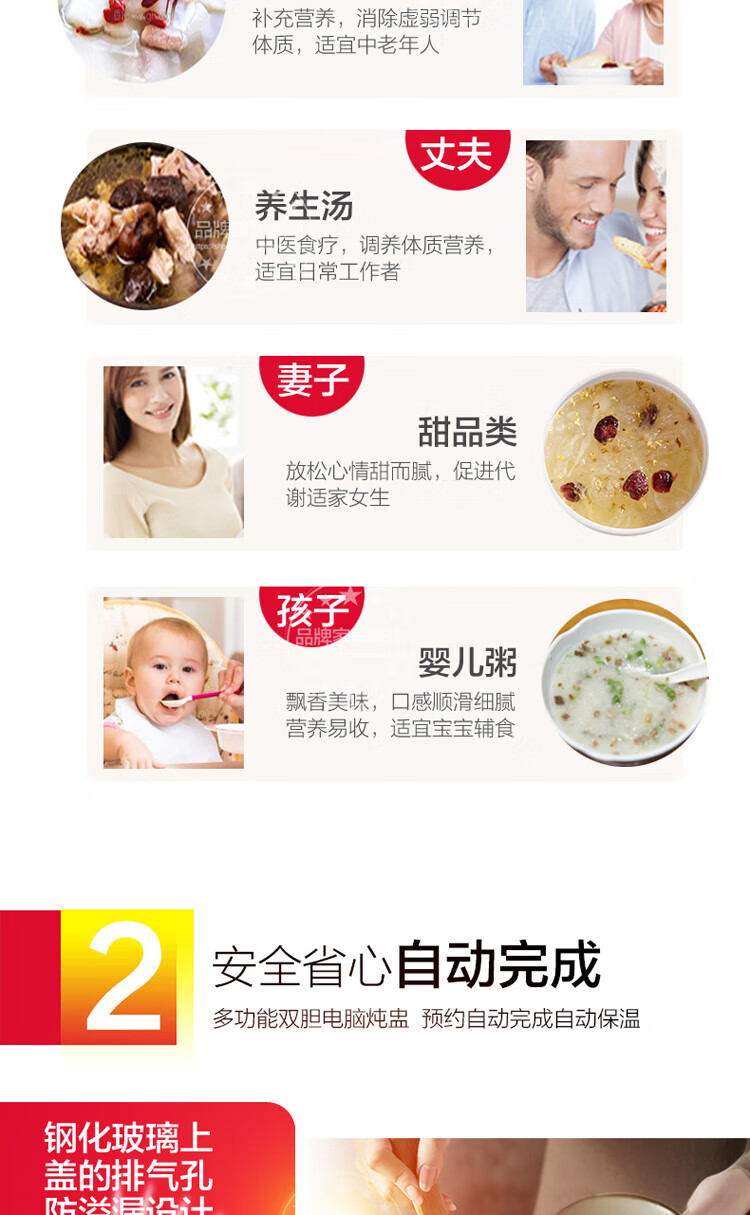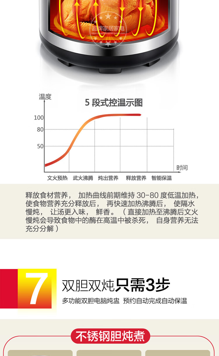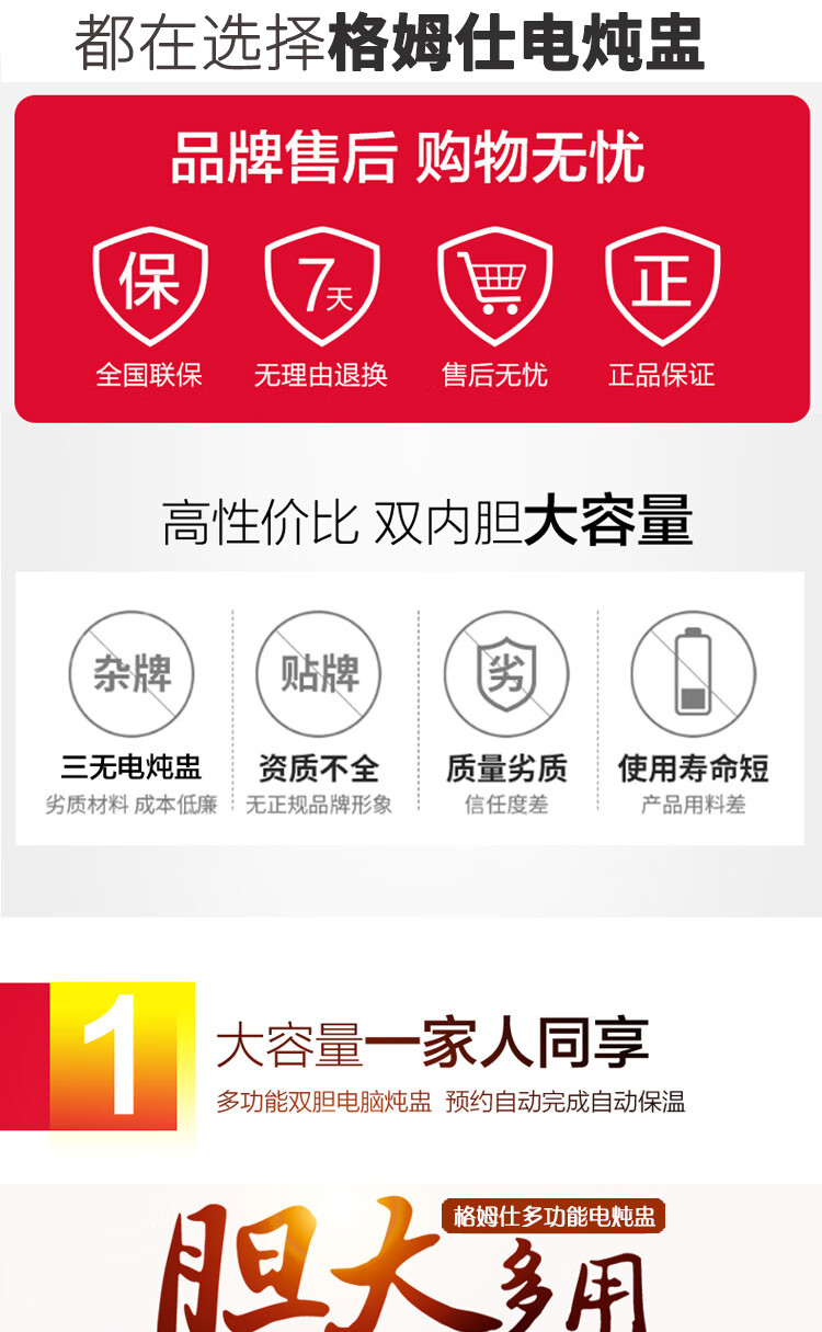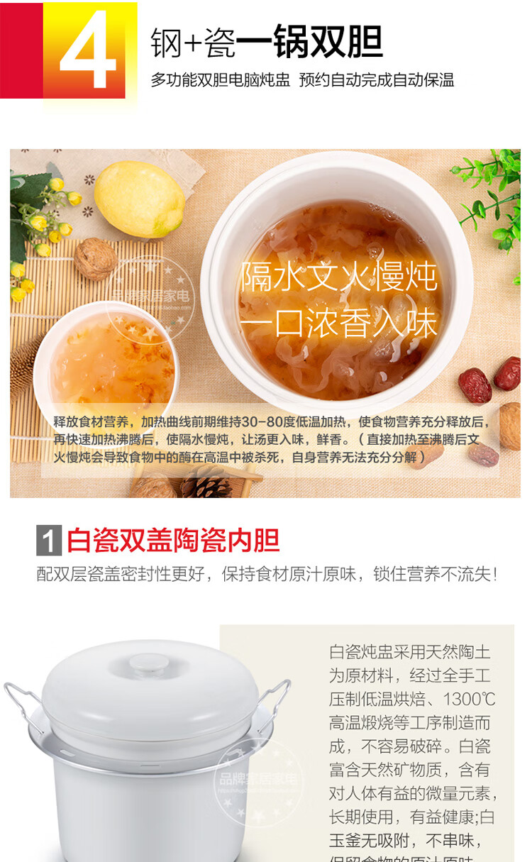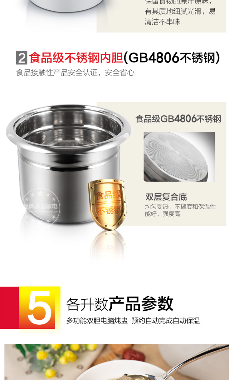 Gemus stainless steel electric stew pot, fully automatic household soup pot, water-proof stew pot, large capacity 10 liters, commercial multi-functional porridge pot, lemon paste stew, scheduled timer, heat preservation and health-preserving soup pot, 6.5L double bladder (2.5L stew pot), household use for 3-5 people, 6.5L