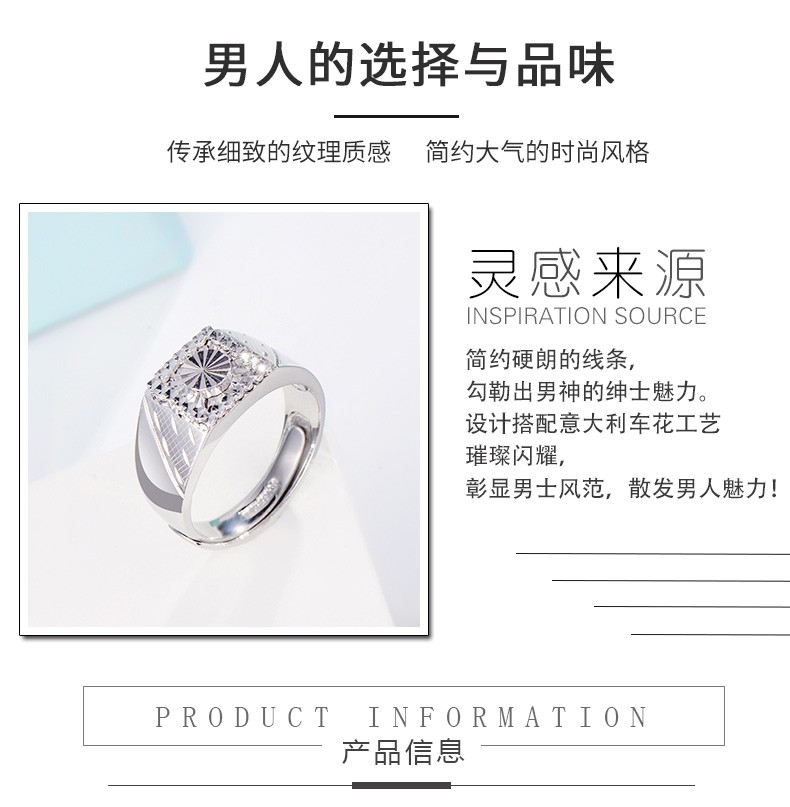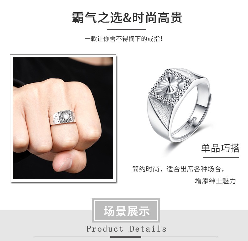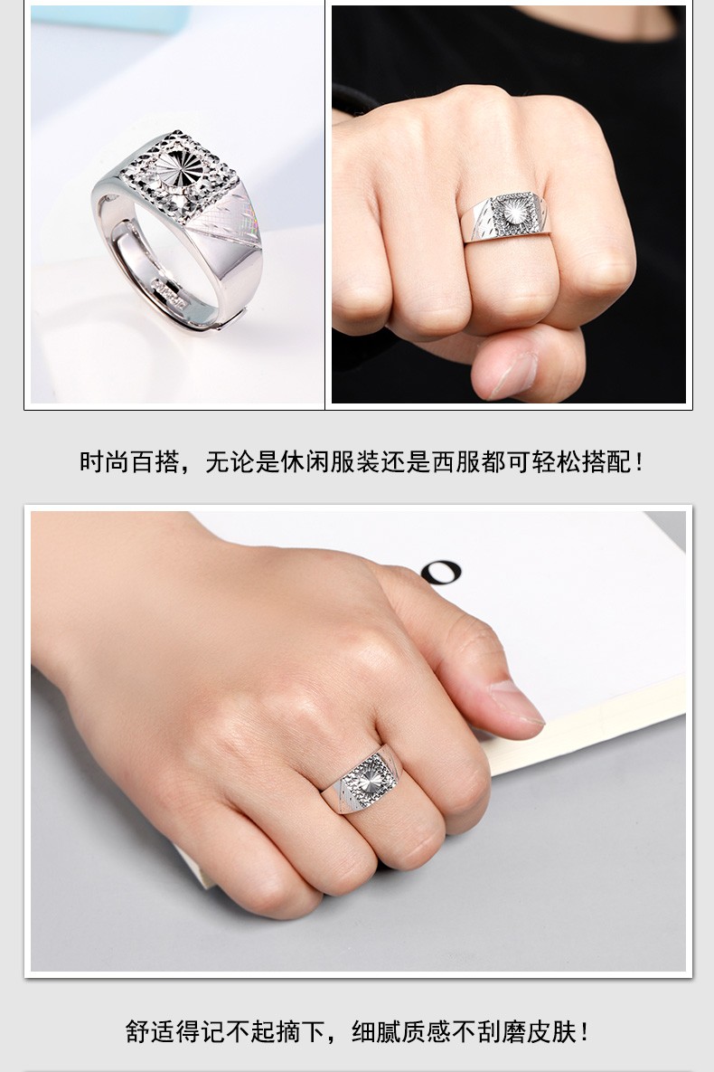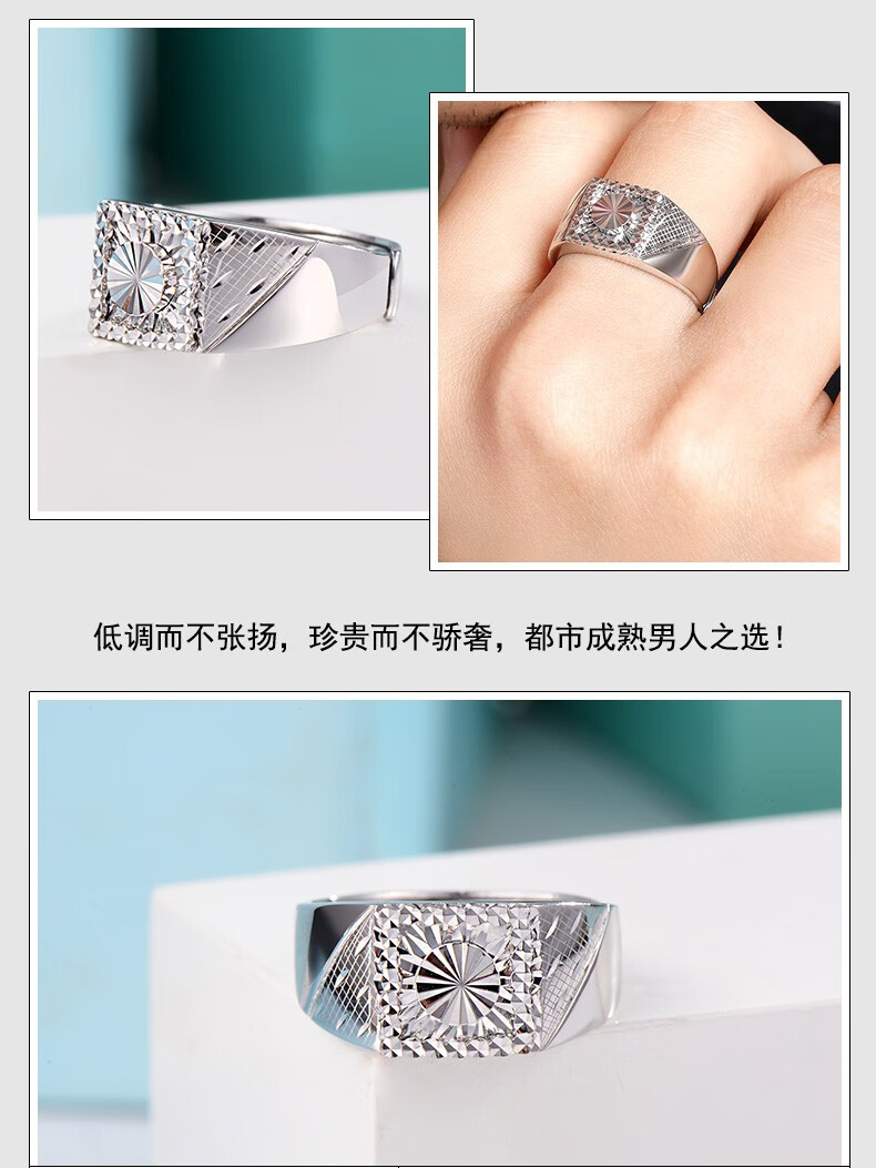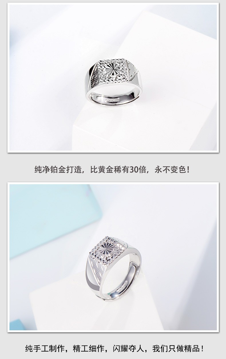 Yuan Shengfu's new PT950 square imitation diamond platinum ring, fashionable men's platinum ring, adjustable promotion, 13.23 grams