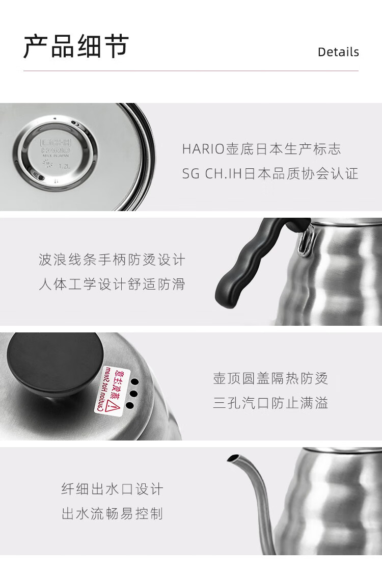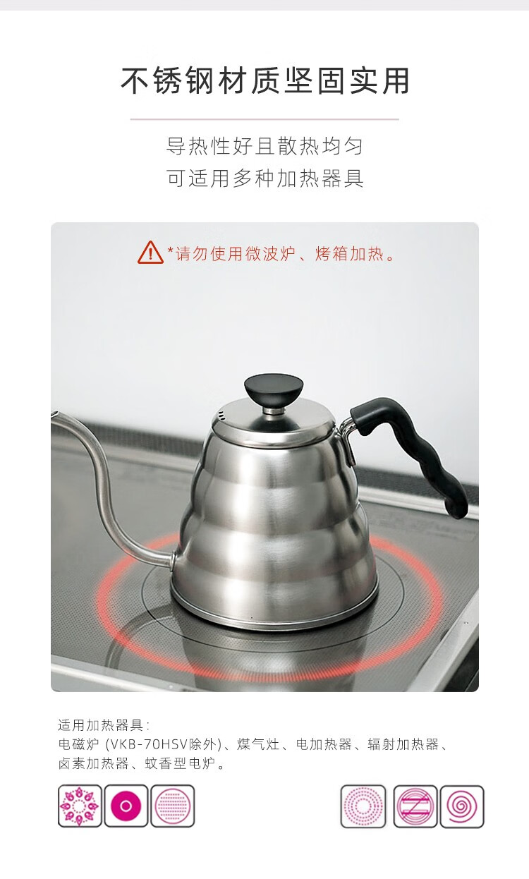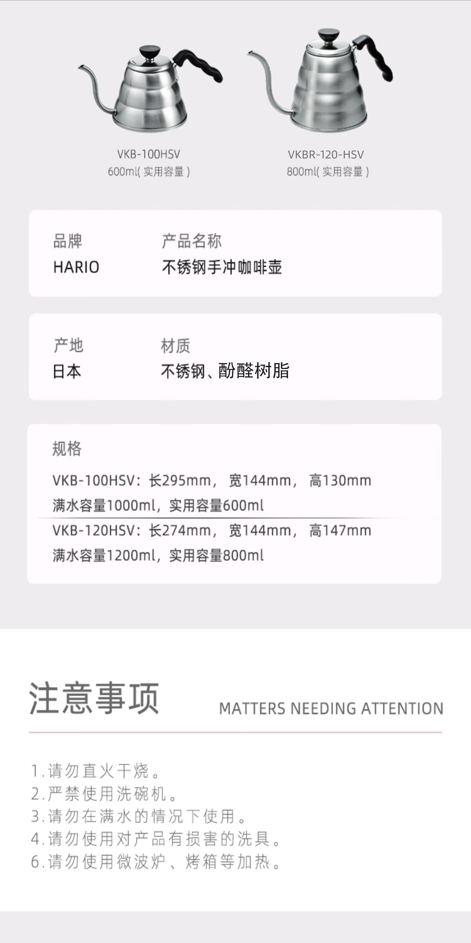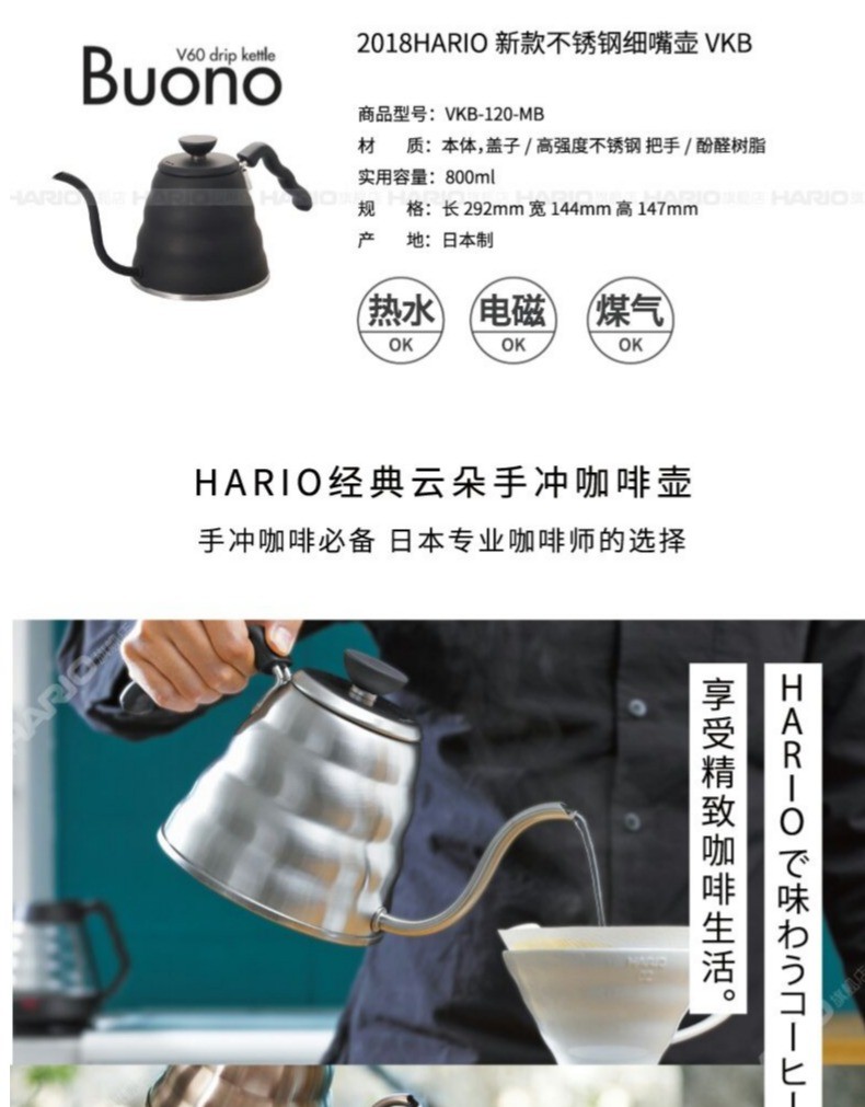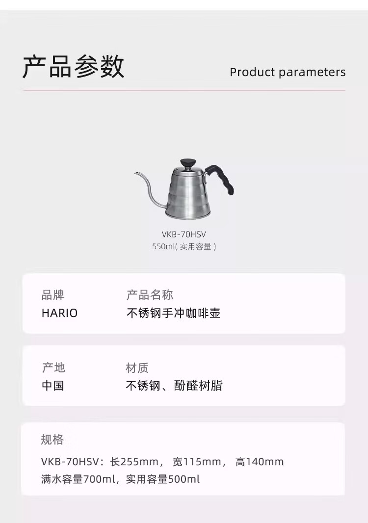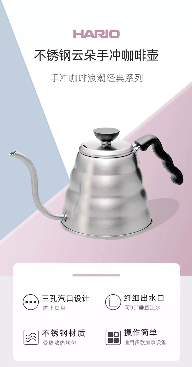 HARIO Japanische handgebrühte Kaffeekanne mit Tropffilter aus Edelstahl, dünnwandige Wolkenkanne, tragbare High-End-handgebrühte Kaffeekanne für den Haushalt. VKB-Edelstahlkanne mit feiner Öffnung 500 ml