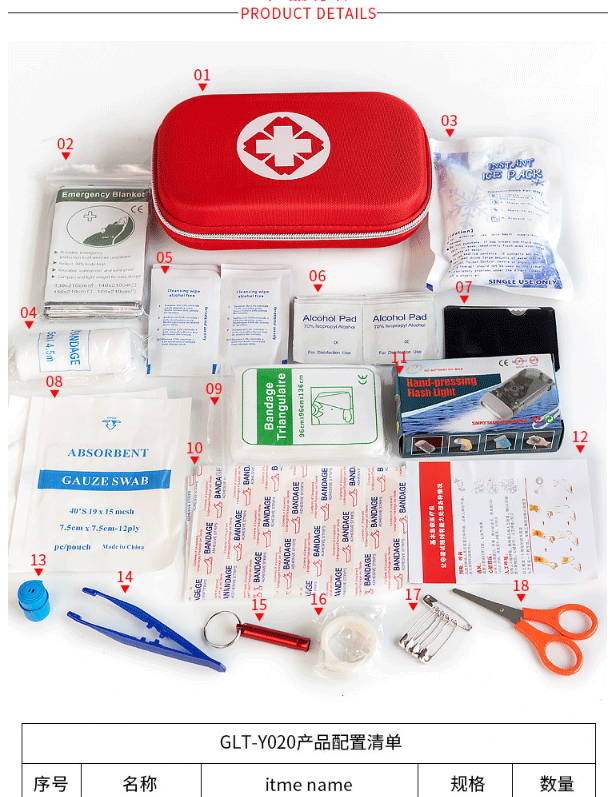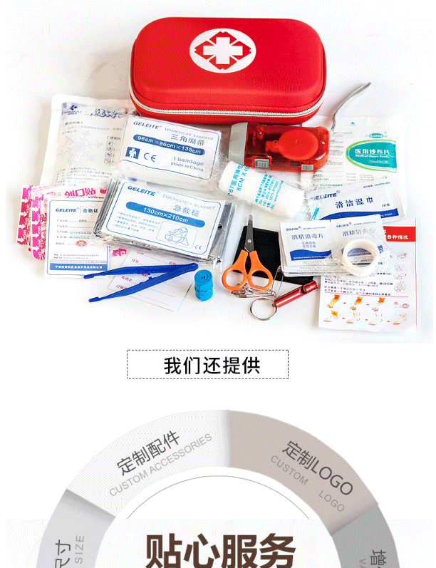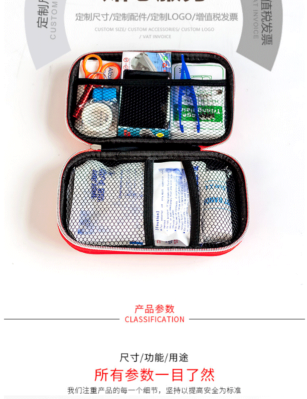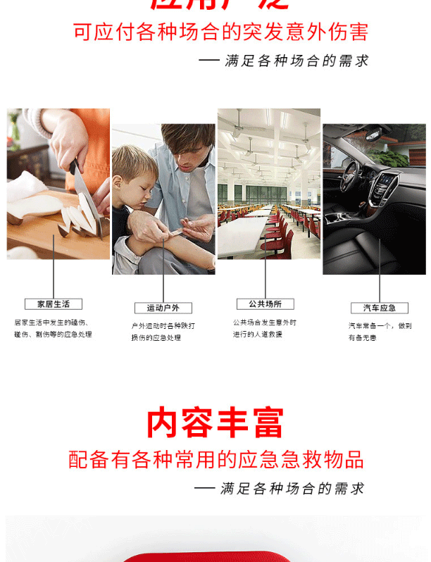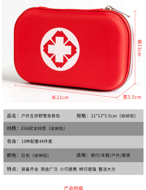 Travel outdoor portable first aid kit set car home medical kit emergency medical kit red (18 categories 44-piece set)