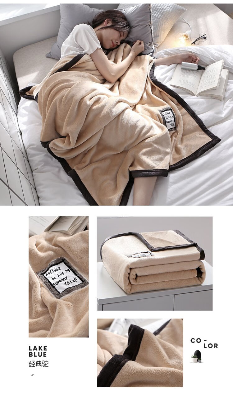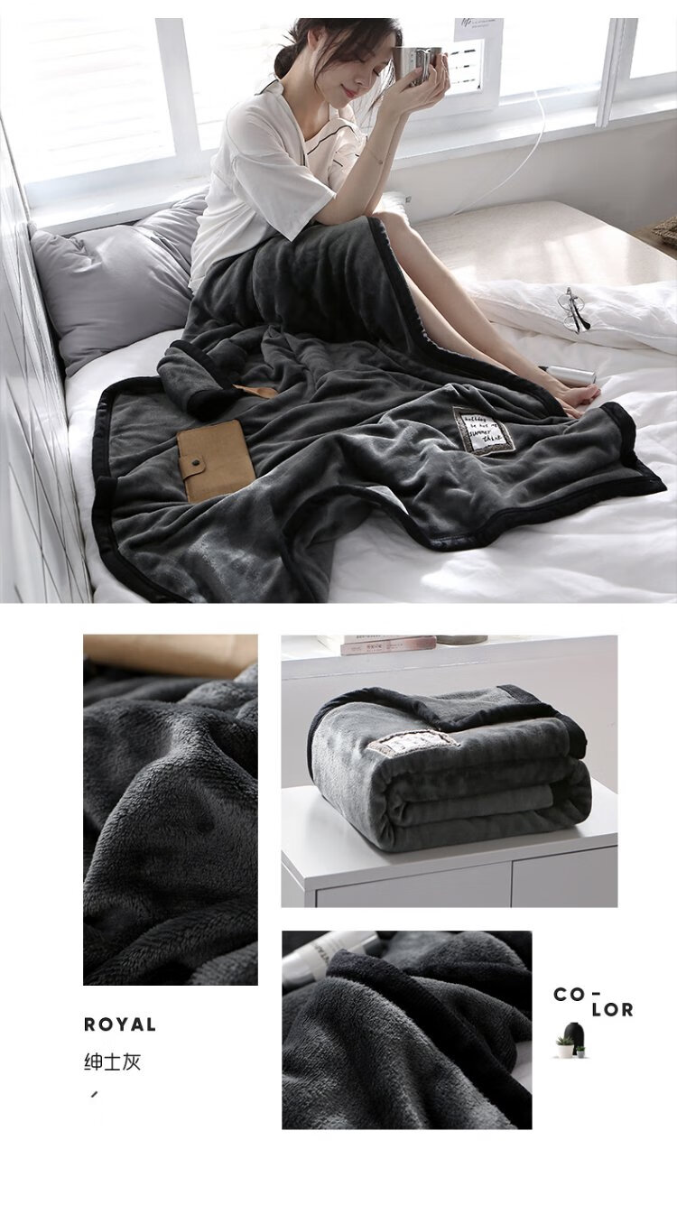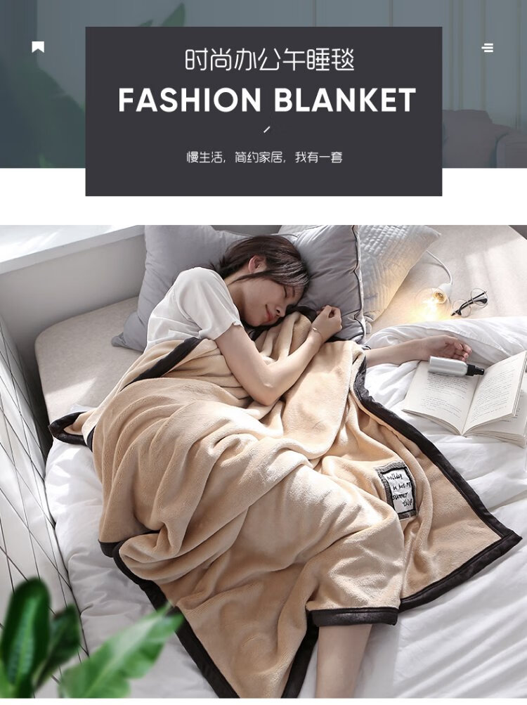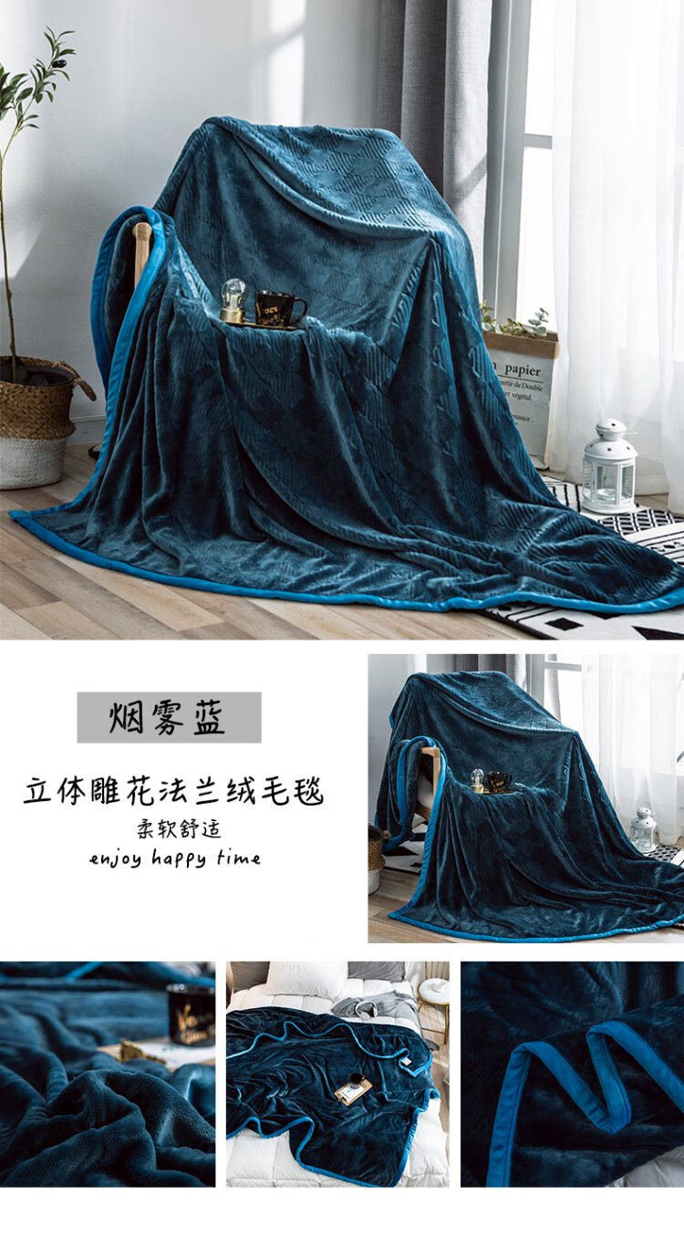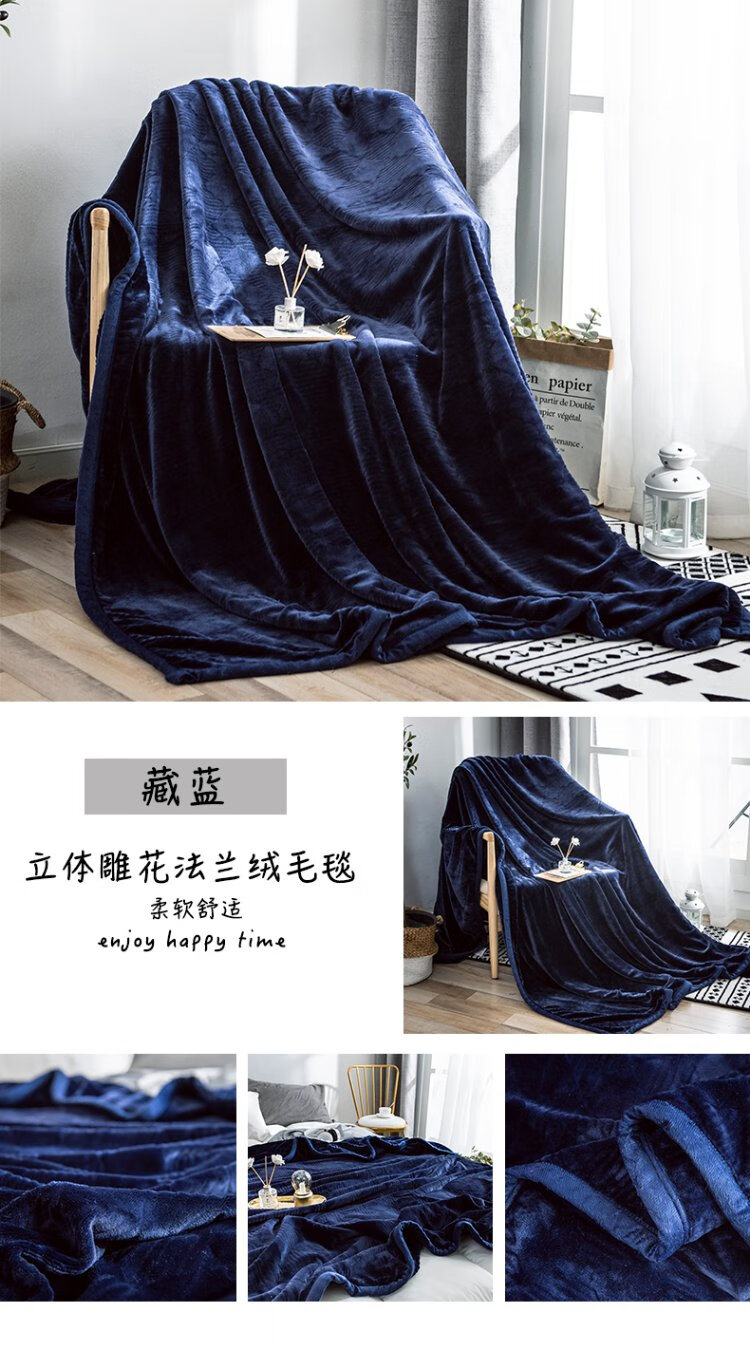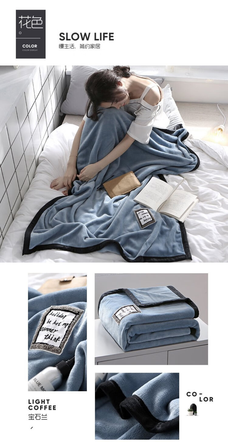 Sleep blanket winter student nap blanket office single small blanket flannel air conditioning quilt nap cover leg sofa W sapphire blue thickened 560g 100cmX150cm