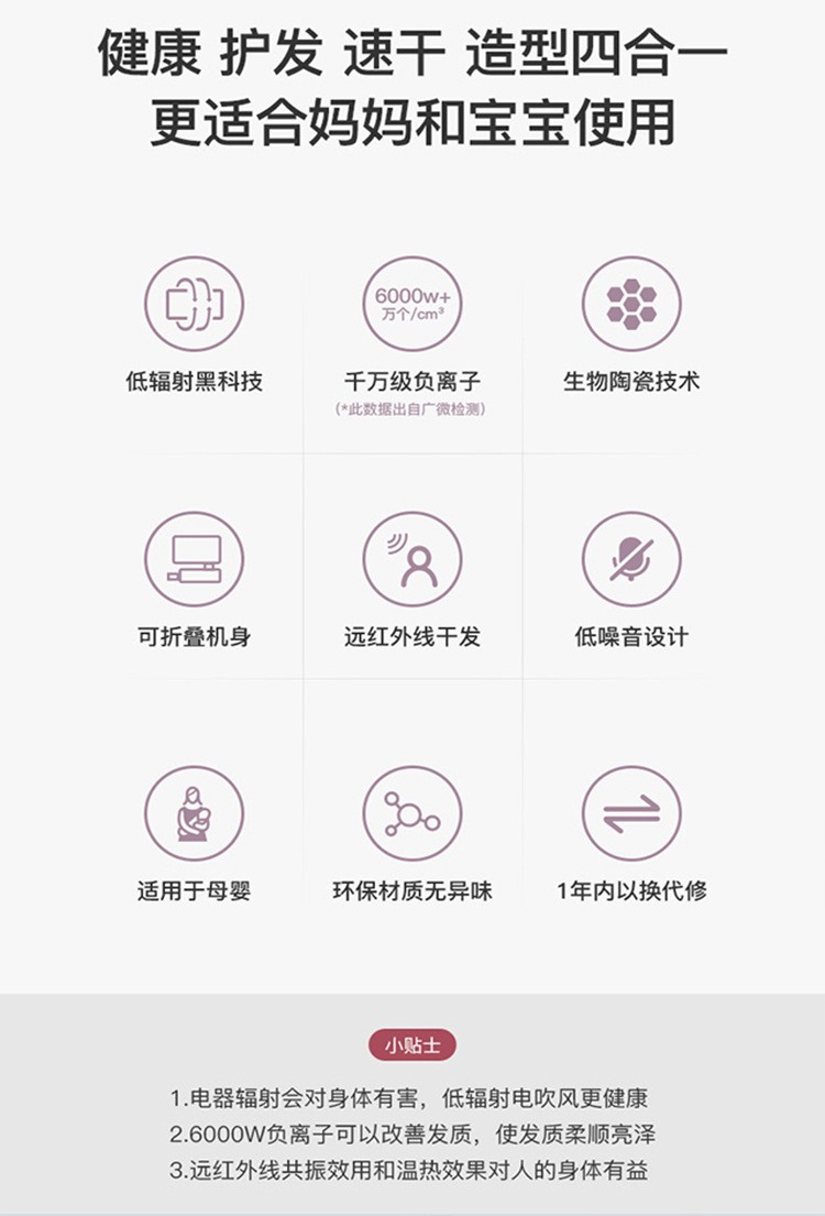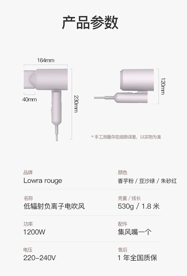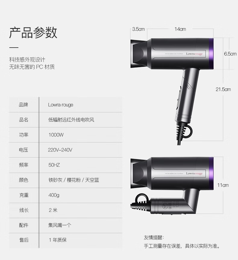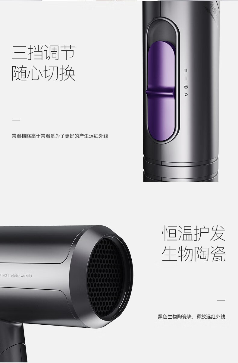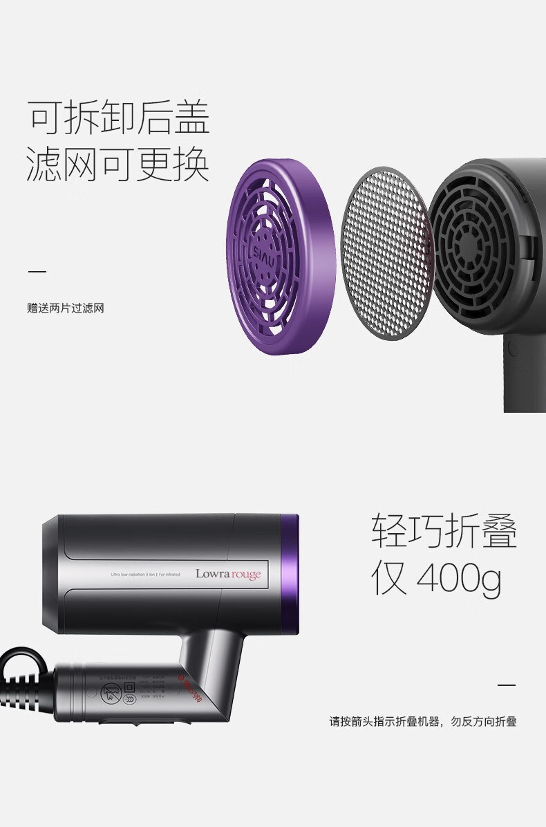 Lowra rouge hair dryer far infrared household low radiation negative ion hair care high power birthday gift for pregnant women and children iron sand gray