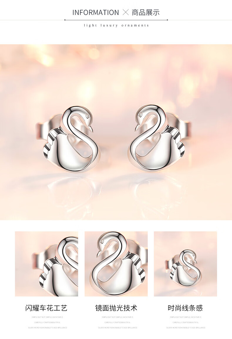 Aido diamond pt950 platinum elegant swan earrings for women fashionable platinum fashion versatile small earrings weighing 1.5-1.7 grams + delivery certificate + rose gift box
