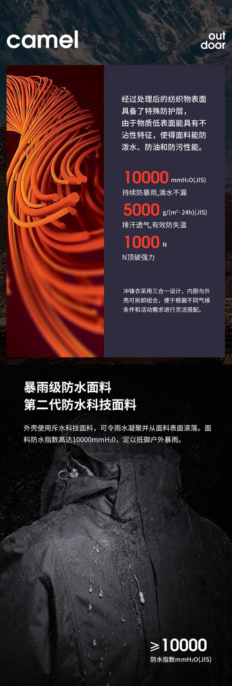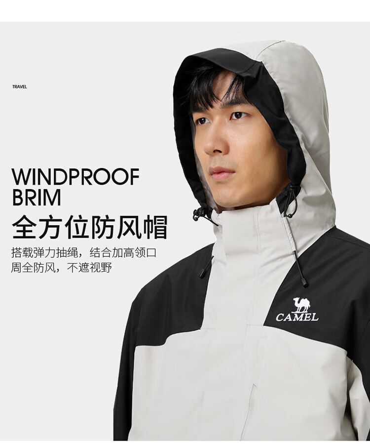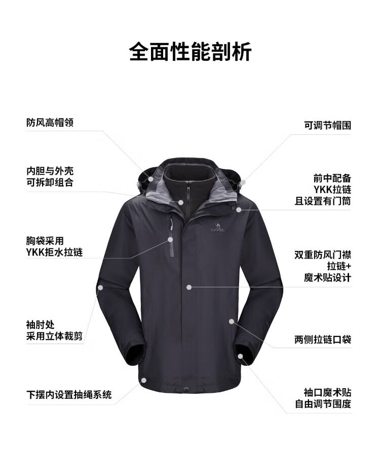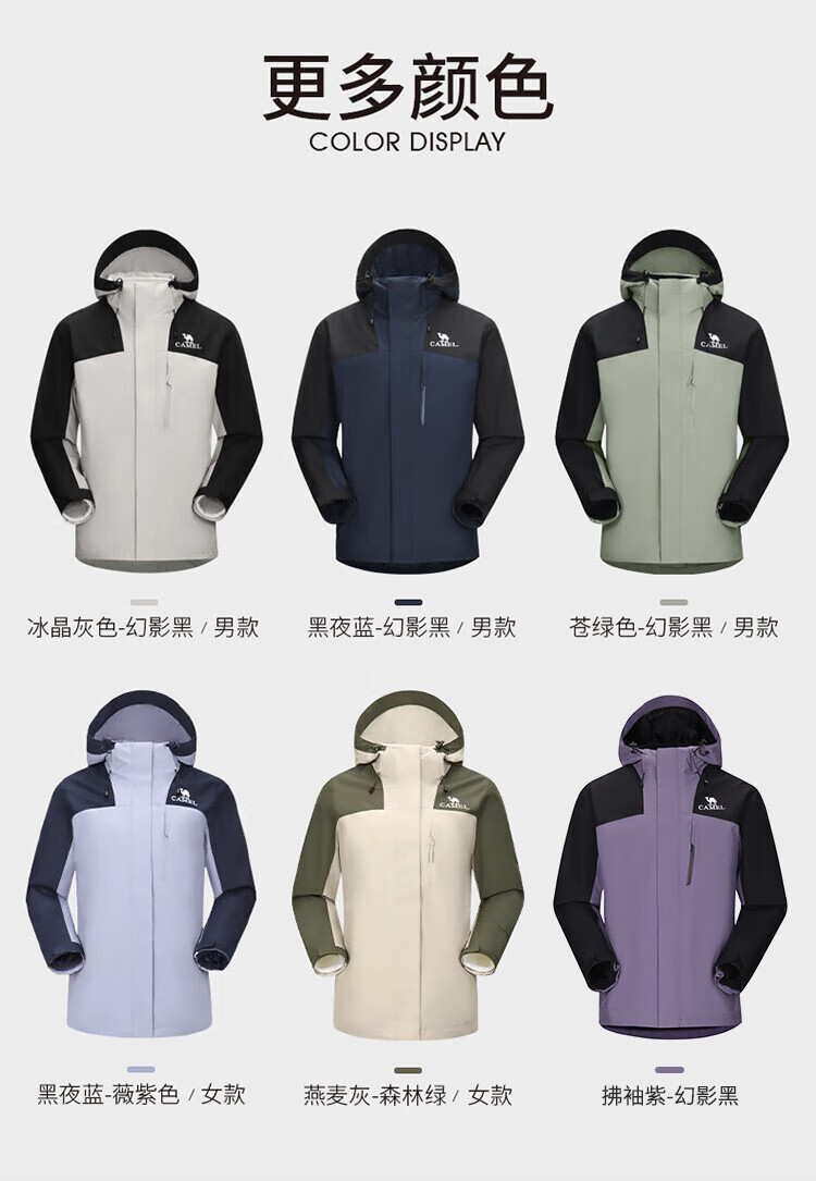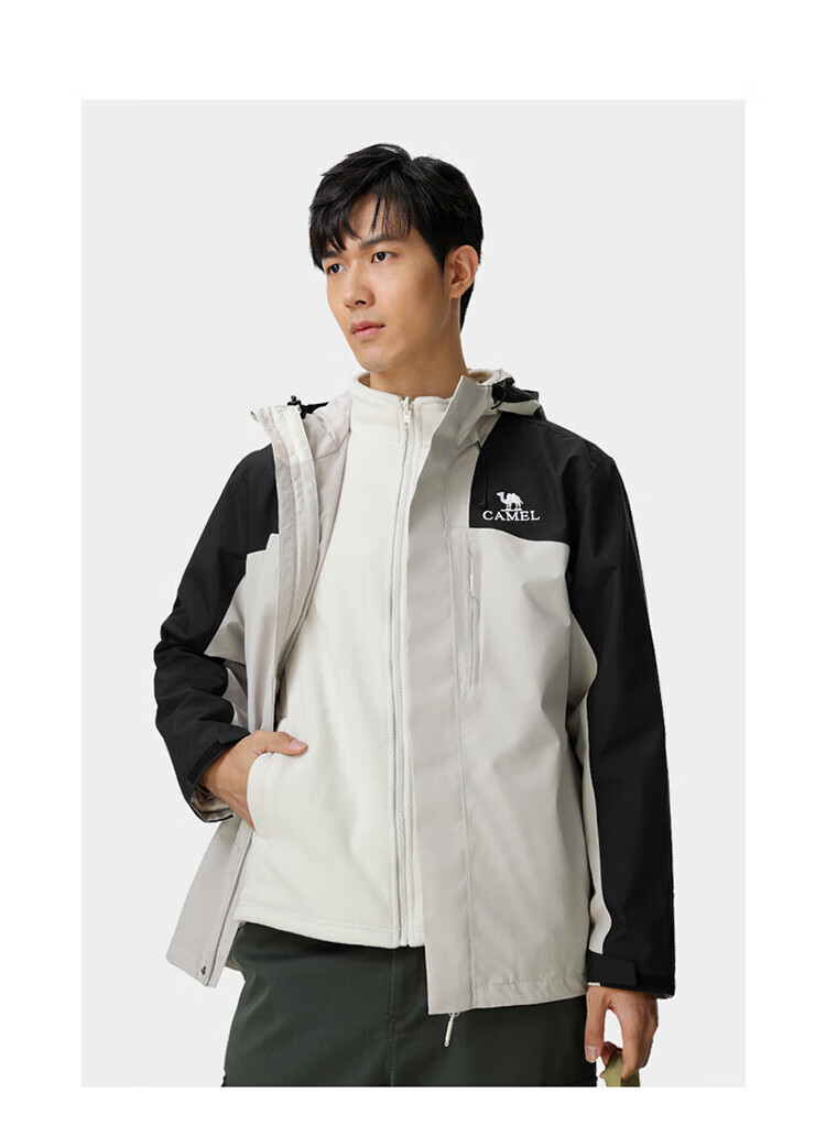 Camel Outdoor (CAMEL) Jacket for Men and Women Anti-fouling and Waterproof Three-in-One Two-piece Jacket for Men A7W217127