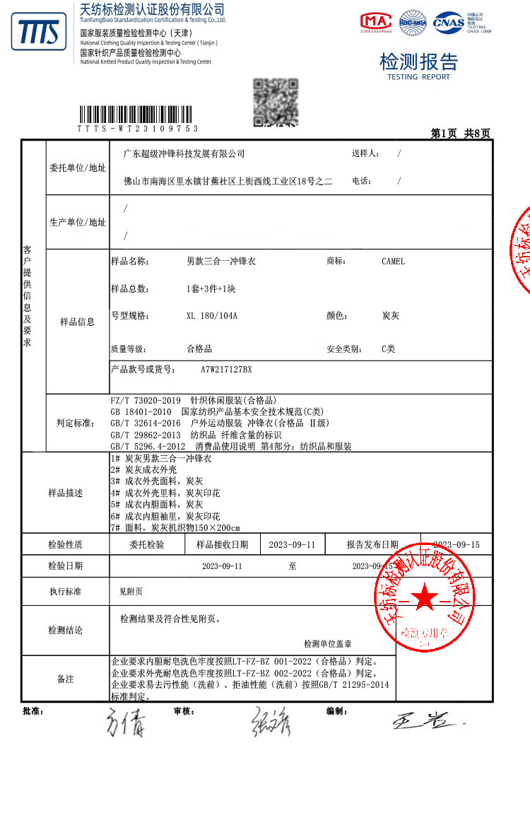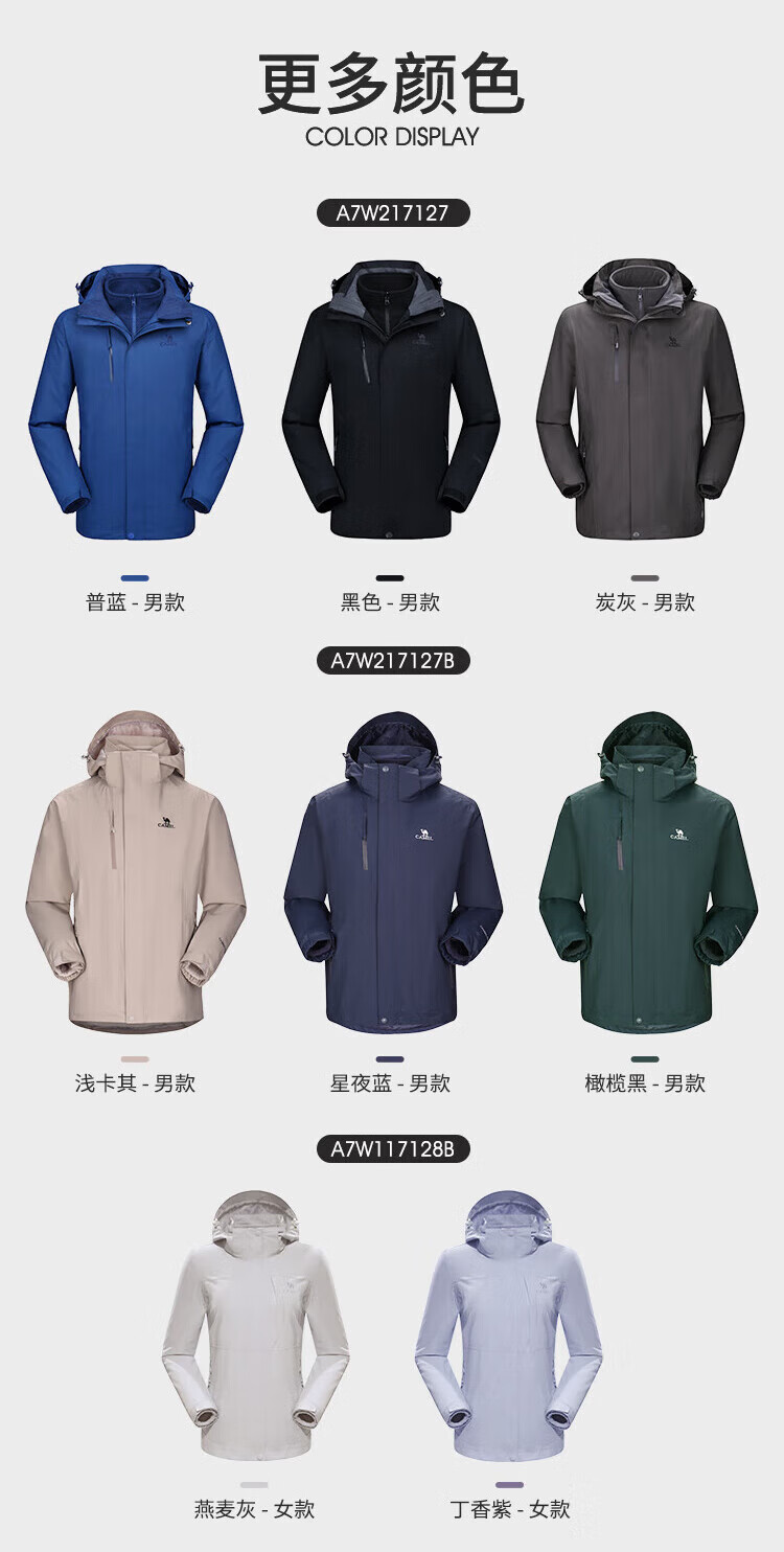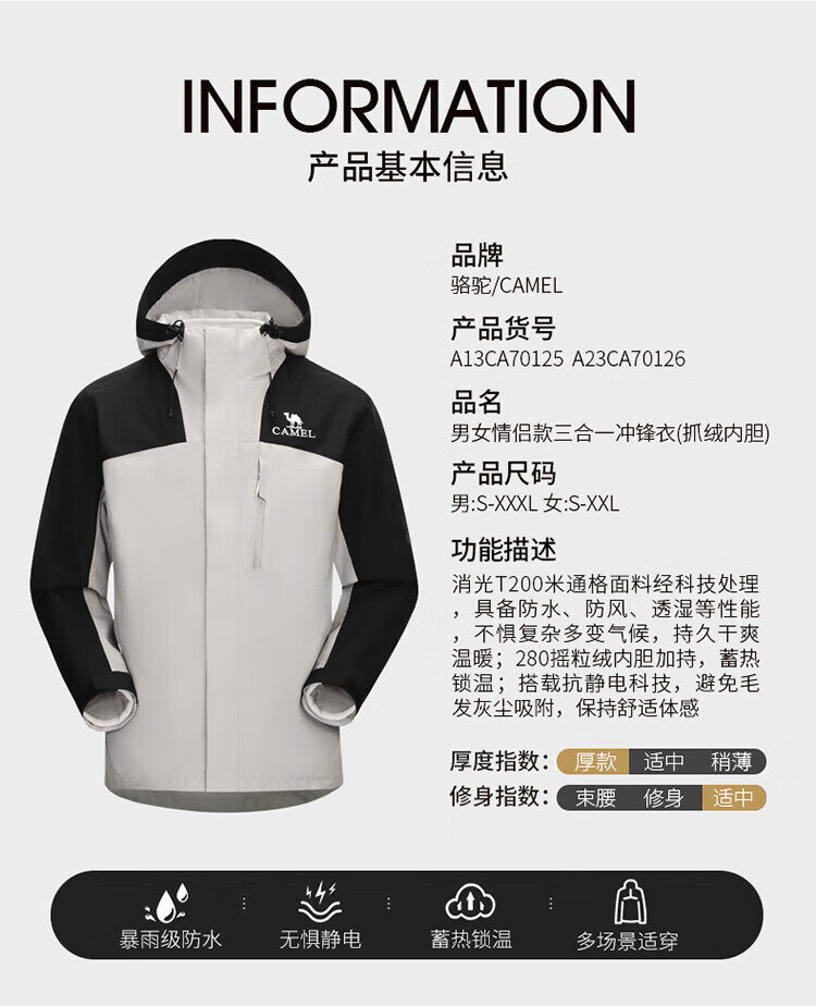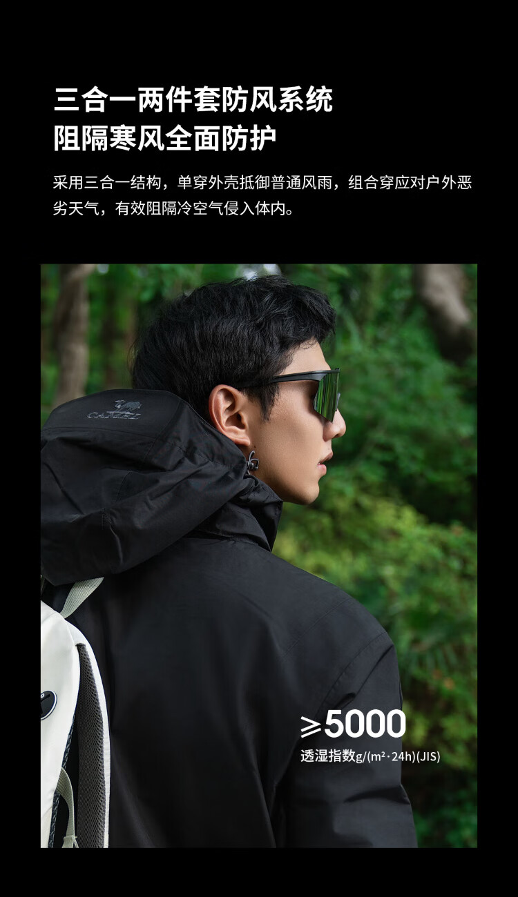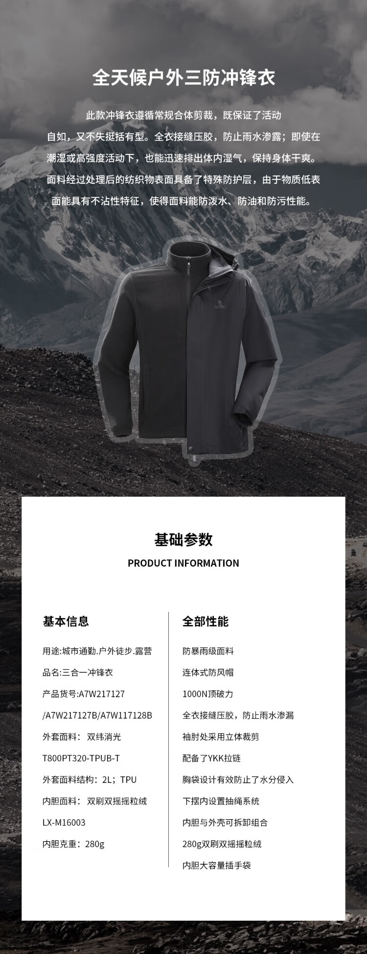 Camel Outdoor (CAMEL) Jacket for Men and Women Anti-fouling and Waterproof Three-in-One Two-piece Jacket for Men A7W217127