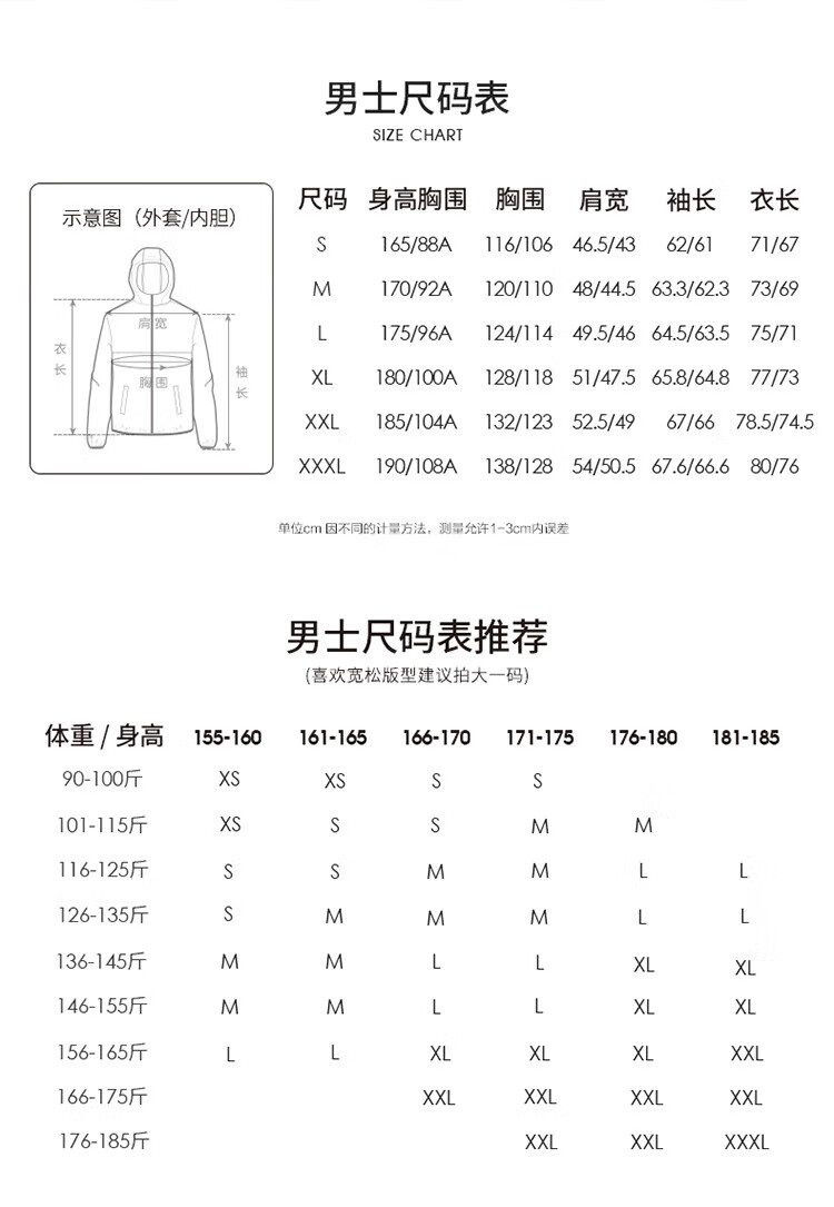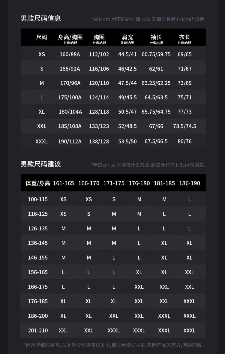 China (cm) 165 / 88-90 170 / 96-98 175 / 108-110 180 / 118-122 185 / 126-130