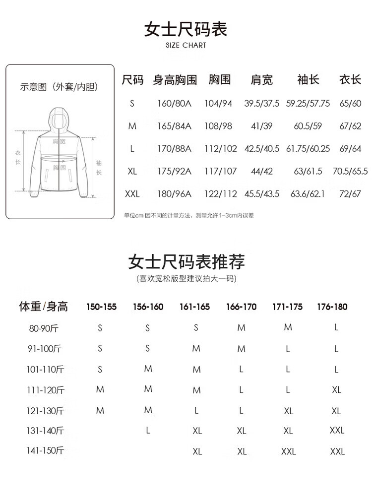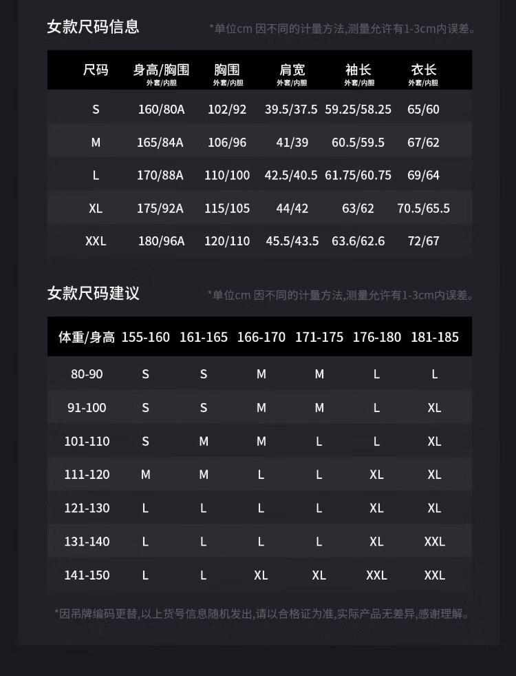 China (cm) 160-165/84-86 165-170 / 88-90 167-172 / 92-96 168-173 / 98-102 170-176 / 106-110