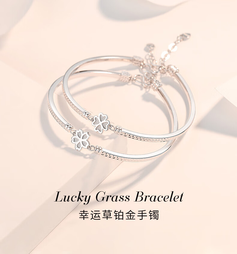 Aido Diamond Platinum Four-leaf Clover Bracelet Women's Fashion Boutique pt950 Shiny Platinum Five-Flower Bracelet Gift for Wife Five-leaf Clover Weight 5.1-5.3g + Comes with Certificate