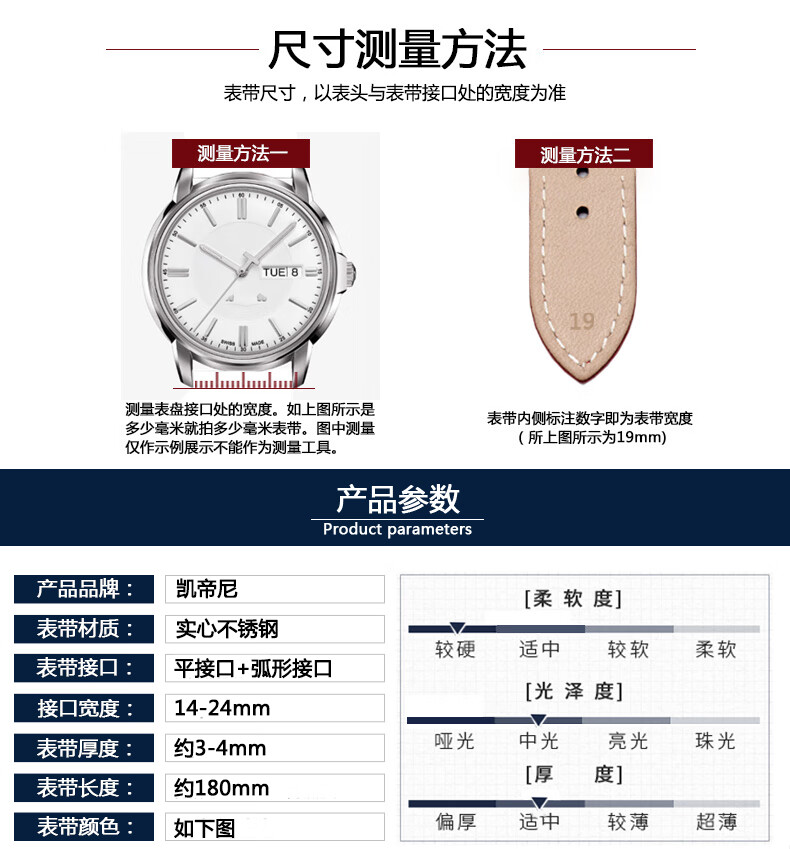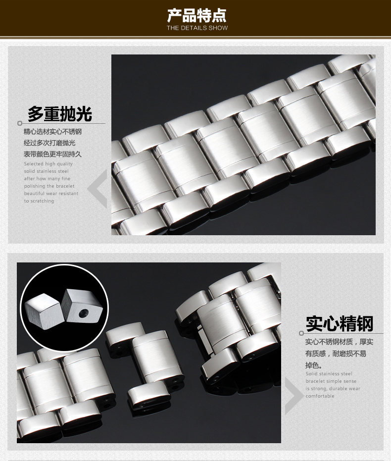 Kaidini watch steel strap for men and women stainless steel watch strap metal butterfly buckle suitable for Seiko Tissot King strap stainless steel bracelet steel color 20mm