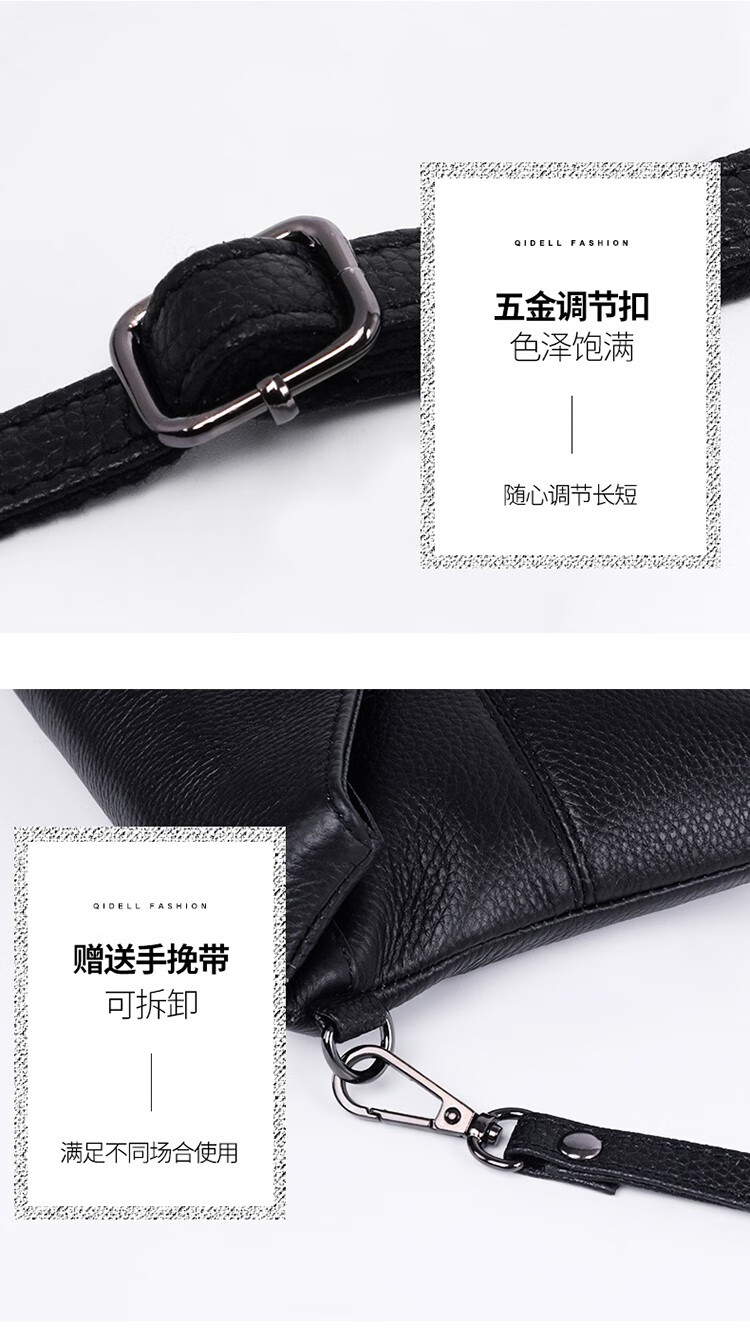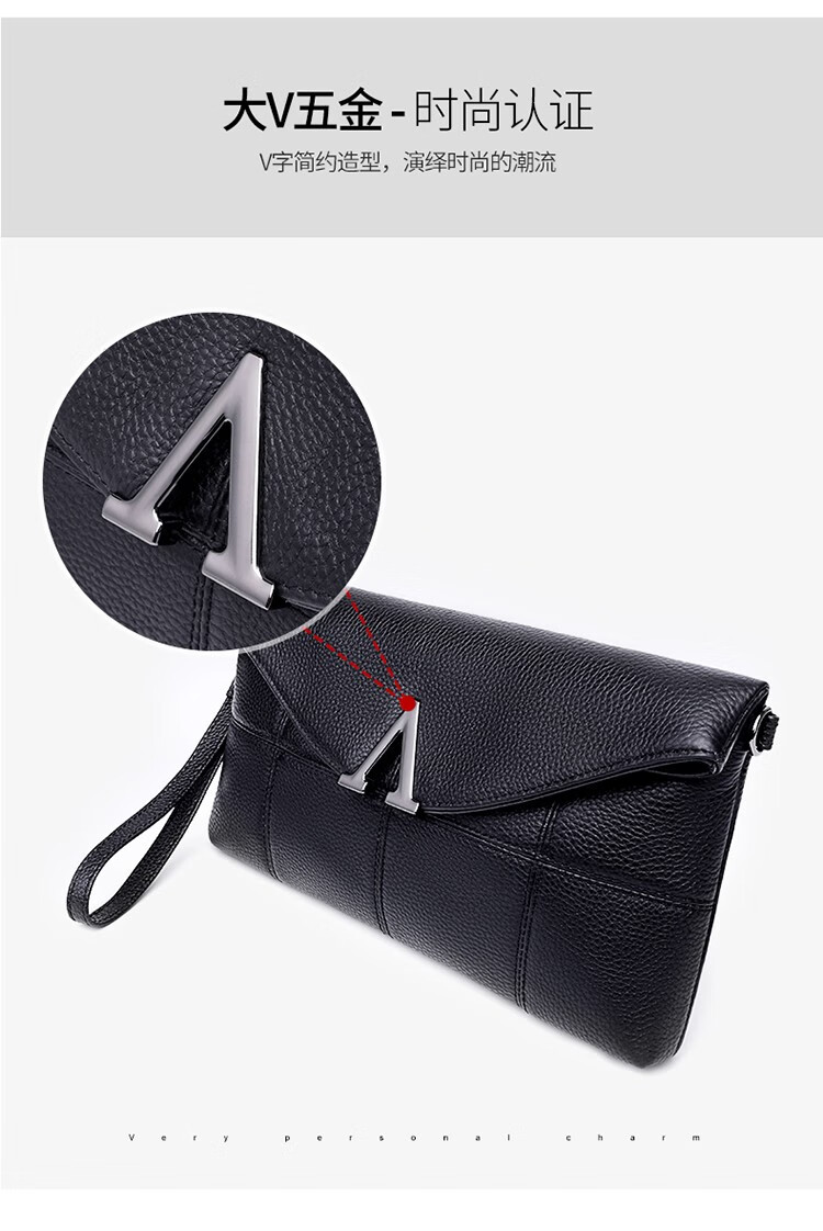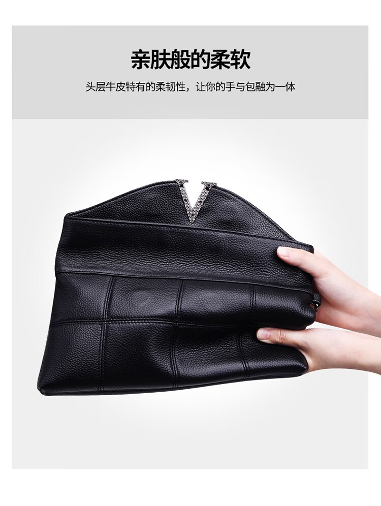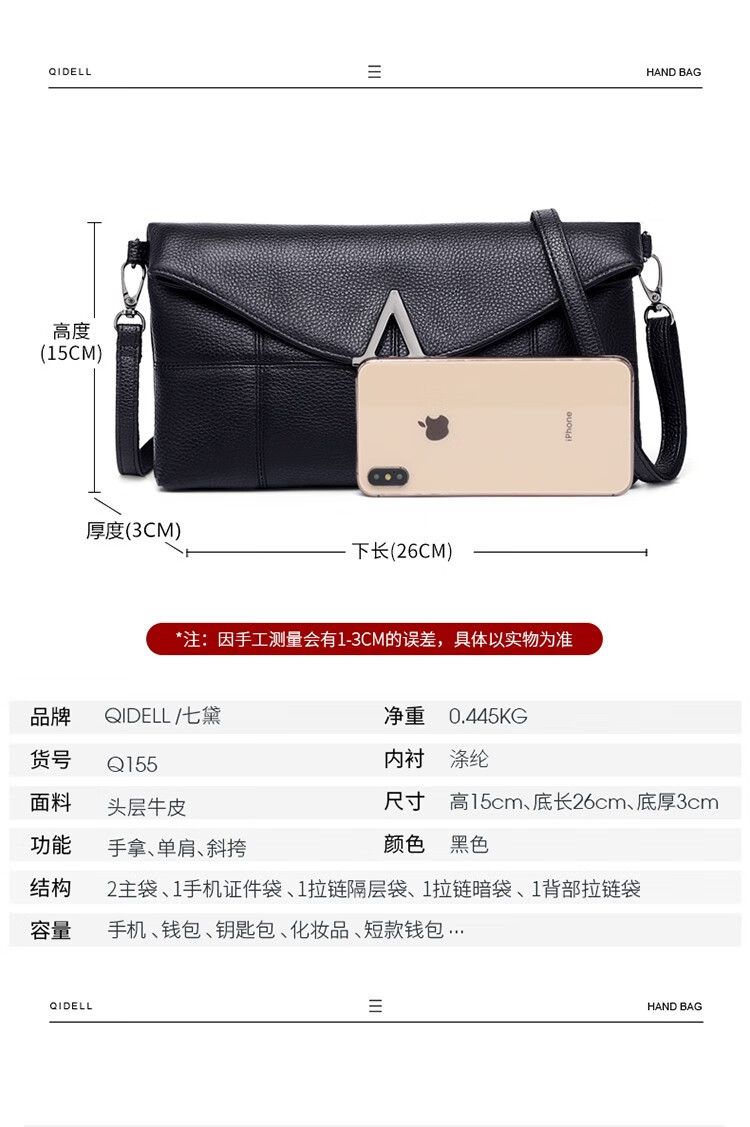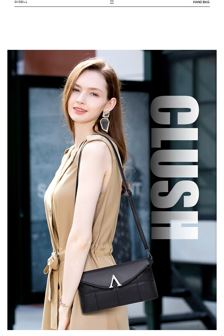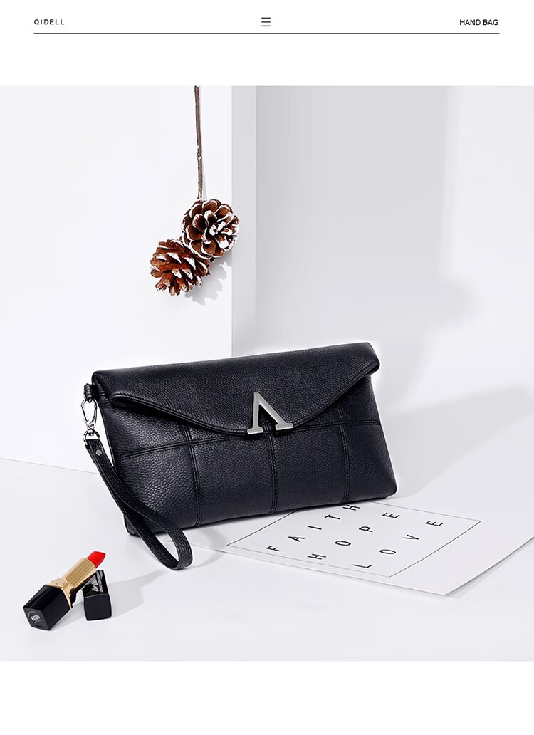 Qidell Genuine Cowhide Clutch Women's New Large Capacity Envelope Women's Handbag Shoulder Bag Soft Cowhide Leather Banquet Clutch Bag Women's Wallet Black