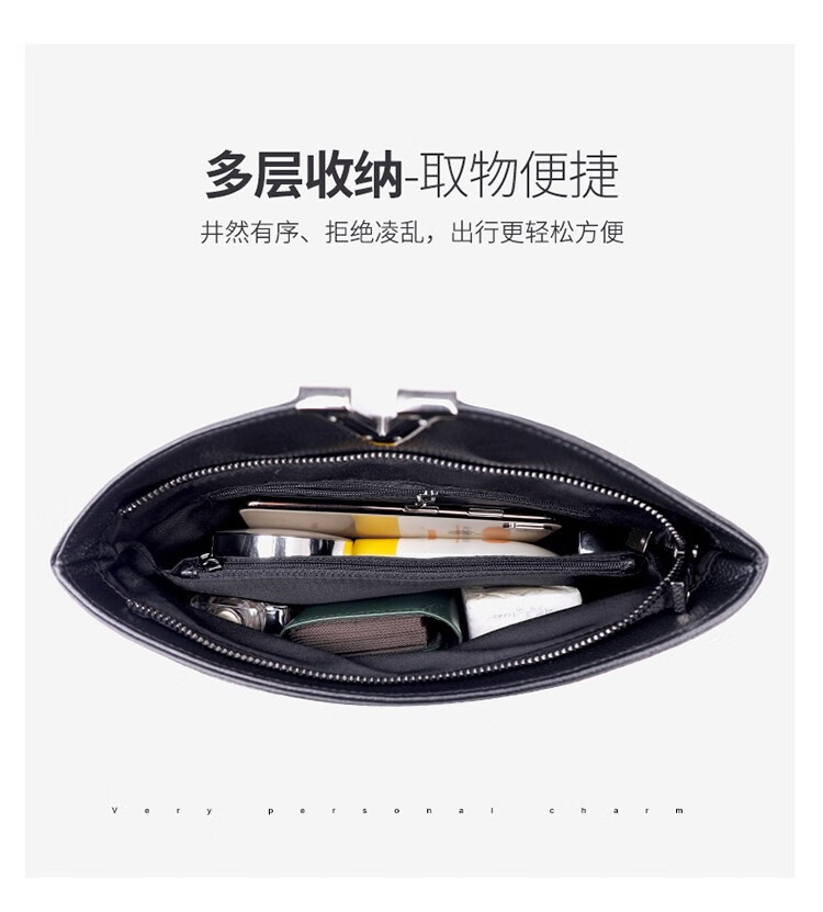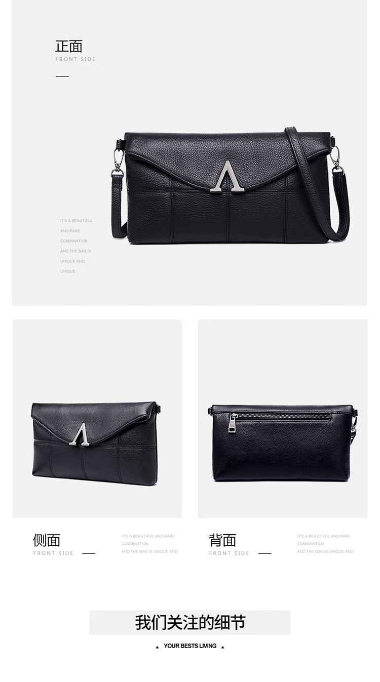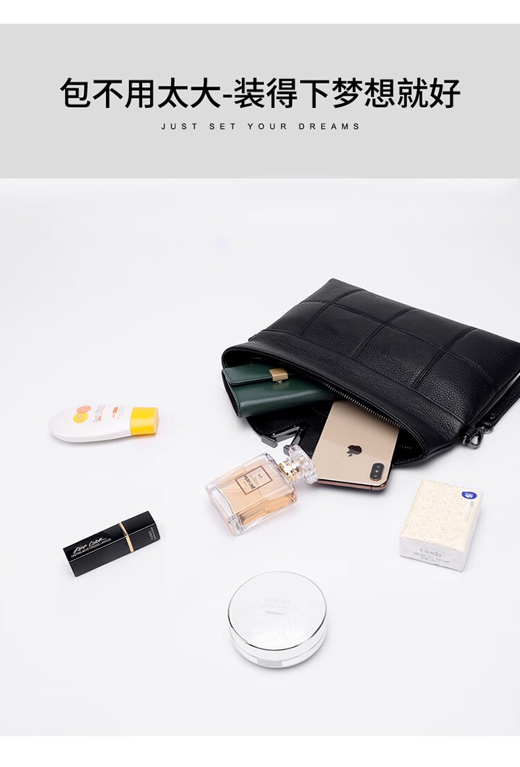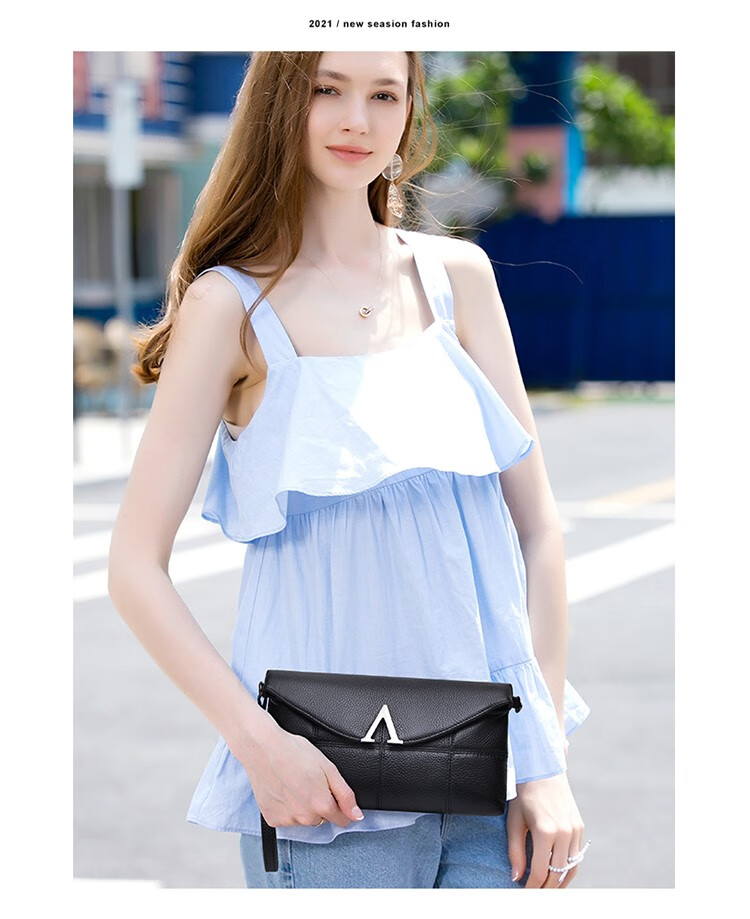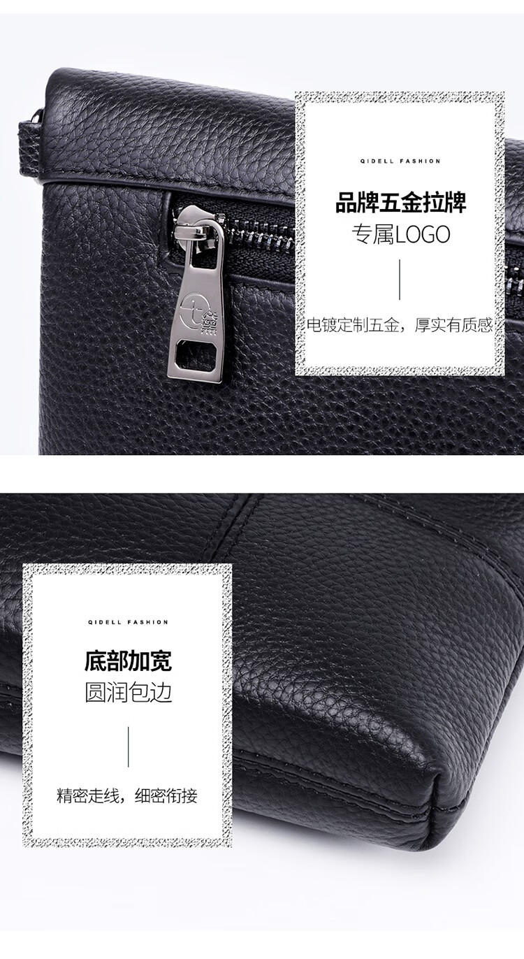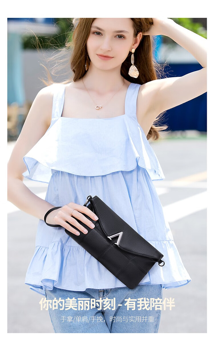 Qidell Genuine Cowhide Clutch Women's New Large Capacity Envelope Women's Handbag Shoulder Bag Soft Cowhide Leather Banquet Clutch Bag Women's Wallet Black