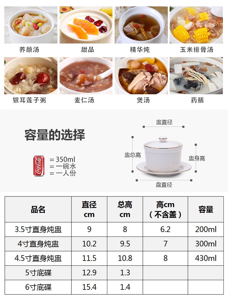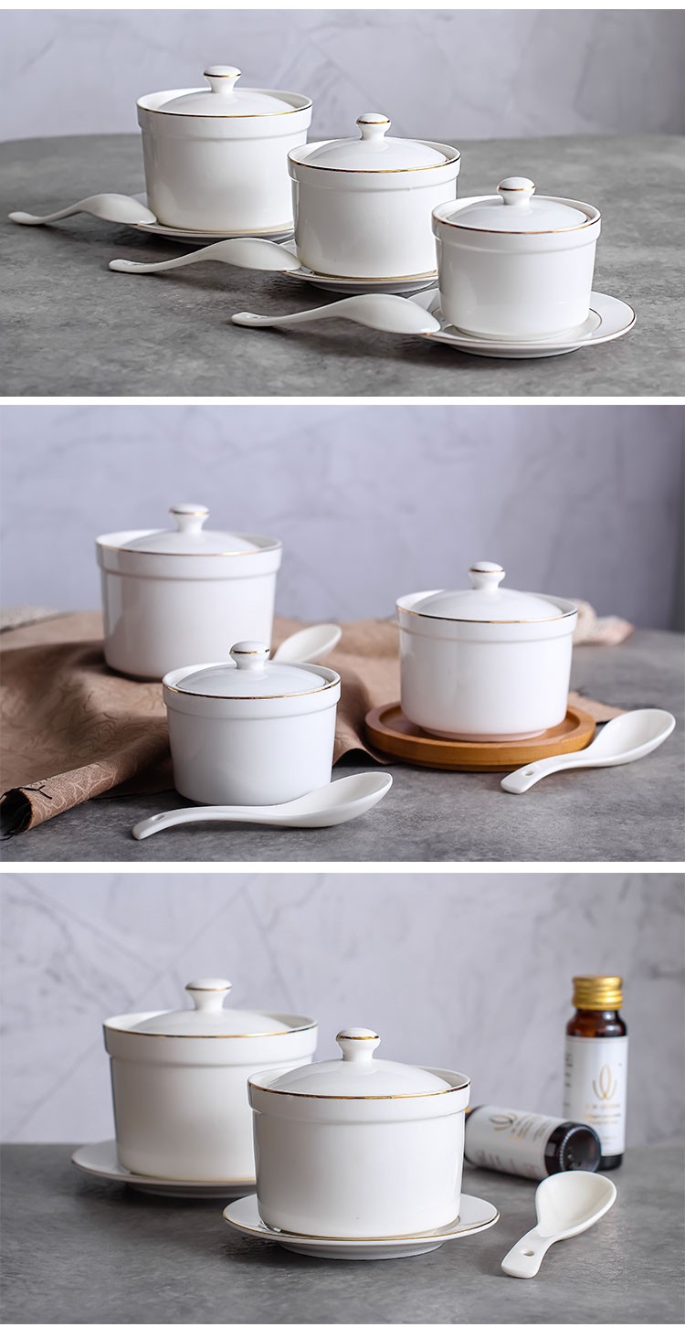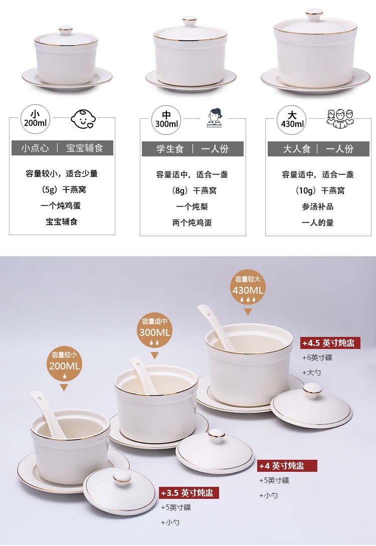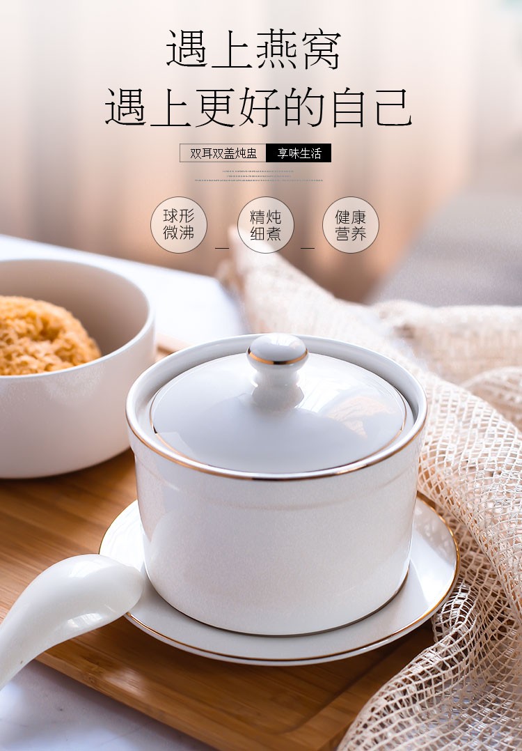 CiH Huijin stew pot ceramic hotel bird's nest soup bowl with lid water-proof stew pot set dessert cup high temperature resistance 4-inch Huijin straight stew pot single + bottom plate with spoon