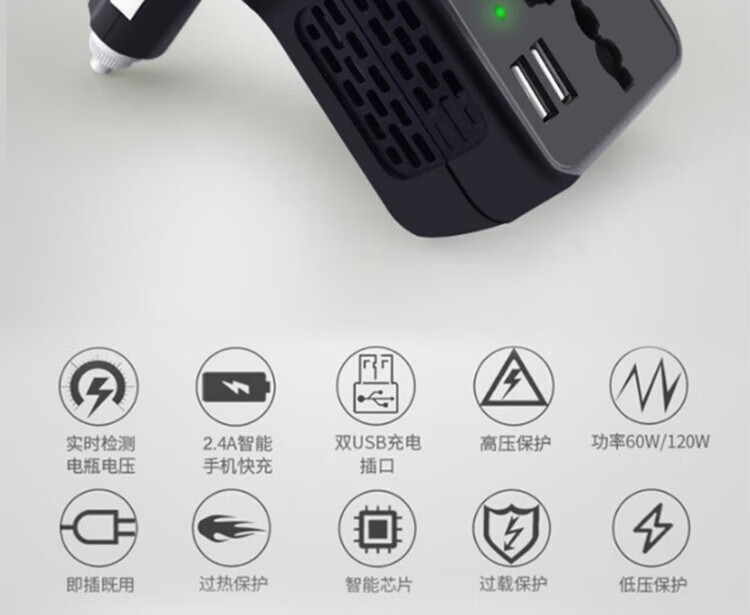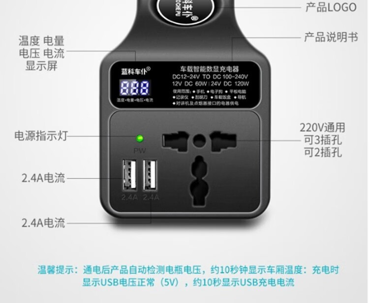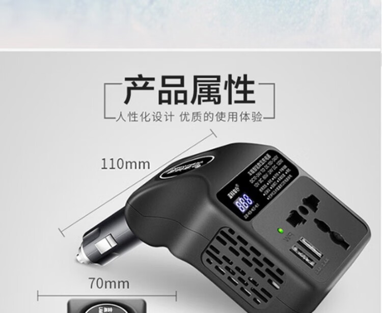 LamKo Che Pu Car Inverter 12V/24V to 220V Universal Multifunctional High Power Transformer Booster Socket Power Conversion 12V to 220V 150W Black or White Randomly Delivered