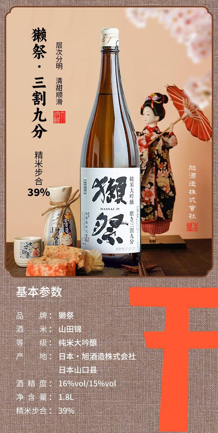 Dassai 39 three-cut nine-point sake 1.8L Junmai Daiginjo imported from Japan gift box
