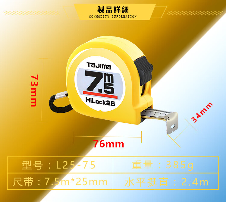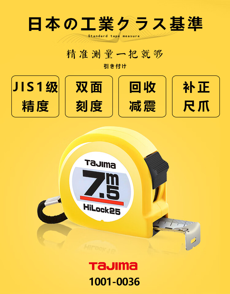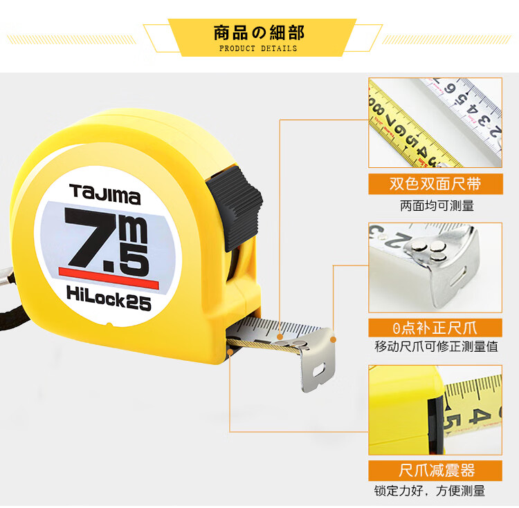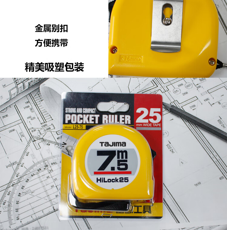 Tajima 7.5 meter steel tape measure box meter ruler woodworking ruler metric 25mm wide 1001-0036