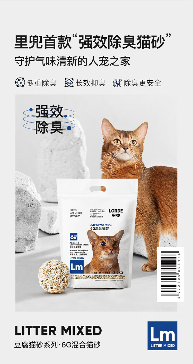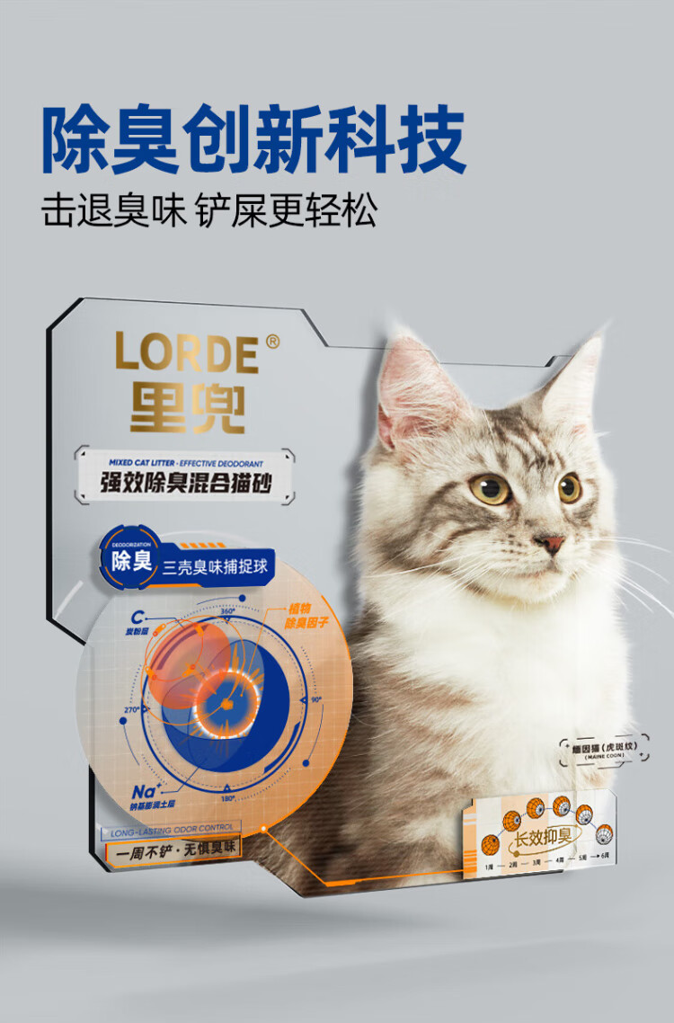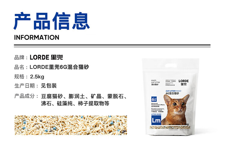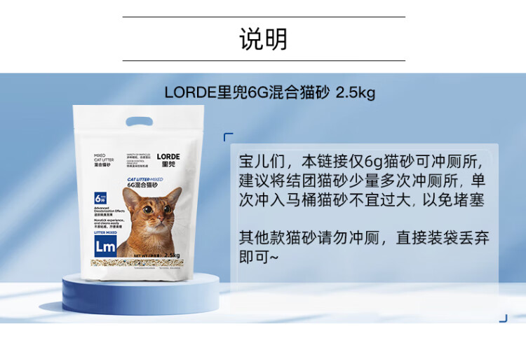 Lorde 6 heavy mixed cat litter tofu bentonite mineral sand deodorizing cat litter kitten supplies can flush the toilet activated carbon mixed sand 7L*3