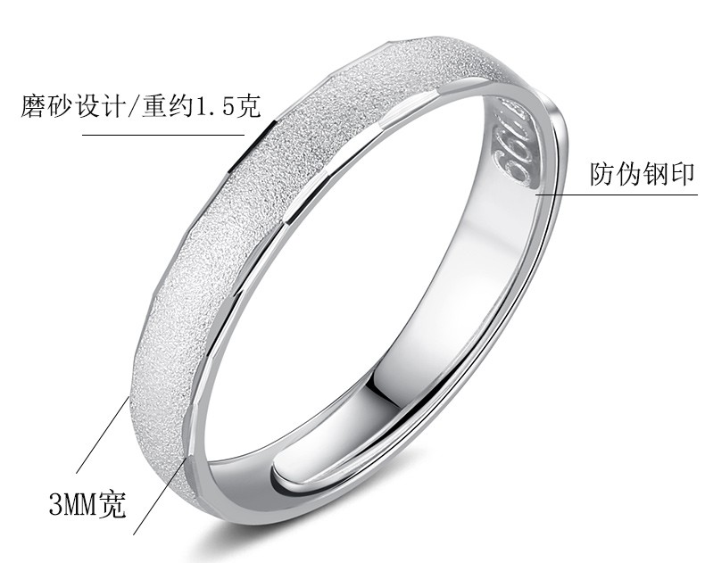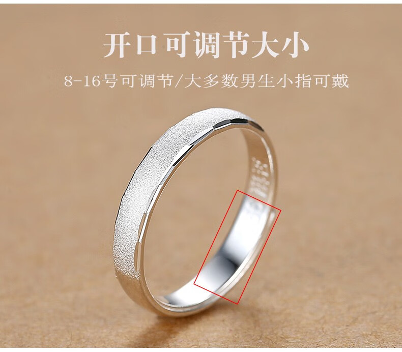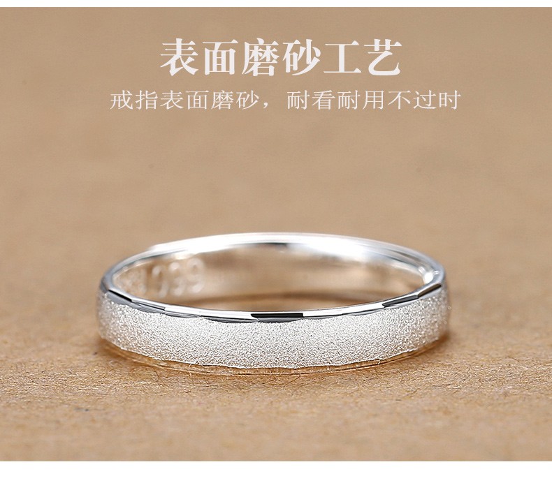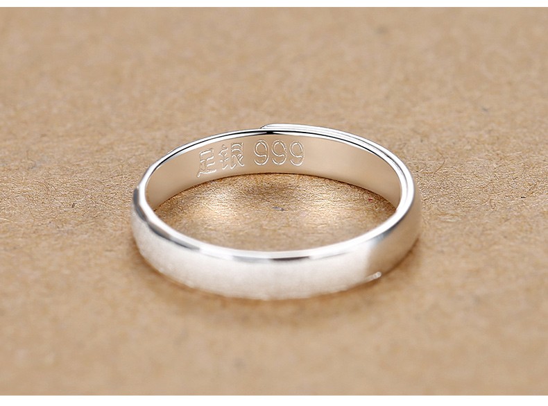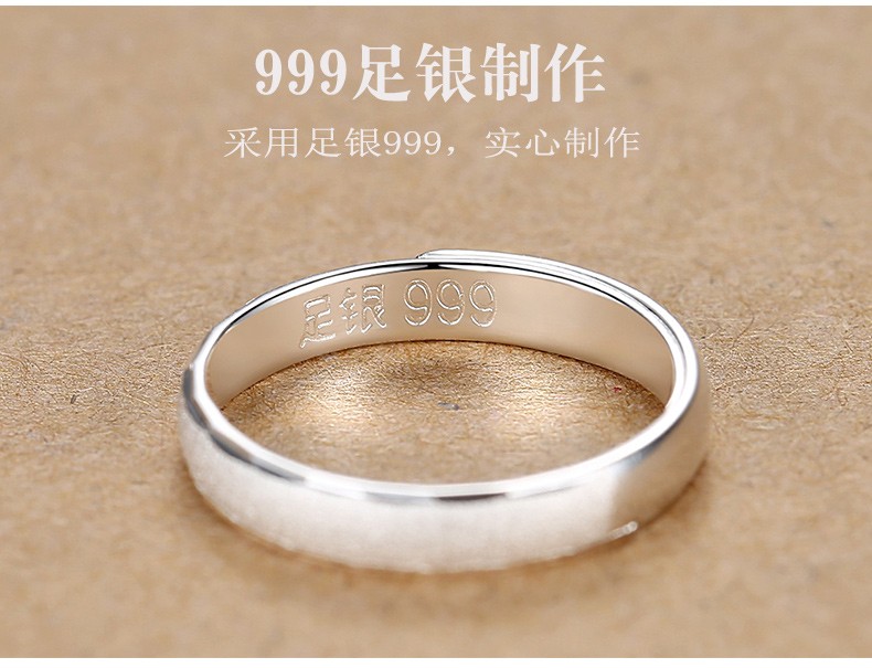 Decorated with amber 999 full silver tail ring, men's little finger silver single ring, single, simple and personalized women's tail ring, frosted open ring with engraving, width about 3MM/frosted small tail ring/adjustable size