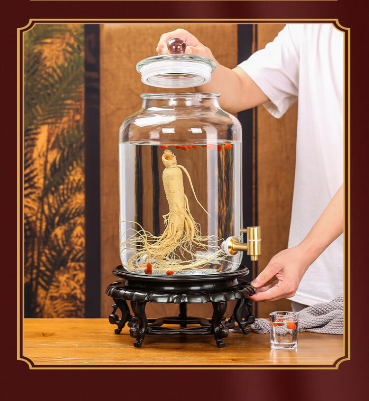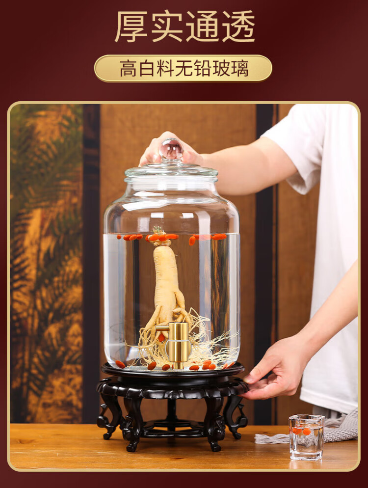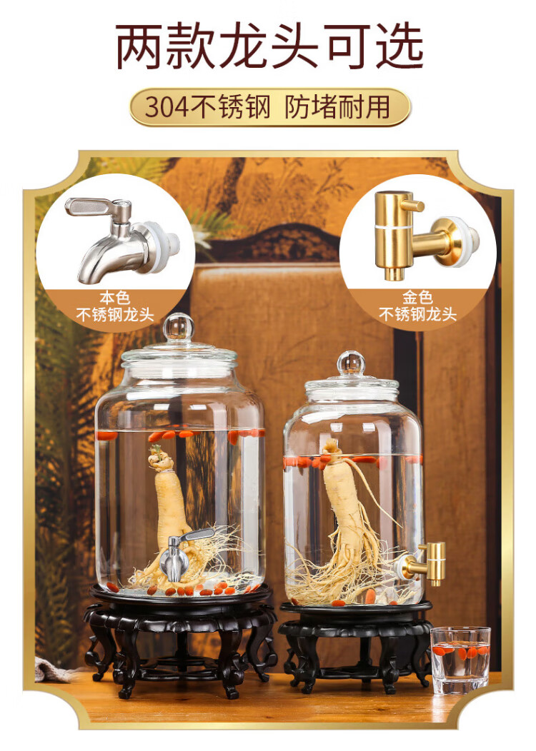 Shandetang sealed glass wine bottle with faucet wine container 10 Jin Jin equals 0.5 kg. Special bottle for brewing wine cans with red bayberry wine bottle 10 Jin Jin equals 0.5 kg. With gold stainless steel faucet + base