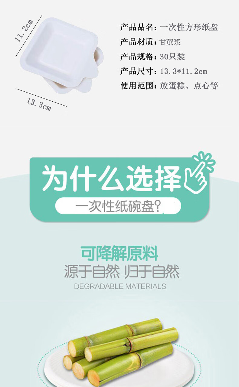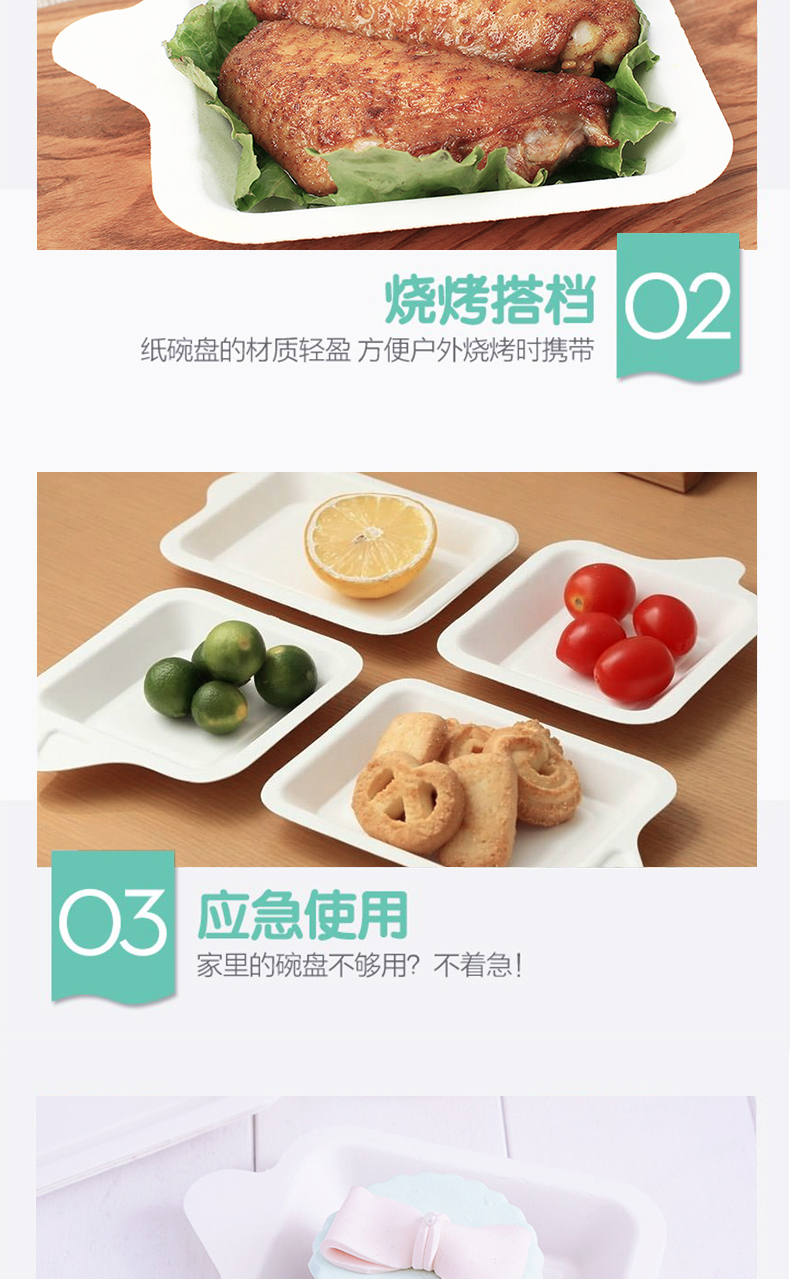 Tinghao disposable paper plate 4-inch square cake disposable plate biodegradable tableware picnic barbecue plate 30 pieces