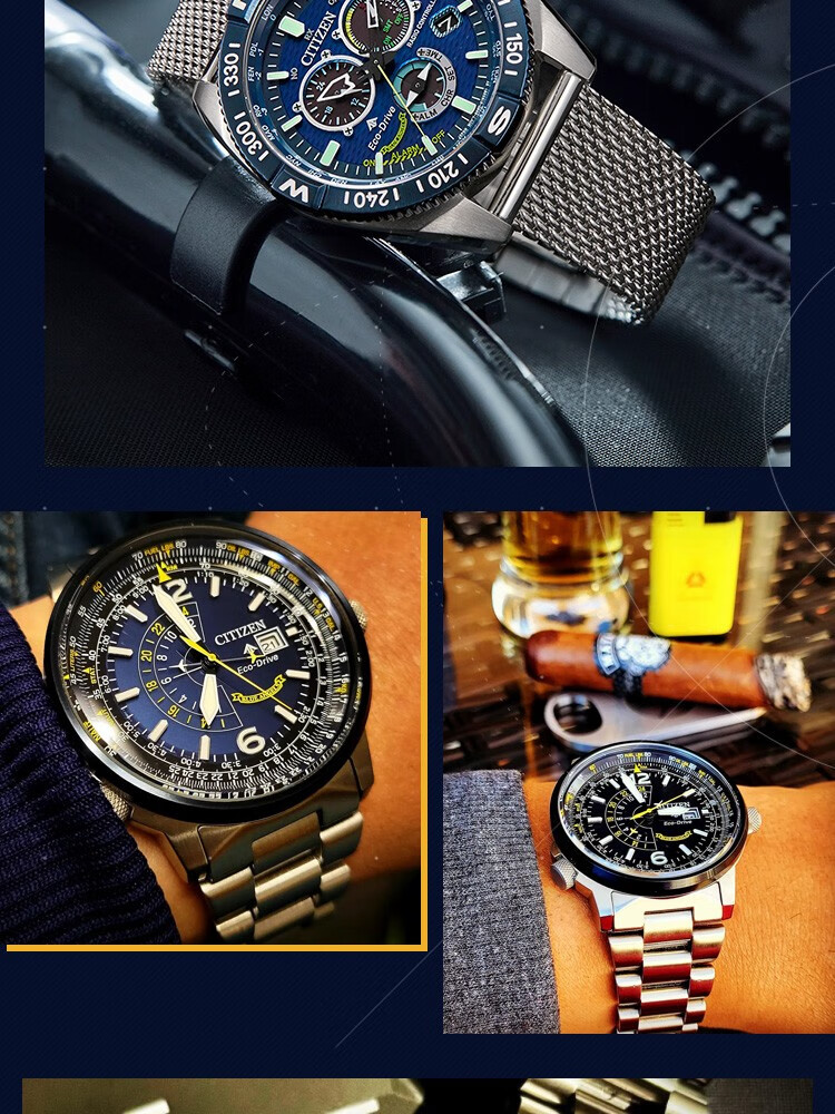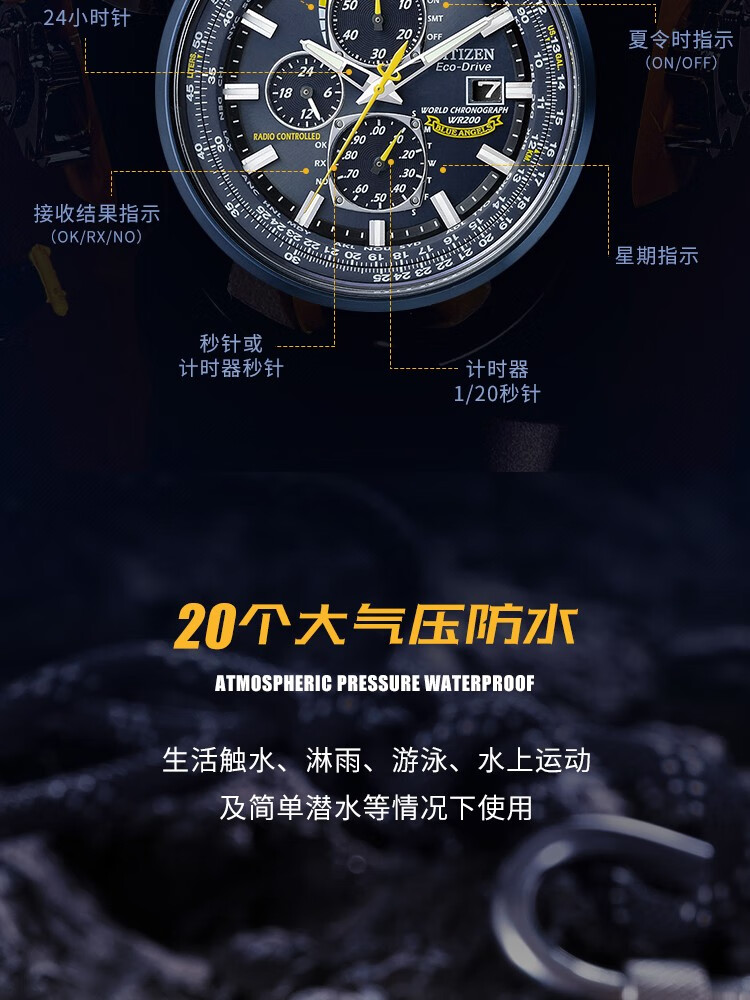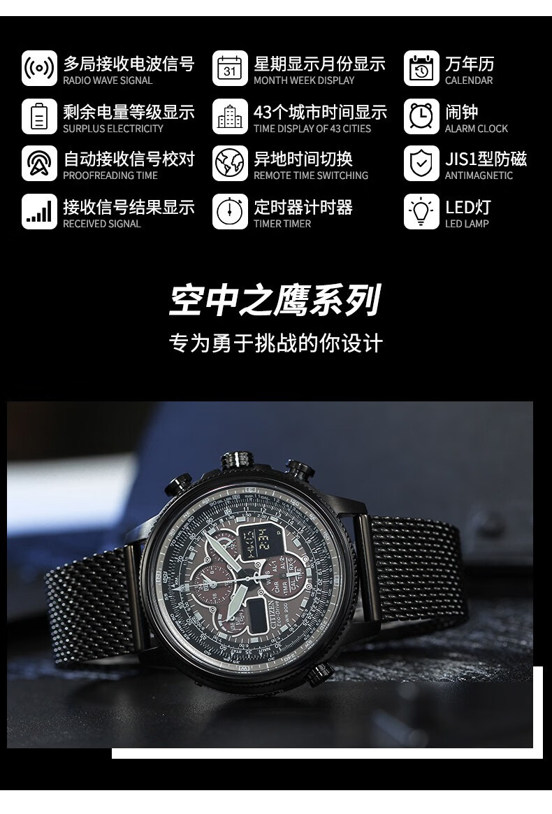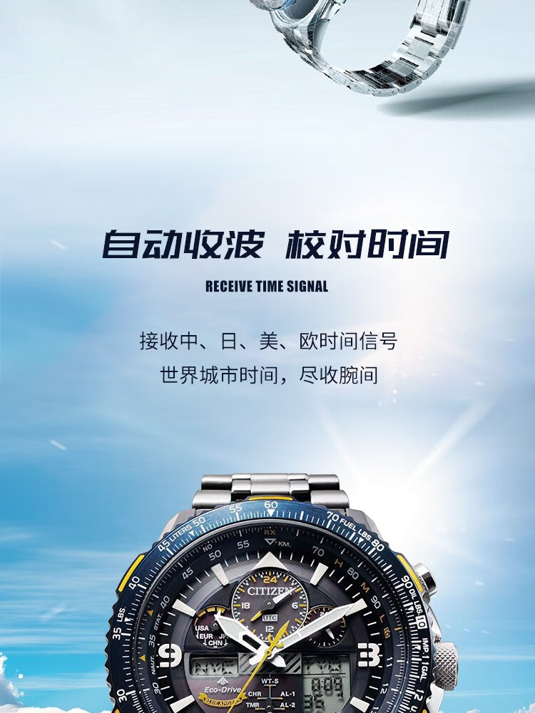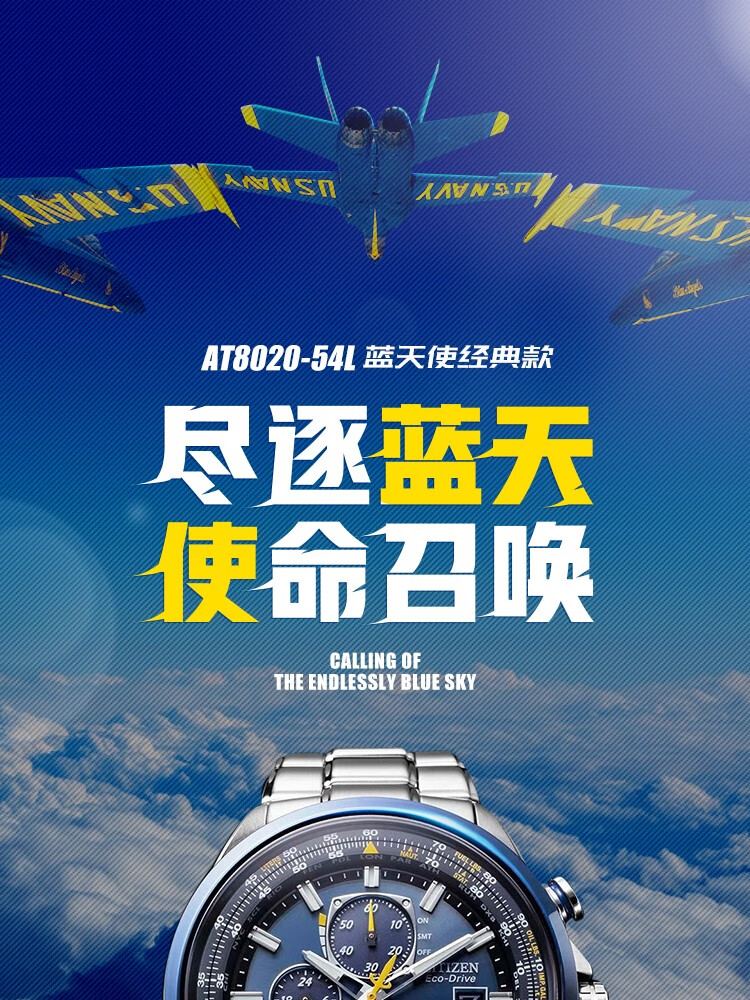 CITIZEN Eco-Drive Blue Angel Air Eagle Multifunctional Fashionable Business Men's Watch as a Gift for Your Boyfriend AT8020-54L