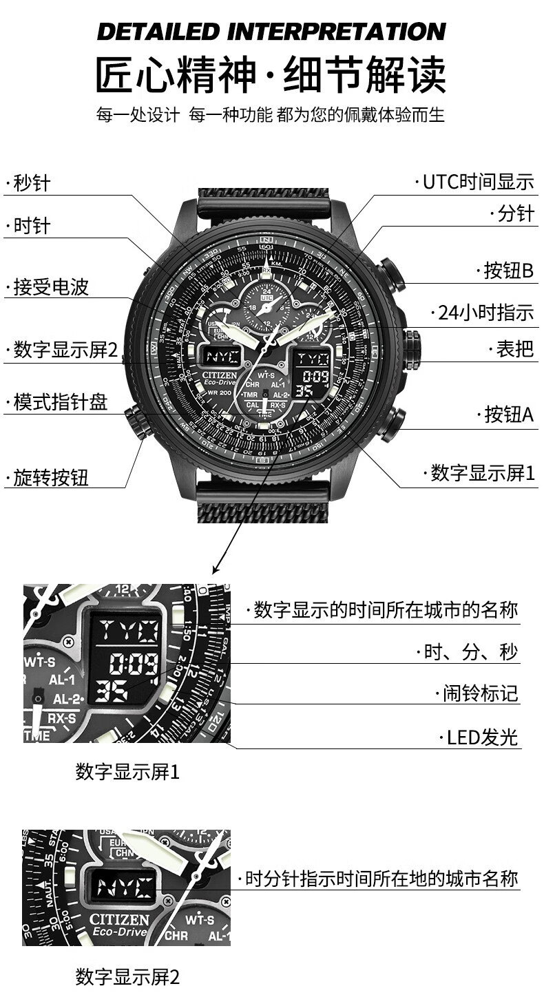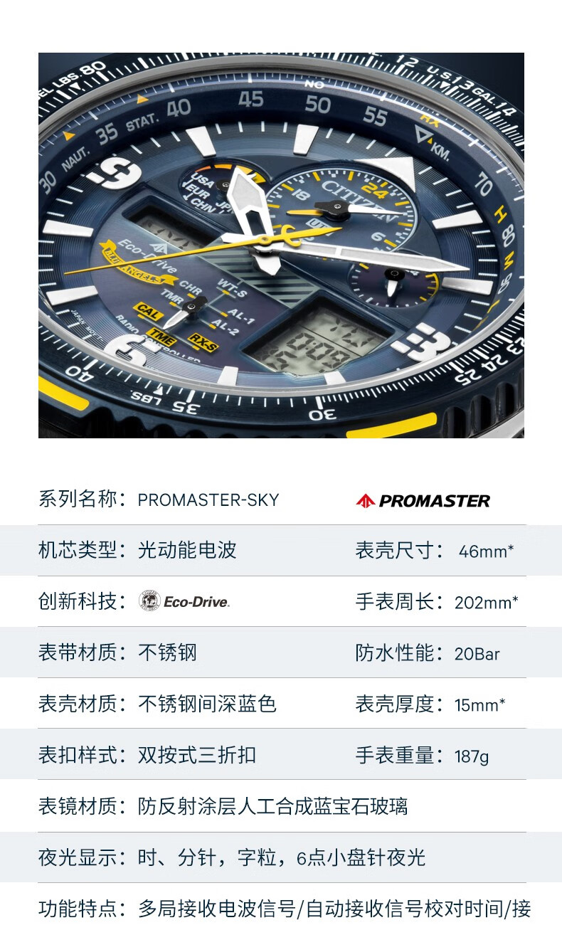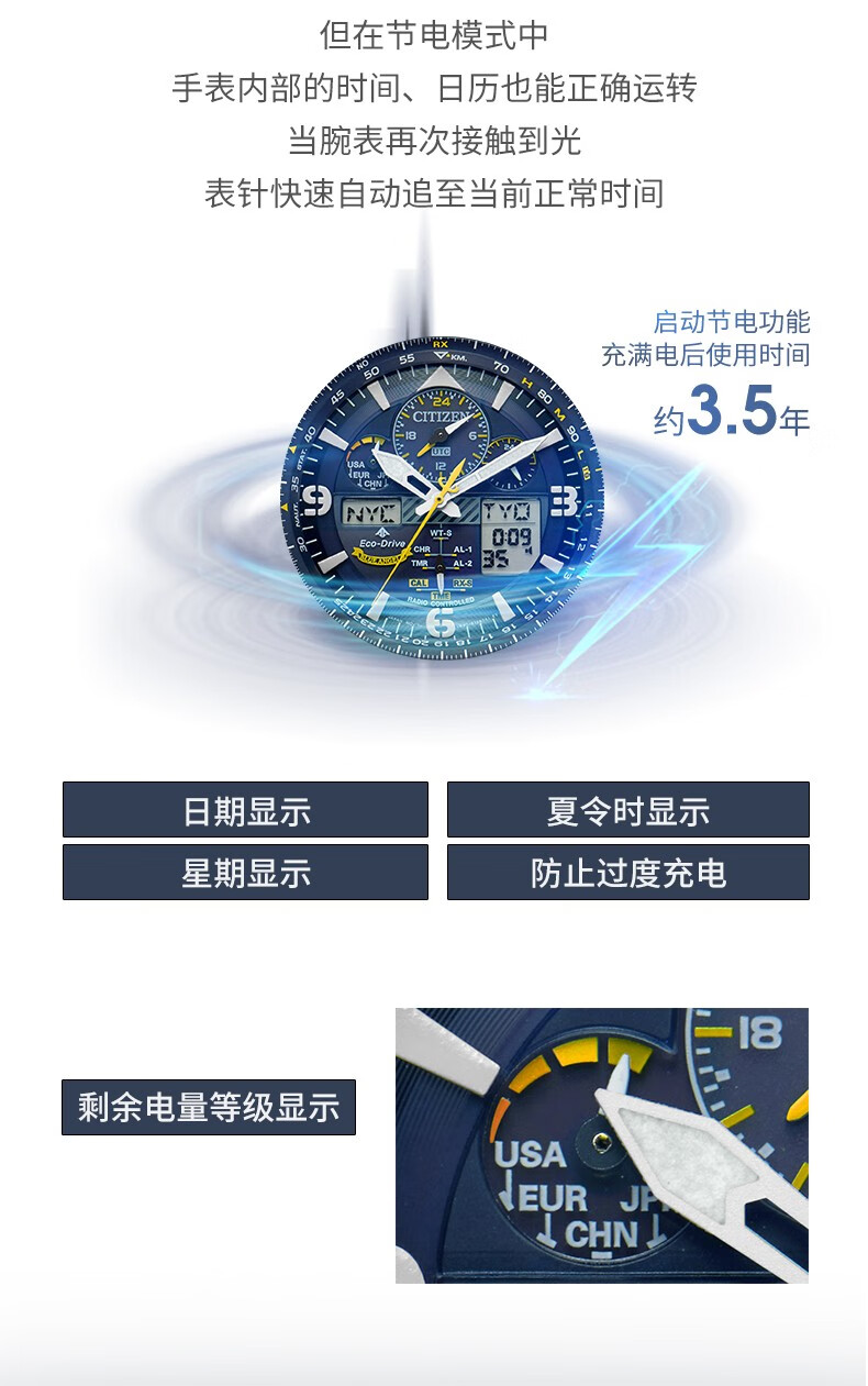 CITIZEN Eco-Drive Blue Angel Air Eagle Multifunctional Fashionable Business Men's Watch as a Gift for Your Boyfriend AT8020-54L