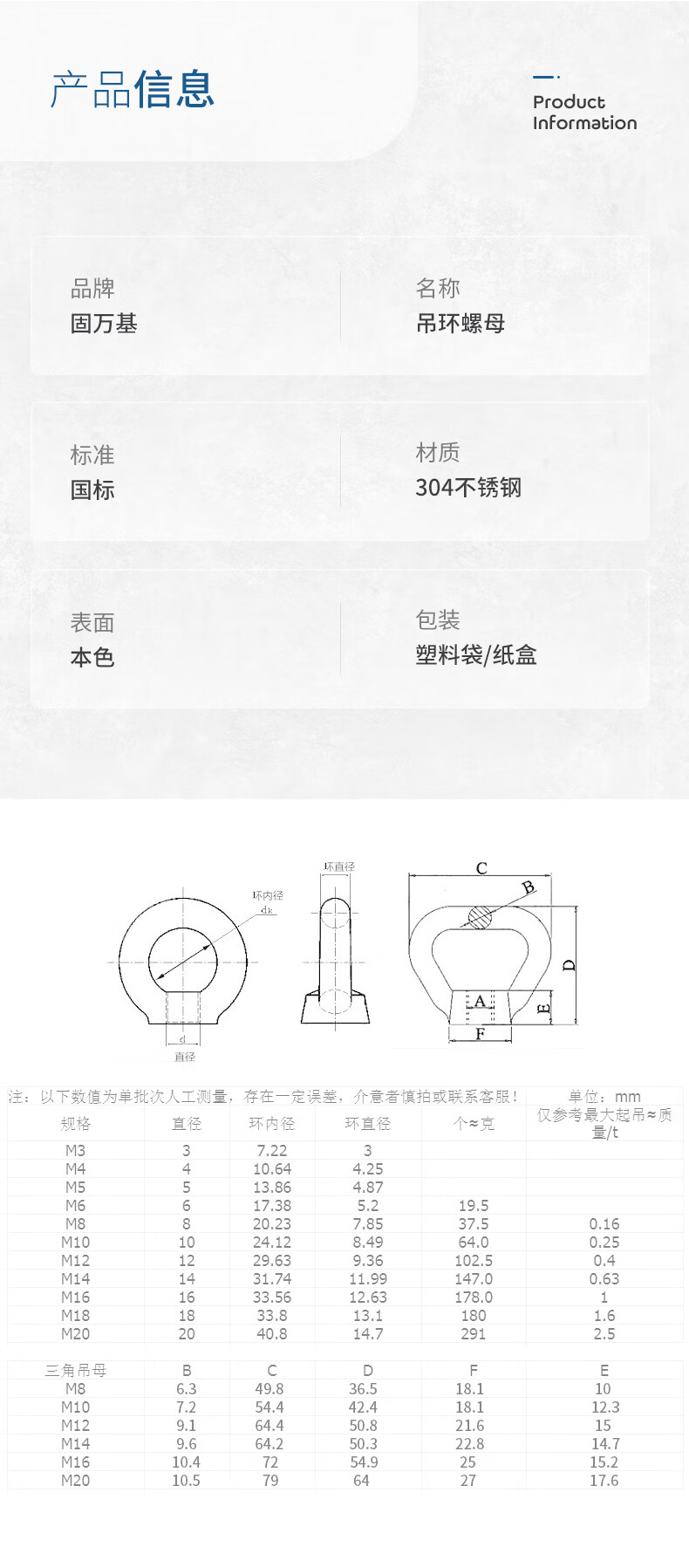 Guwanji 304 stainless steel ring eye nut collection round nut set lifting eye marine screw cap national standard 304 round eye nut M8 (1 piece)
