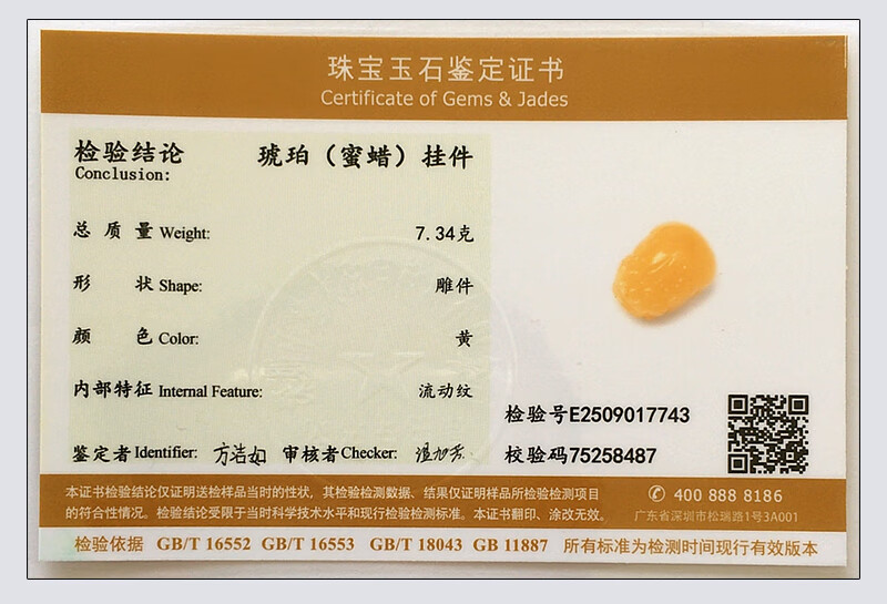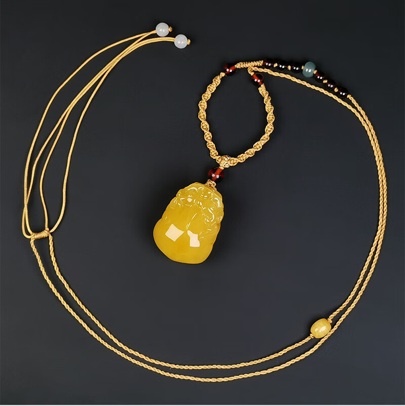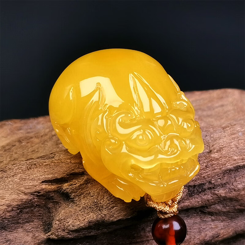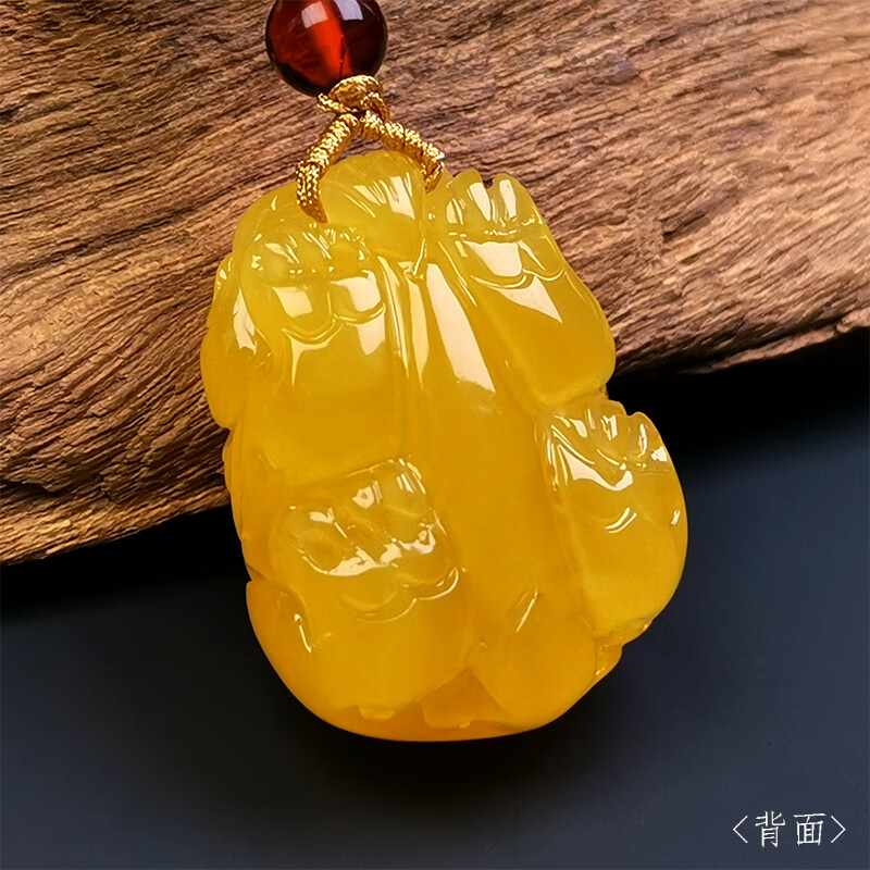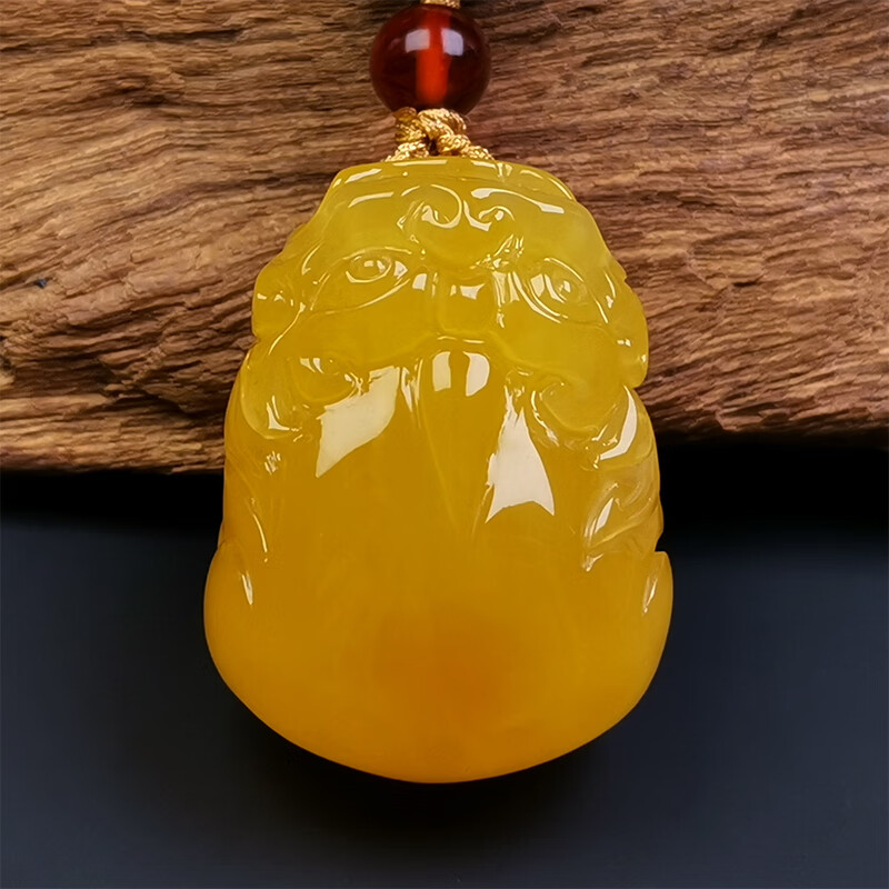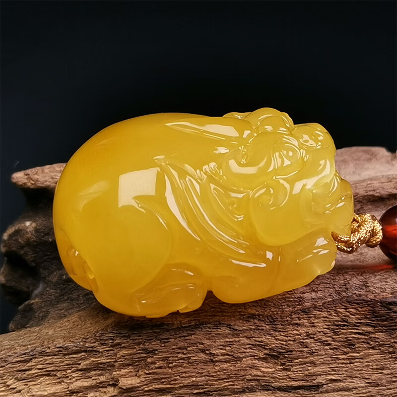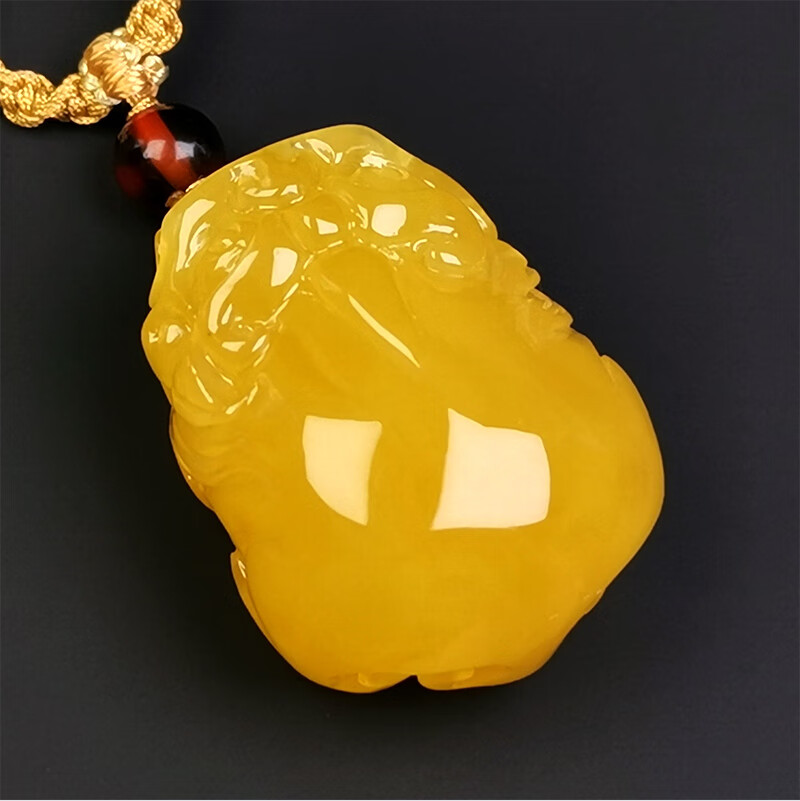 Amber School, one object, one picture, one certificate, beeswax pendant, Pixiu, men's and women's pendant, full honey Russian chicken fat yellow amber pendant, 7.34g, 30*22*17mm