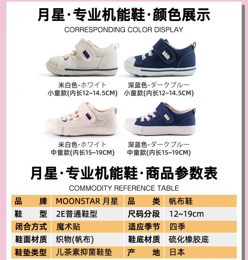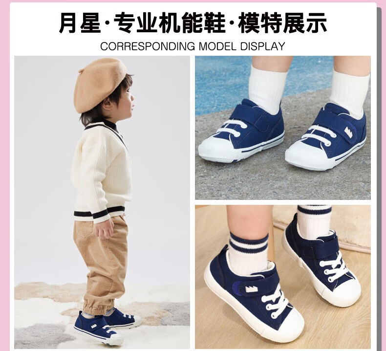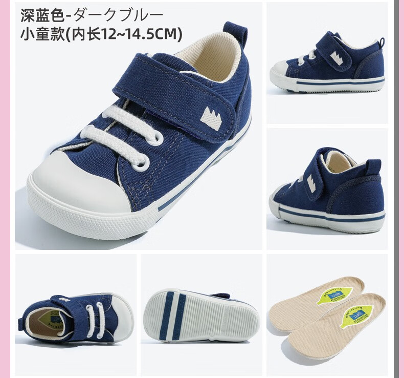 Moon Star Children's Shoes Imported from Japan Children's Canvas Shoes Four Seasons Handmade Toddler Shoes for Girls and Boys Functional Shoes Dark Blue 24 (Inner Length 15cm Suitable for Feet 14.5cm Long)