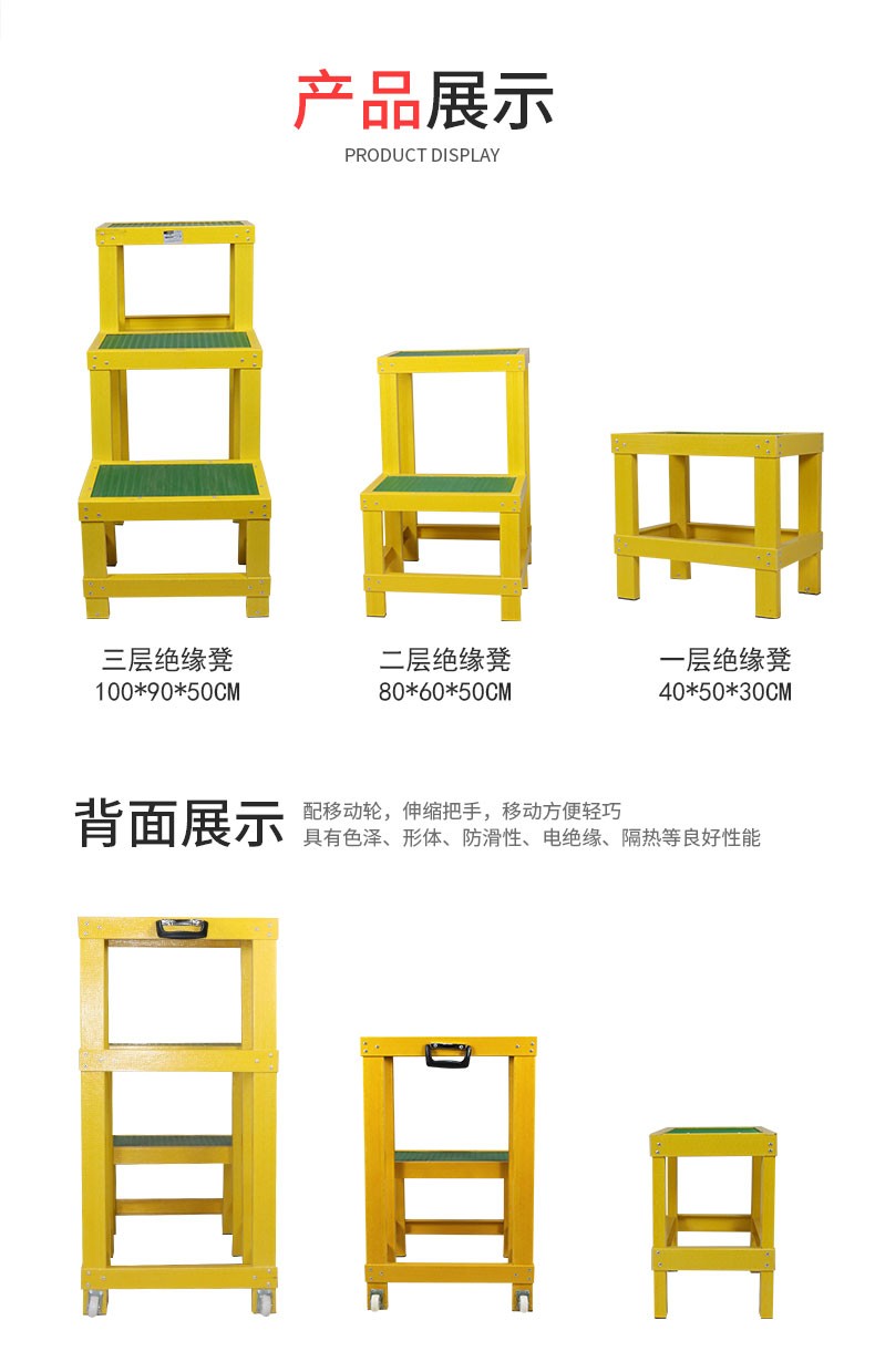 Insulated stool, insulated three-layer stool, fiberglass insulated stool, high-voltage three-step ladder step stool, fiberglass insulated high and low stool, electrician ladder stool, removable double-layer insulated stool, safety platform, insulated stool (30*50*100) three-layered stool