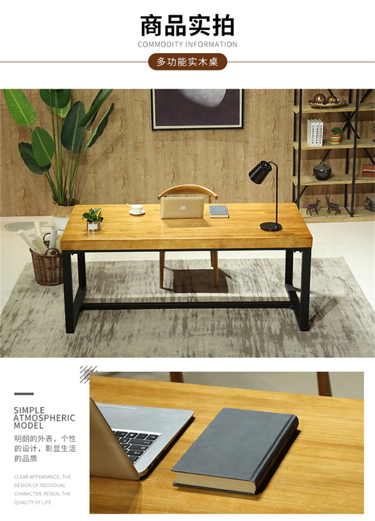 Premium Elements Nordic Solid Wood Computer Desk Desktop Home Desk Bedroom Simple Study Writing Desk Office Long Table Solid Wood Table 120*60*75 Thickness 5cm