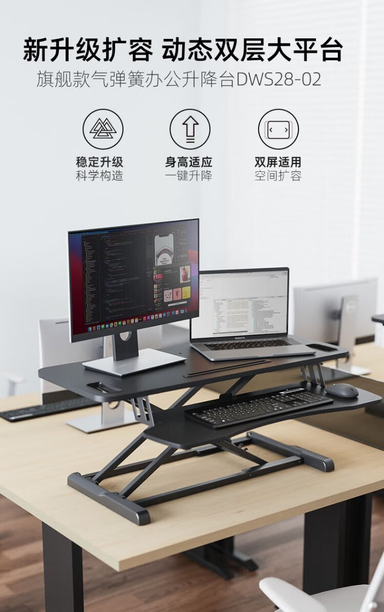Brateck Northern Arc Lift Desk Computer Desk Standing Office Lift Table Standing Computer Lift Bracket Monitor Elevated Office Desk D450L (DWS28-02)
