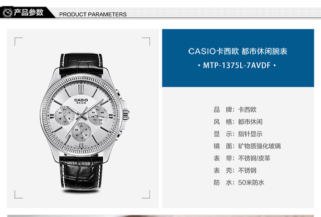 CASIO watch men's sports exam quartz student Japanese and Korean watch as a Christmas gift for boyfriend MTP-1375L-7A