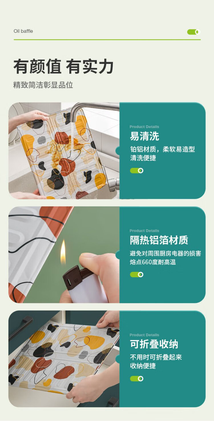 Ogilvy Kitchen Oil-proof Baffle Gas Stove Insulation Oil-Baffle Aluminum Foil Oil Baffle Cooking Oil Splash-proof