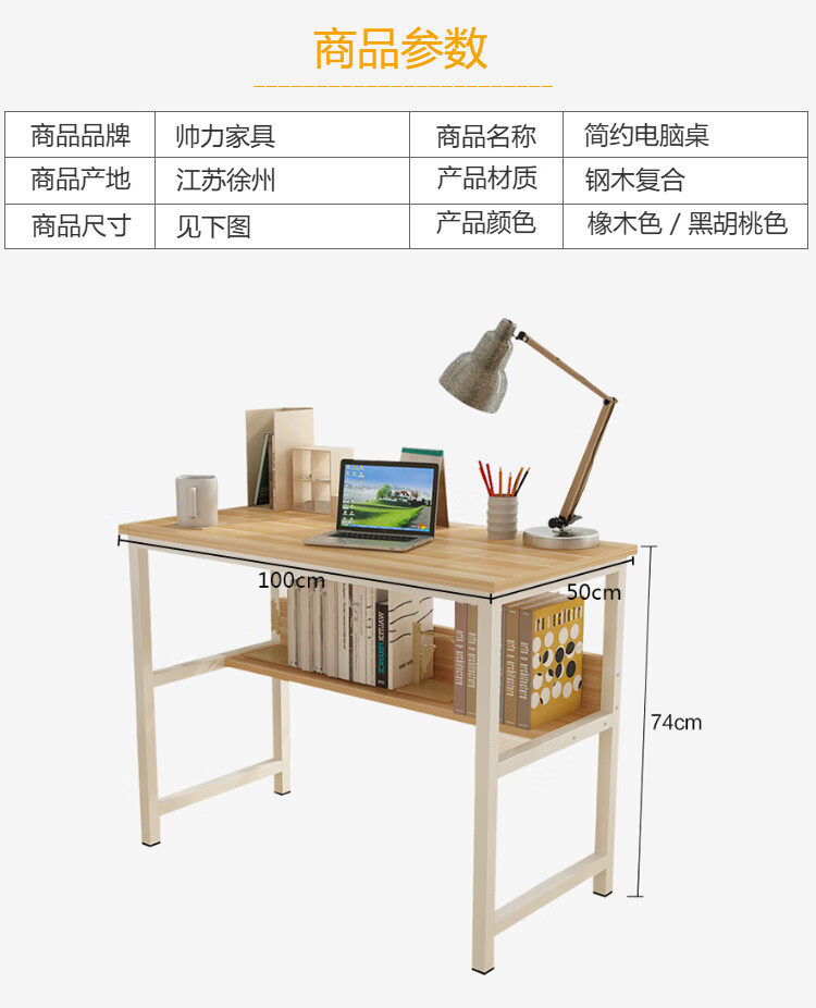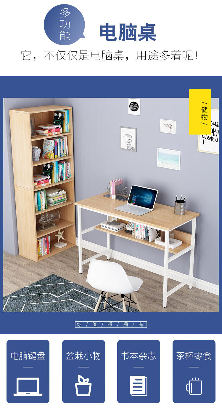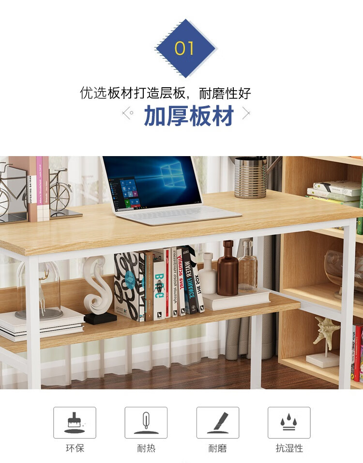 Shuaili computer desk study board type simple home notebook desk with bookshelf 100*50 primary color SL17041D