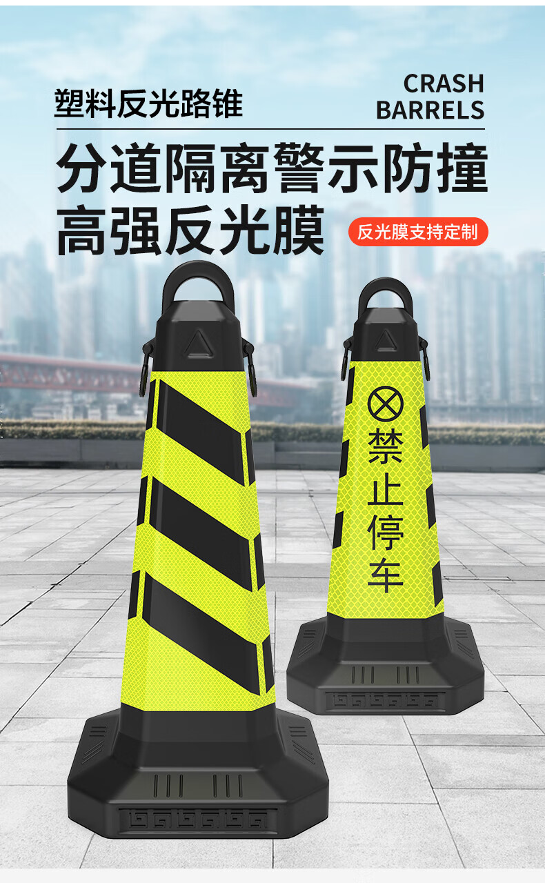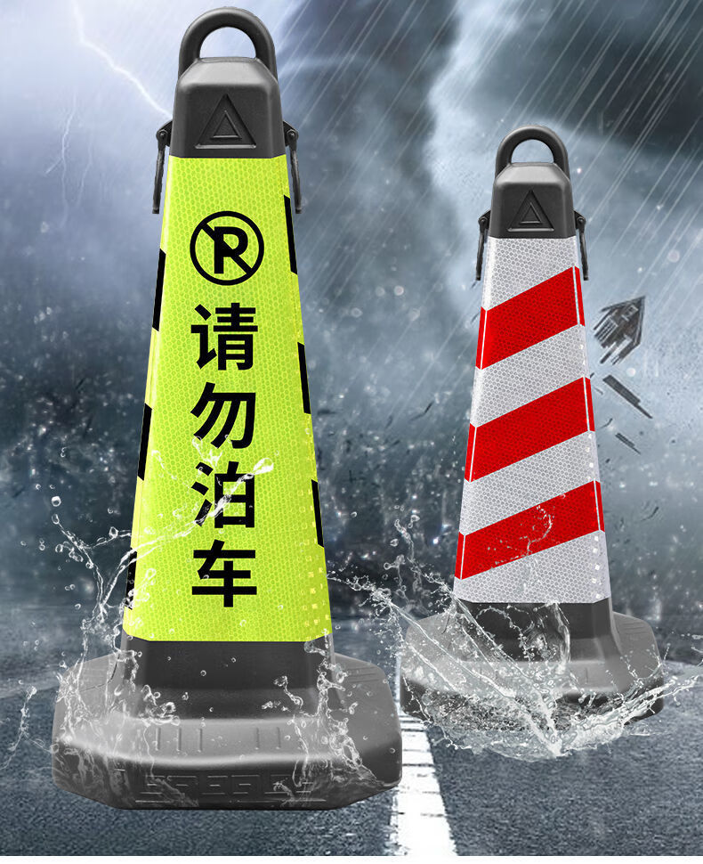 Tengchi ice cream bucket no parking pile warning sign plastic reflective roadblock cone isolation pier ice cream cone yellow and black style