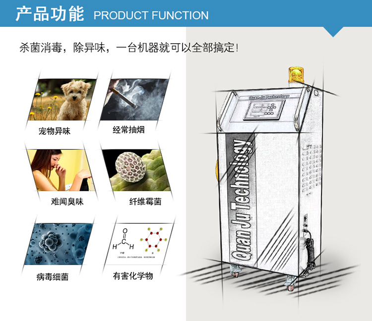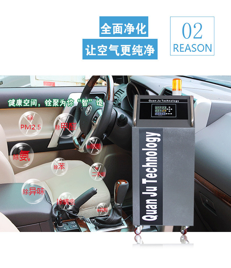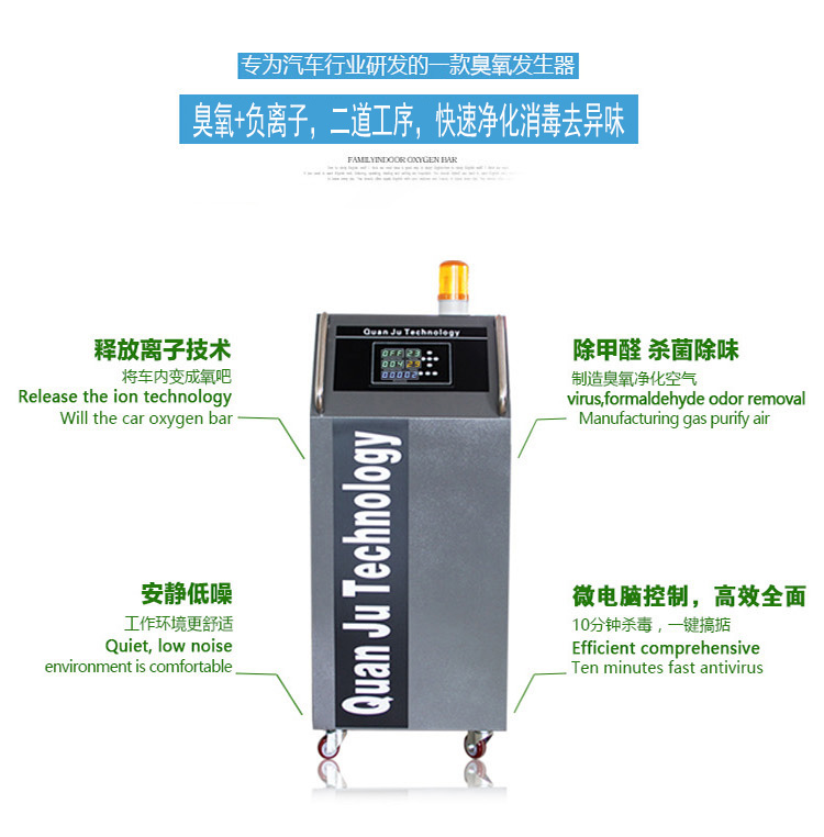 Quanju QJ car ozone sterilizer, sterilization and disinfection, odor removal, deodorization, formaldehyde removal, negative oxygen ion purification, beauty shop 4S shop deodorizer, car ozone generator
