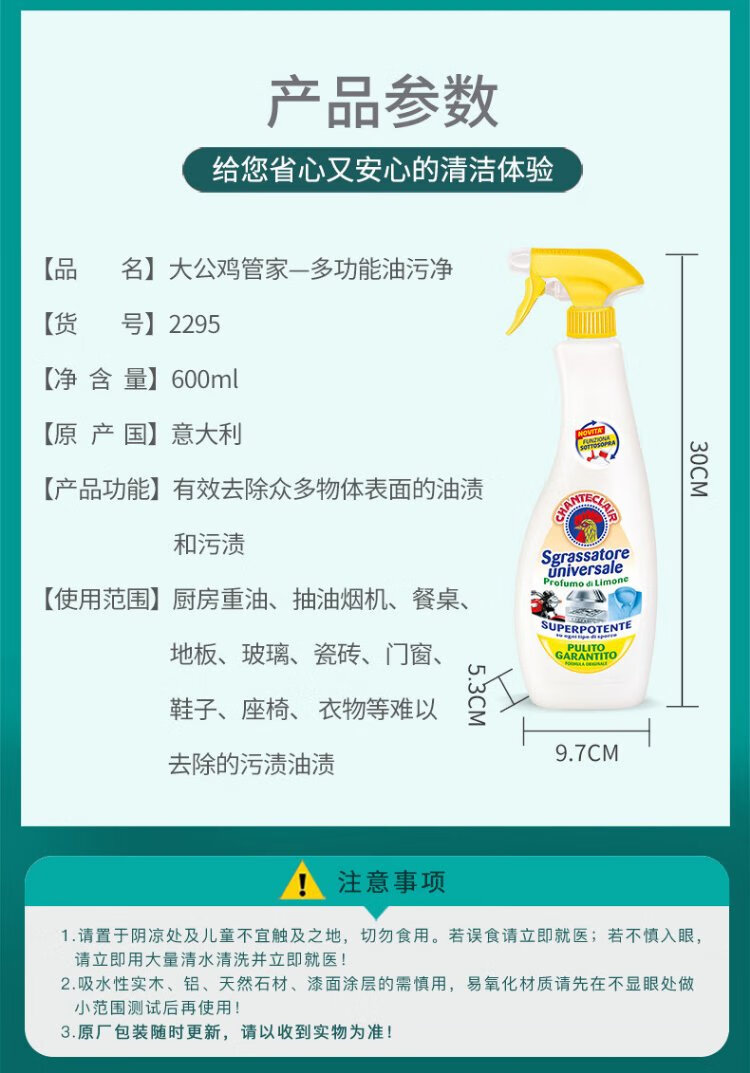 CHANTECLAIR Big Cock Butler Multi-Function Oil Cleaner (Lemon Scent) Kitchen Heavy Oil Cleaner 600ml