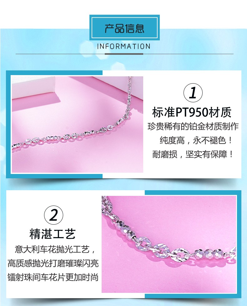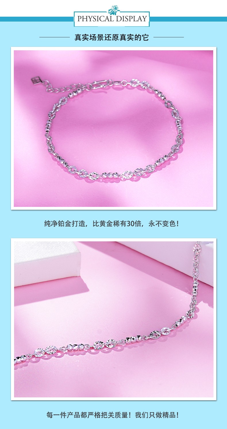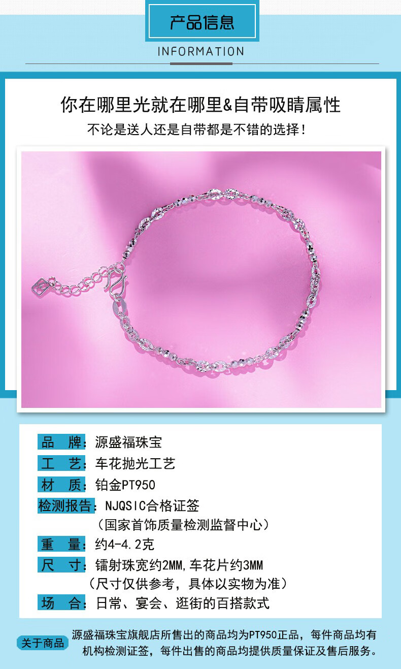 Yuan Shengfu's new PT950 fashionable fancy transfer bead platinum bracelet, women's simple platinum bracelet, 4.36 grams, length 15.5-17.5 cm