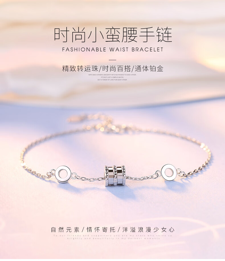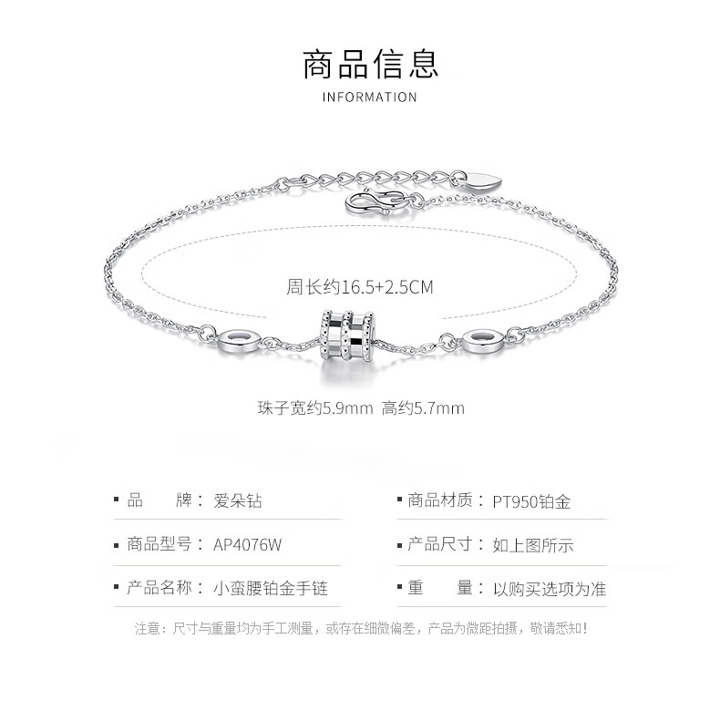 Aido diamond pt950 platinum small waist bracelet women's fashionable platinum bracelet for girlfriend, weight 3.6-3.8 grams + delivery certificate