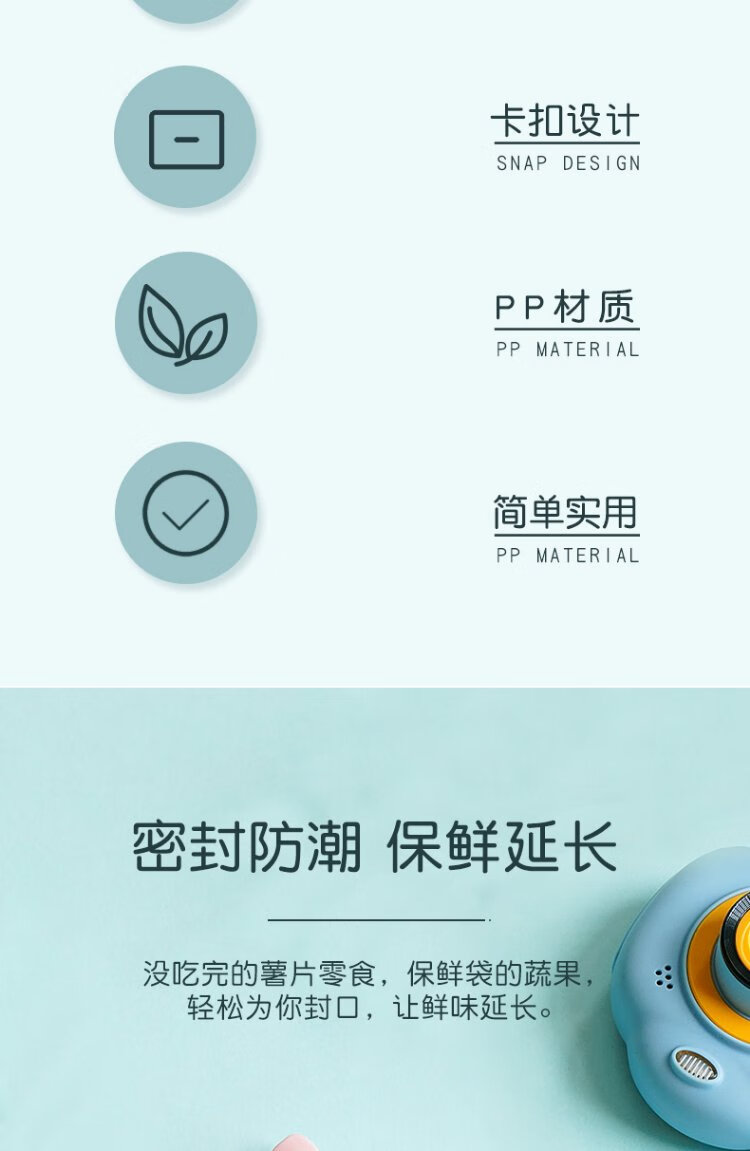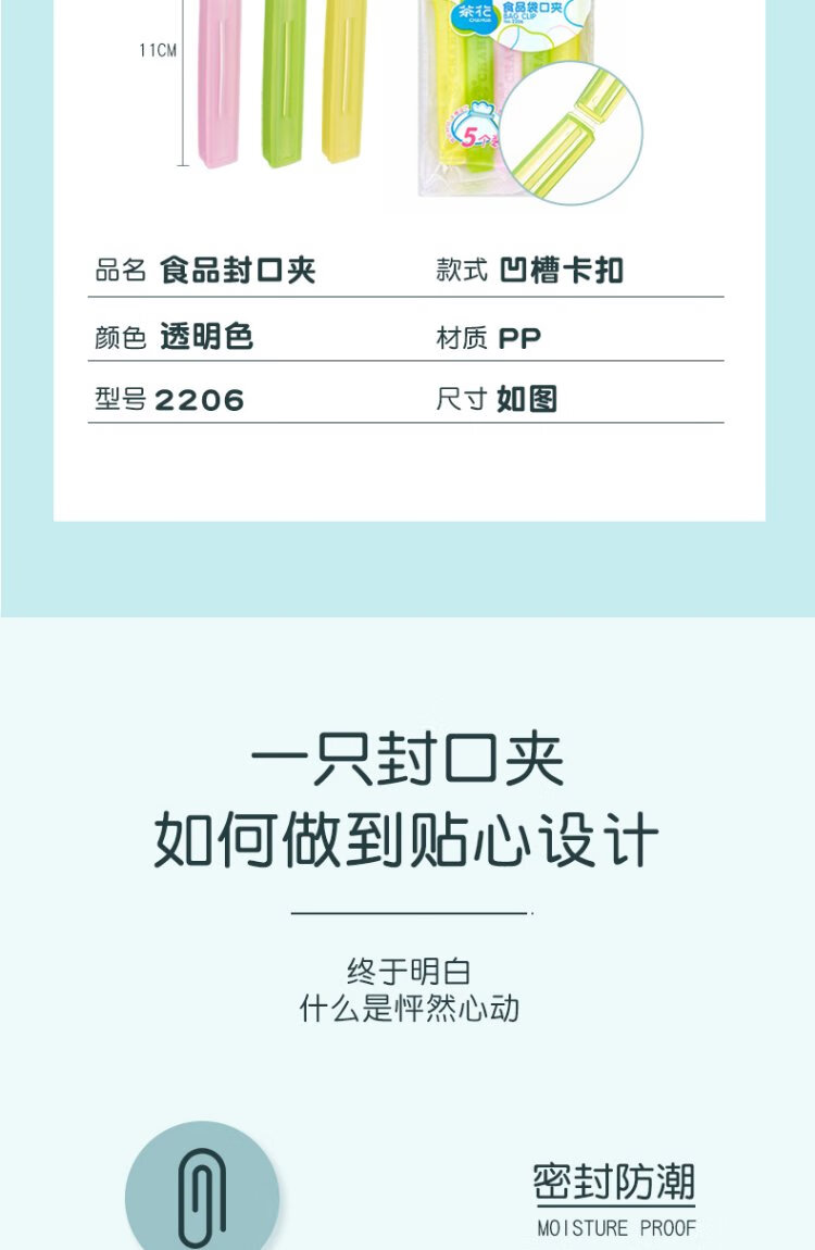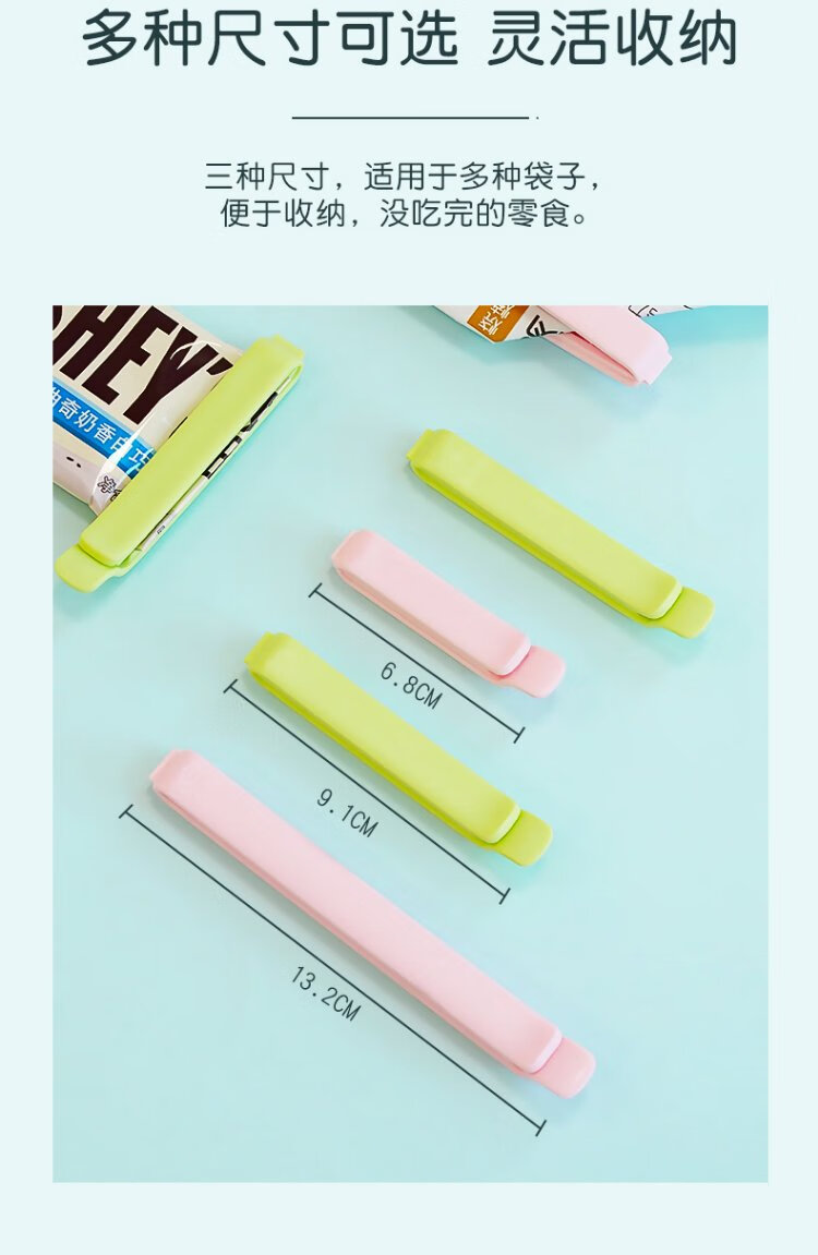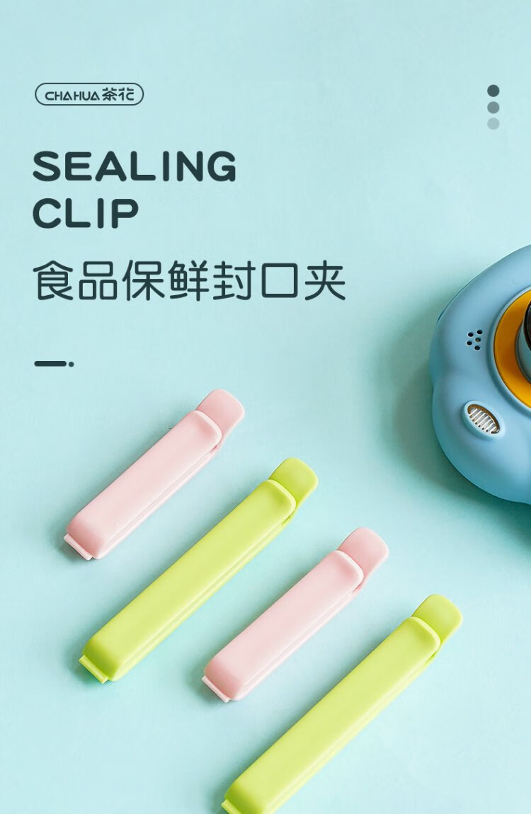 Camellia sealing clip snack food clip sealing stick household sealing strip clip plastic bag clip sealing clip large size 1 pack of 3 pieces Maca color