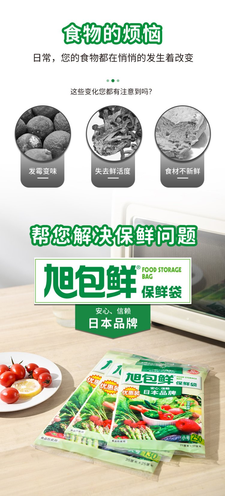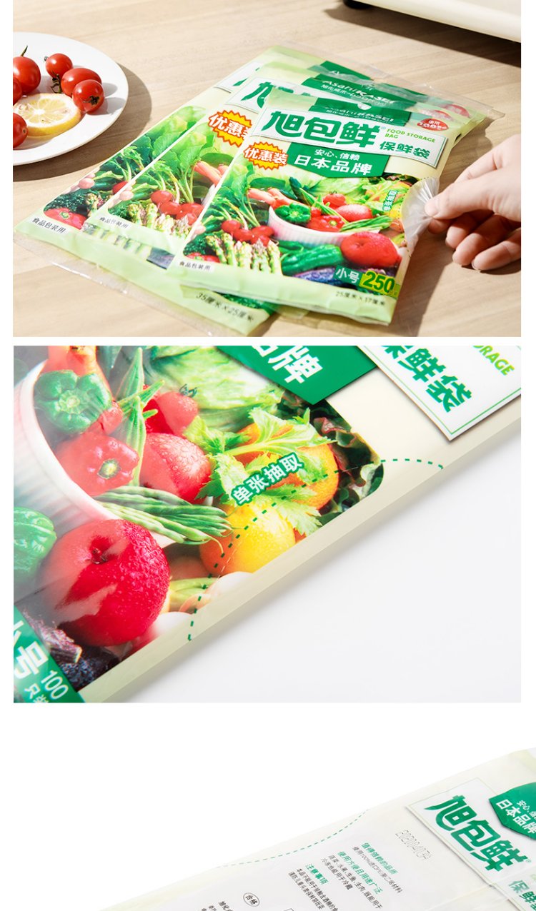 Asahi Baoxian Japanese brand PE removable fresh-keeping bag with extra volume, small size 25cm*17cm*250 pieces*3 plastic bags