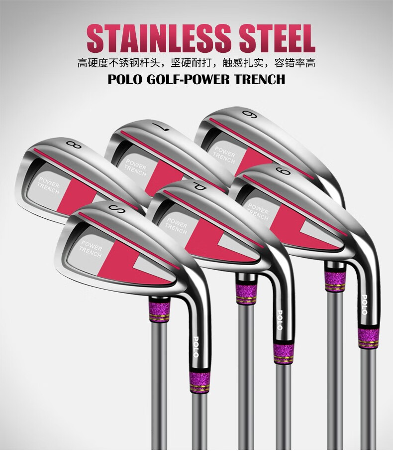 POLO GOLF golf club set for women, complete set of golf professional competition clubs, beginner practice carbon clubs recommended by instructors, complete set of 11 steel shafts + golf bag 2