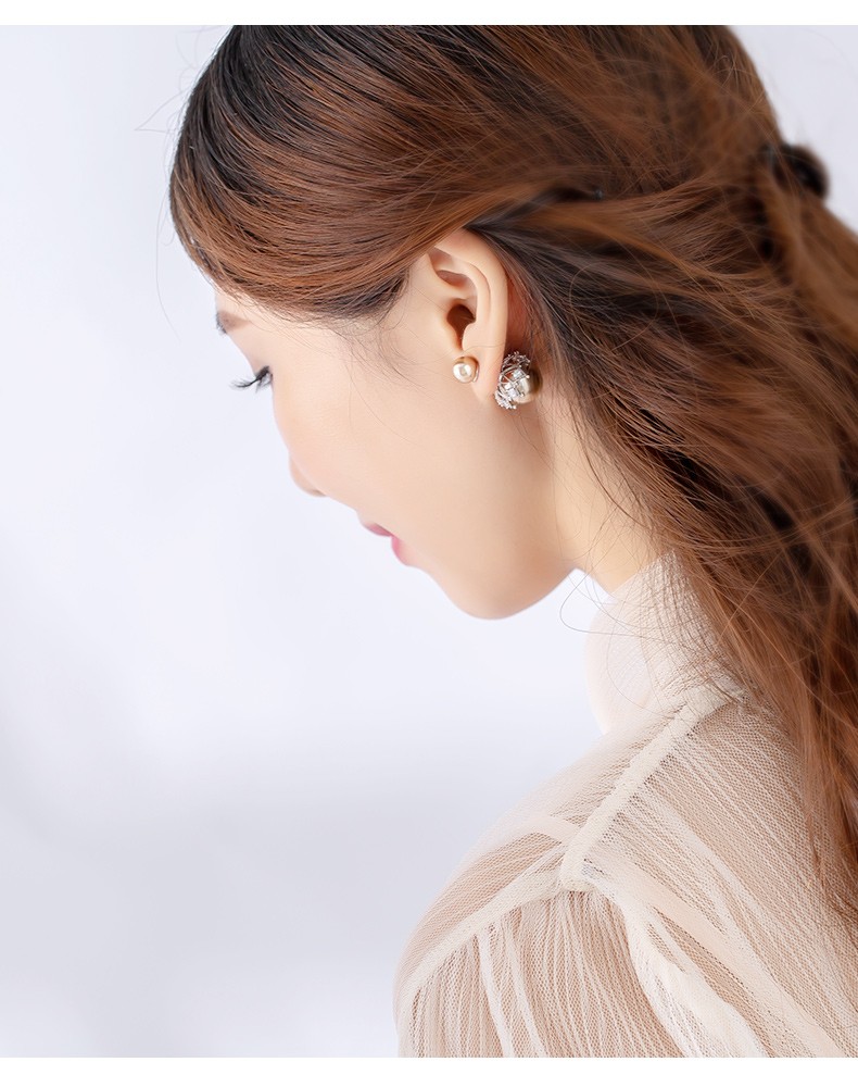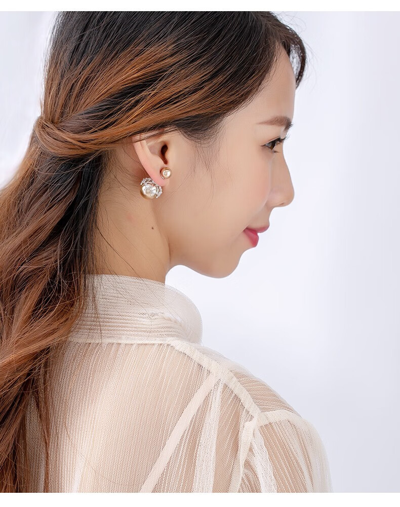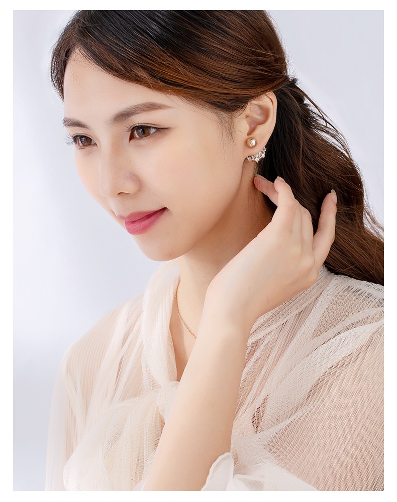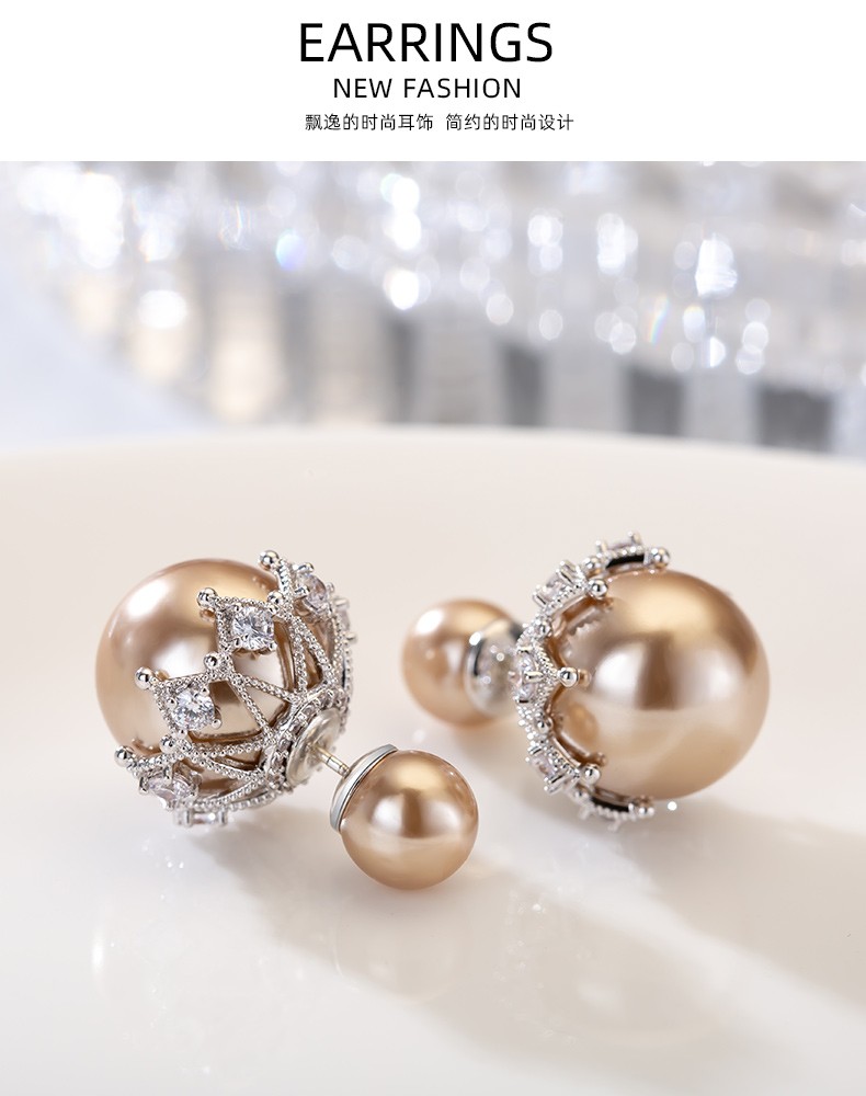 Qlady women's double-sided earrings 925 silver pearl earrings for female students, Korean style temperament, Korean personality, simple and sweet earrings, female fashion internet celebrities, the same decorative earrings, crown style - champagne gold