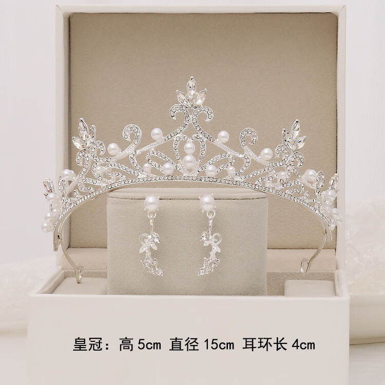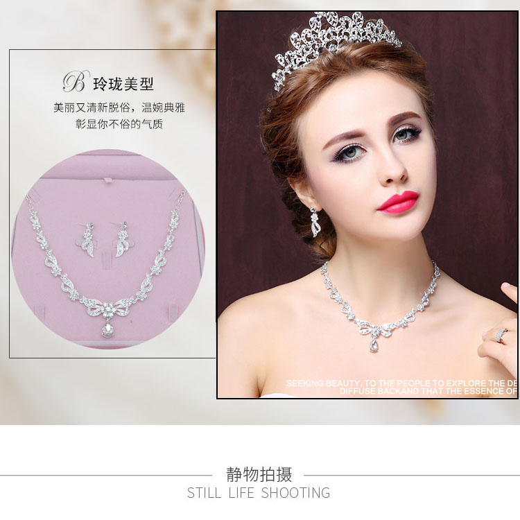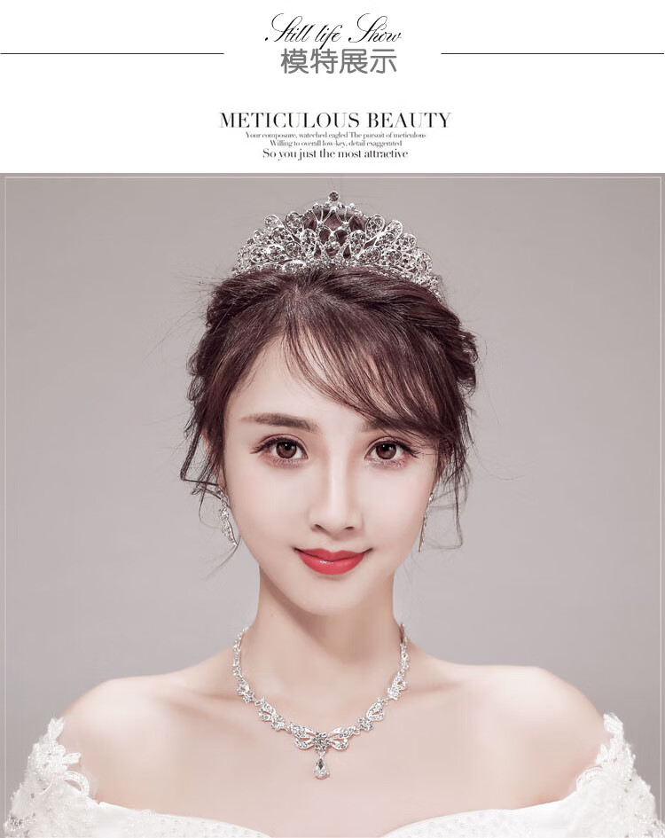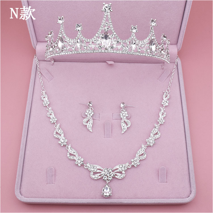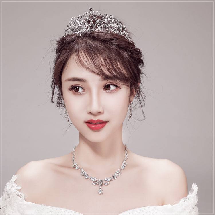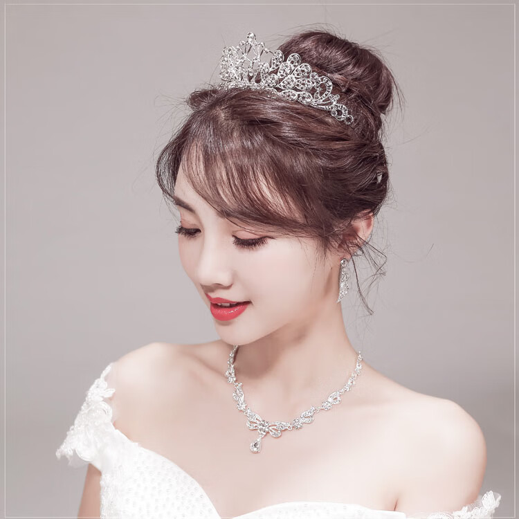 Baoxiayue 2025 Bridal Crown Tiara Three-piece Set Accessories Wedding Fairy Rhinestone Tiara Necklace Wedding Fairy Hair Accessories F Style Three-piece Set Earrings Gift Box