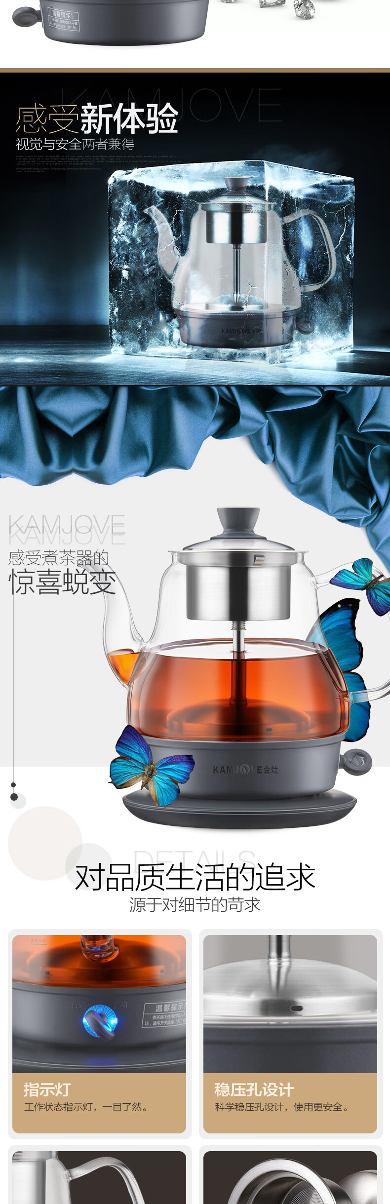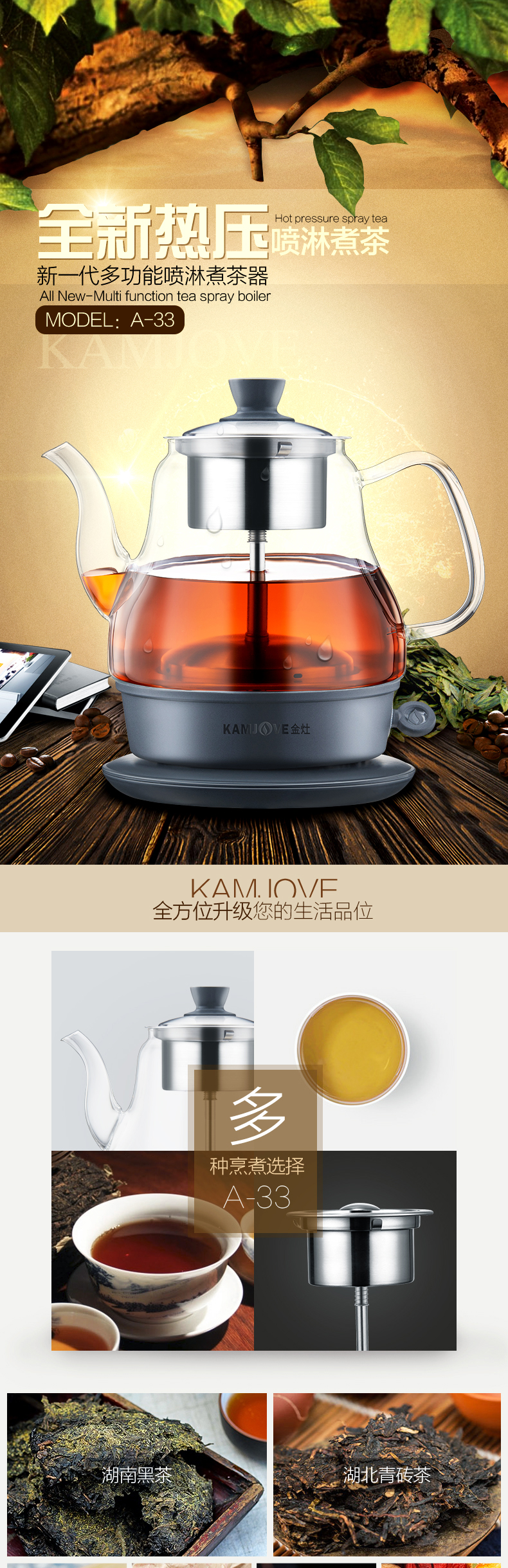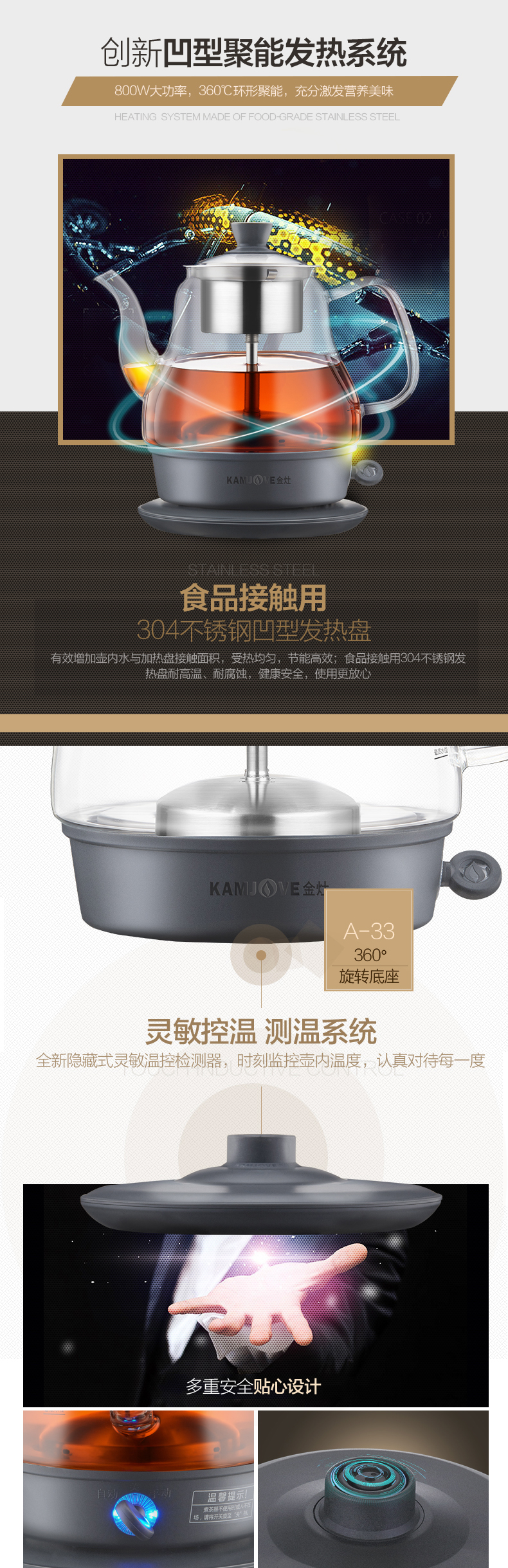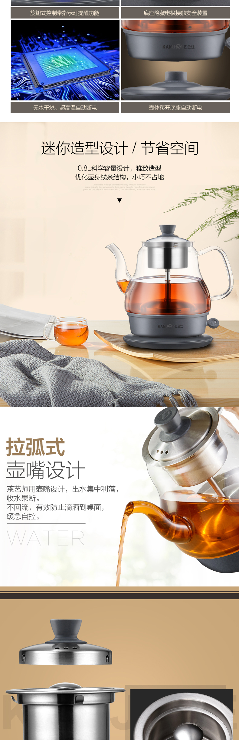KAMJOVE black tea teapot, spray glass teapot, household small mini water boiling tea set, electric teapot A-33 0.8L