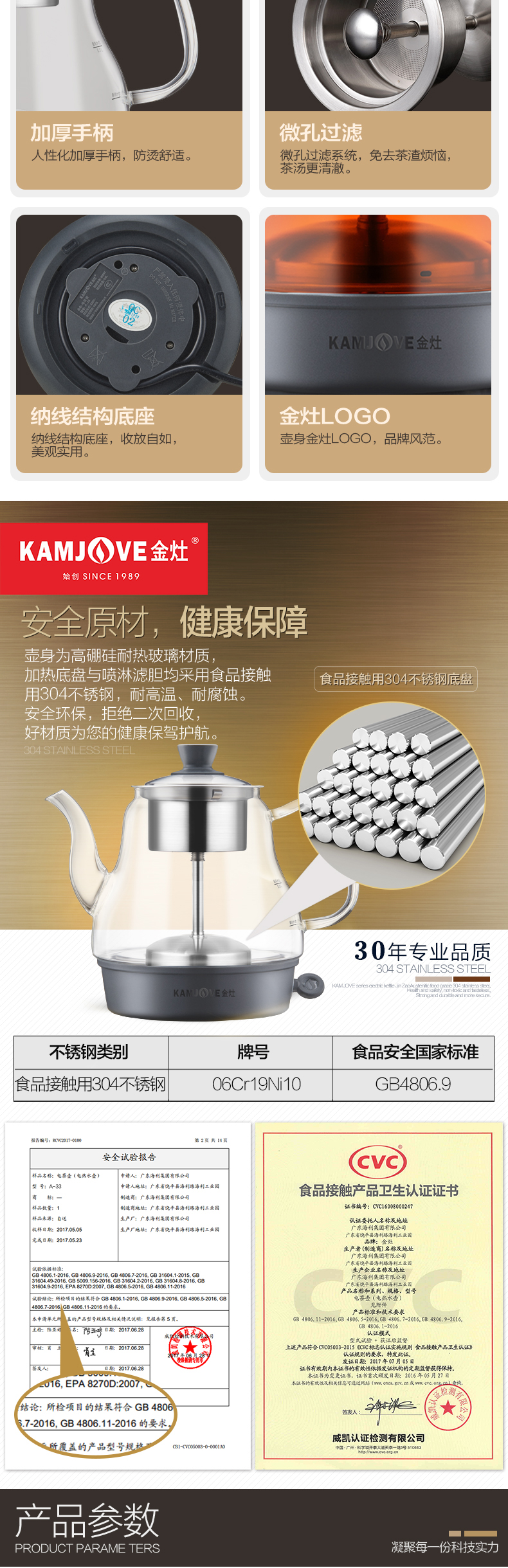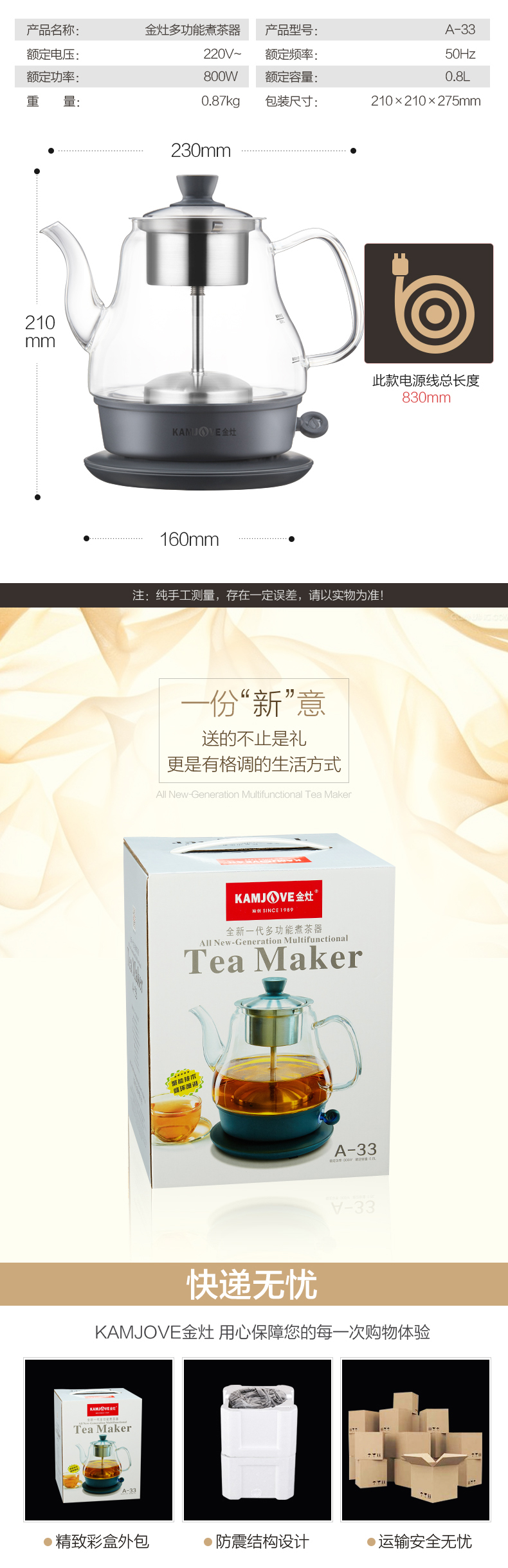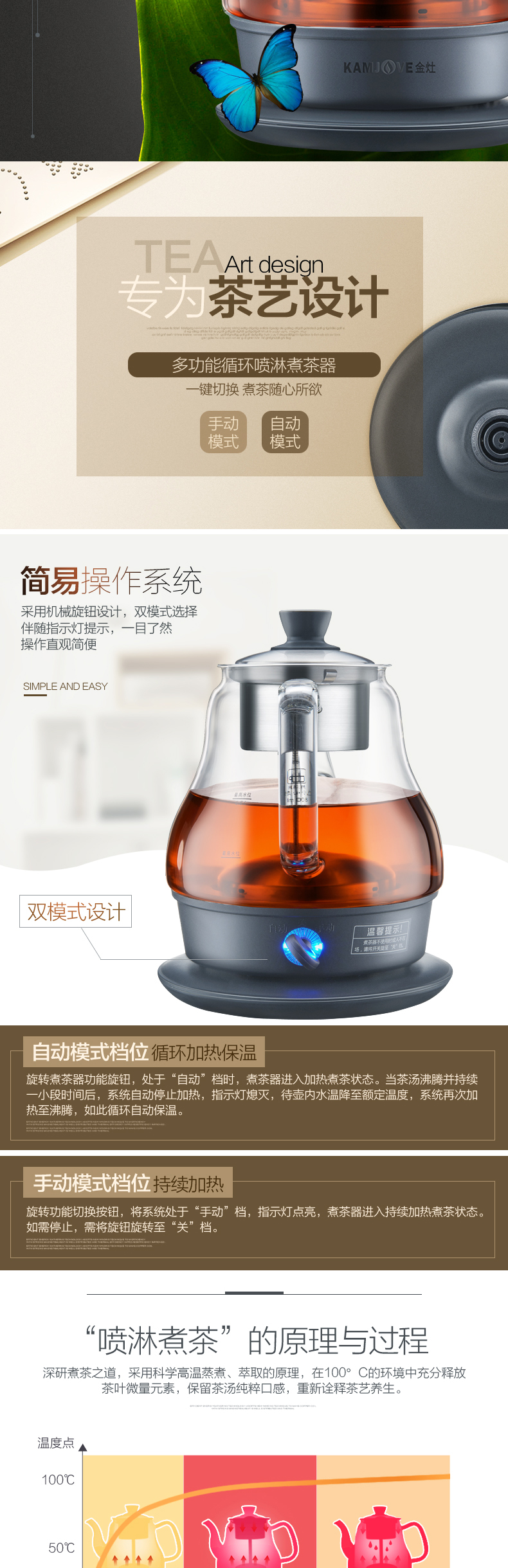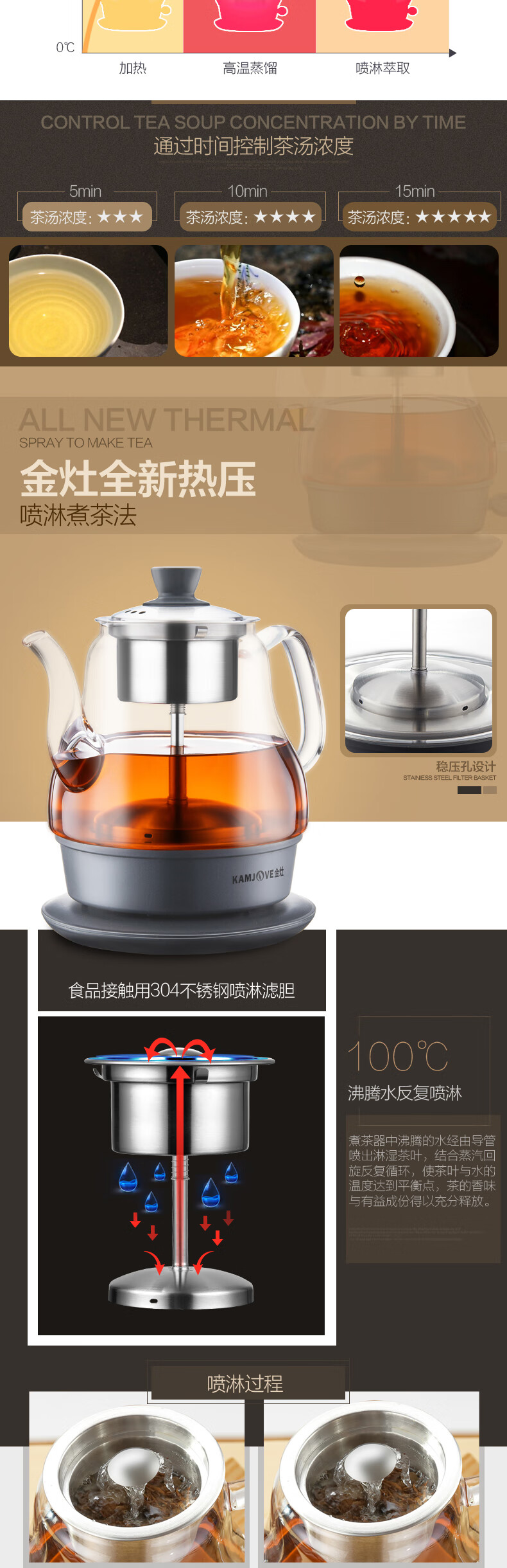 KAMJOVE black tea teapot, spray glass teapot, household small mini water boiling tea set, electric teapot A-33 0.8L