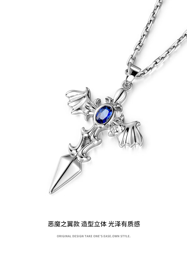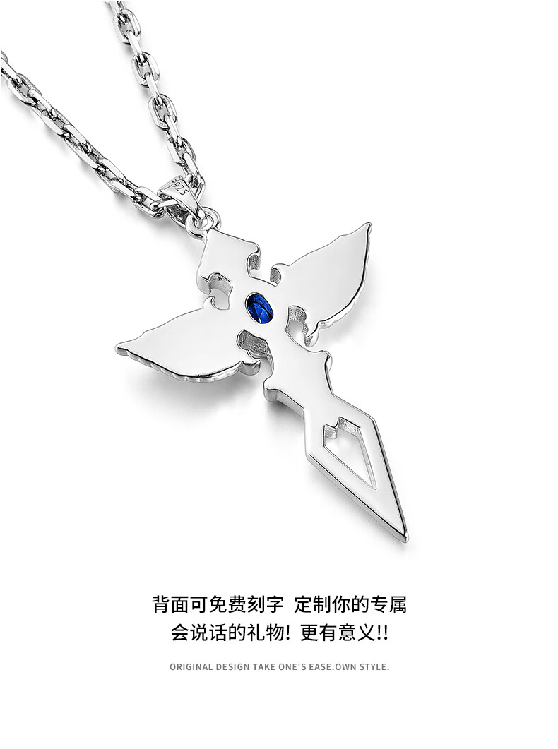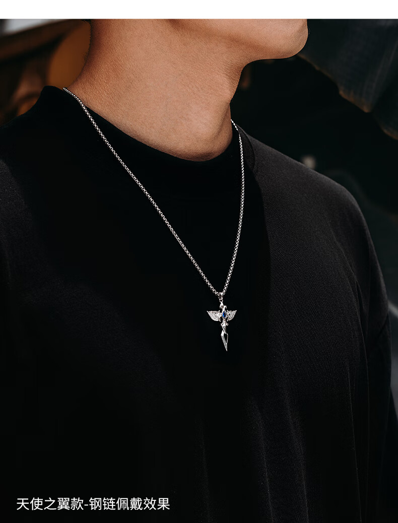 Mingyang Decorative Sea can be engraved 925 sterling silver angel wings necklace men's trendy cross pendant birthday gift for boyfriend angel wings sterling silver pendant + steel chain-60cm