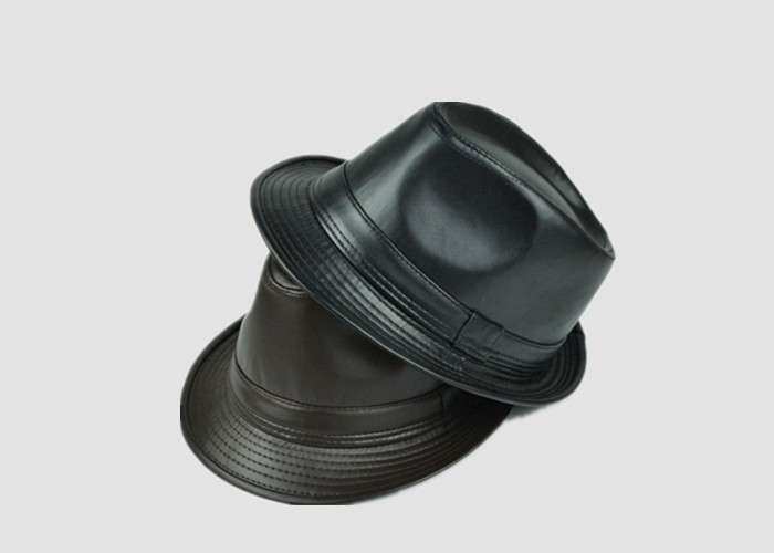 Nozhi Meng Autumn and Winter Artificial PU Leather Hat Men's British Style Jazz Hat Middle-aged and Elderly Leather Hat Basin Hat NE522 Black Average Pier Circumference 58cm