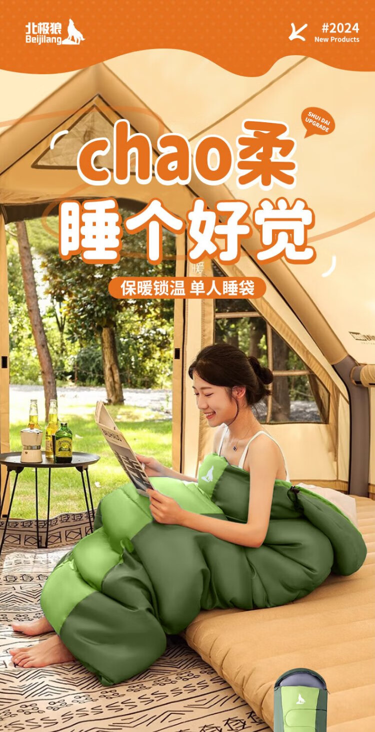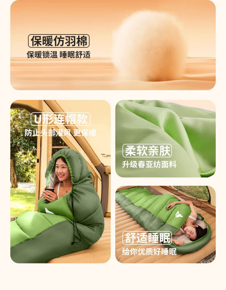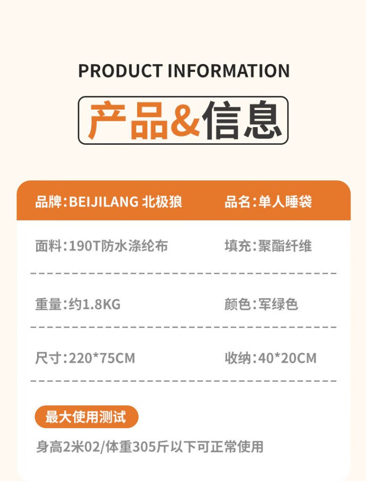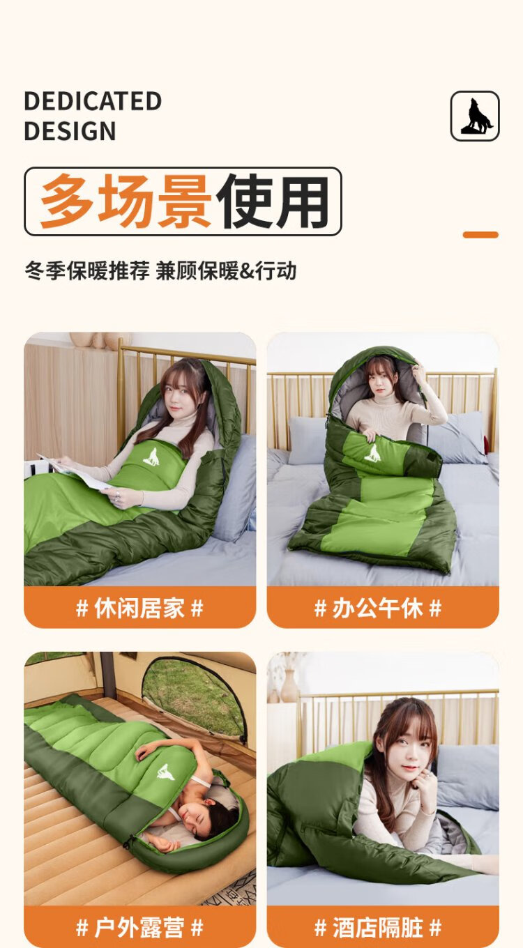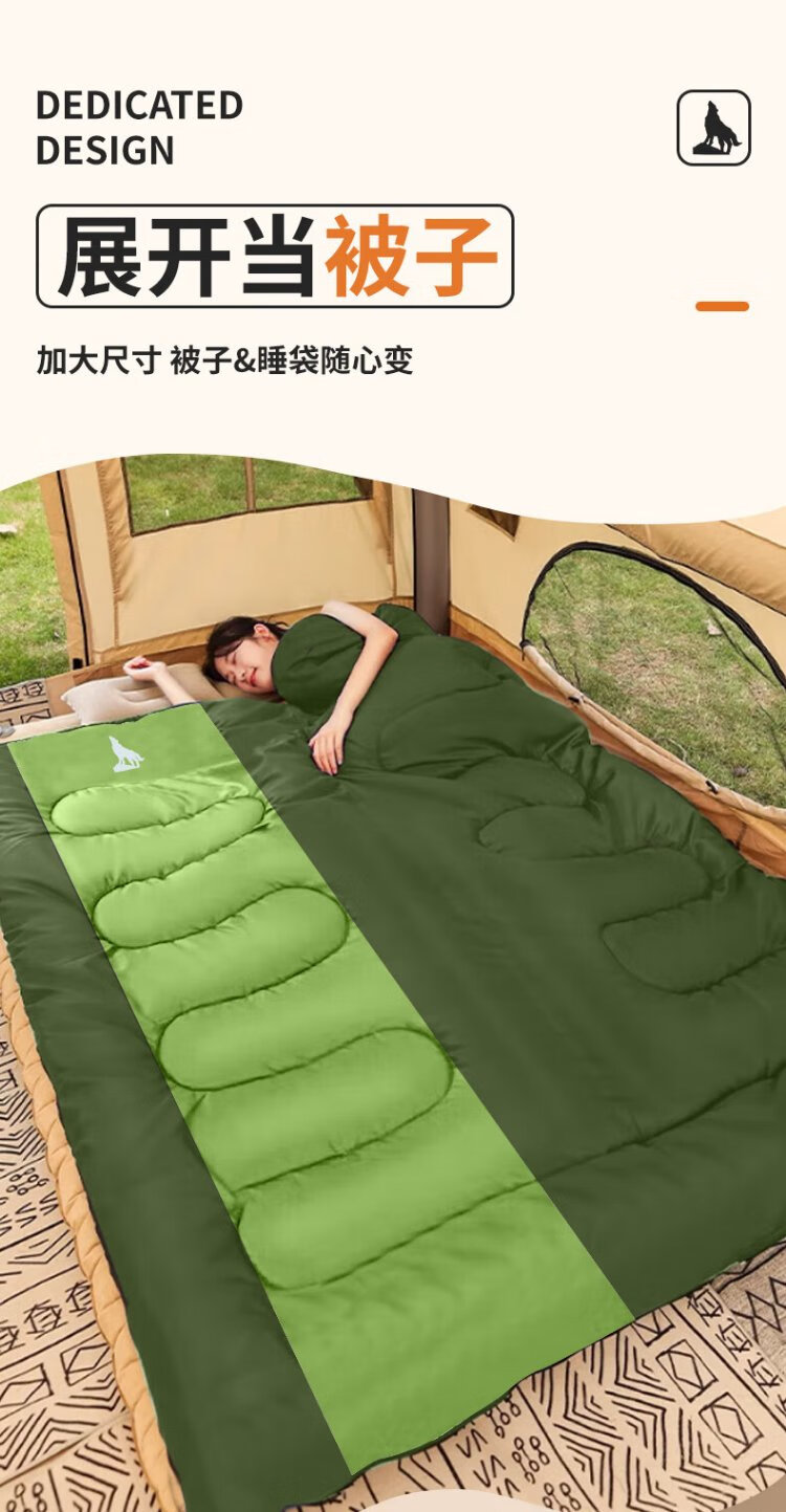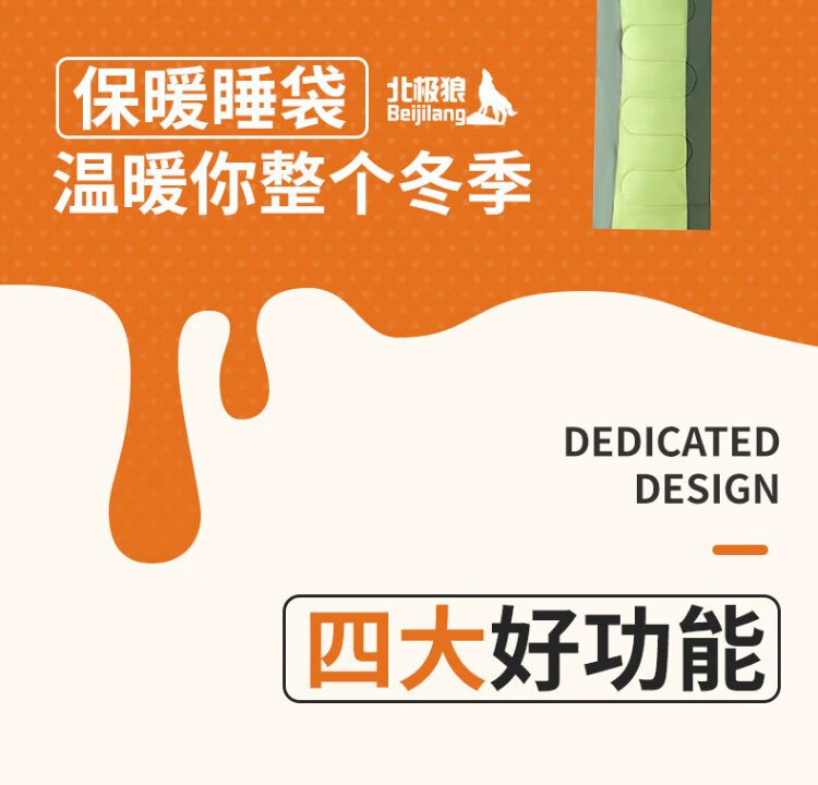 Arctic Wolf (BeiJiLang) sleeping bag adult outdoor travel winter four-season warm camping single dirt-proof cotton sleeping bag 1.8KG military green